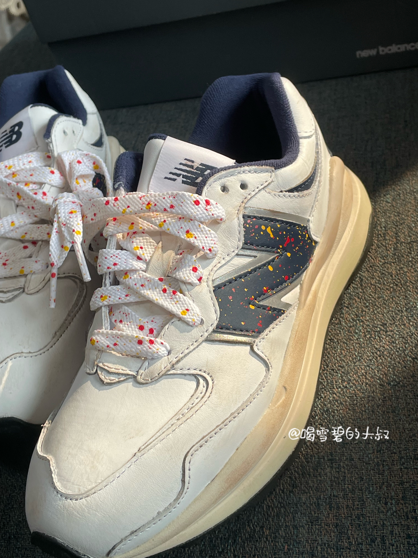 👟:NewBalance5740系列泼墨做旧轻便透气舒适低帮跑步鞋黑白 这鞋子我第一眼看到,我还以为是一双旧鞋,真的太逼真了,完完全全不像新鞋,真的一整个爱住了,太个性了! 鞋子外观配色以白色为主调,侧身“N”字样采用泼墨色彩打造,鞋带也是采用了非常个性的彩色鞋带,鞋子鞋面以柔软的皮革打造,简约但不简单! 鞋子各大网红博主频繁上脚,因为实在太好看百搭了,绝对的年度神鞋,最主要的是,鞋子性价比...