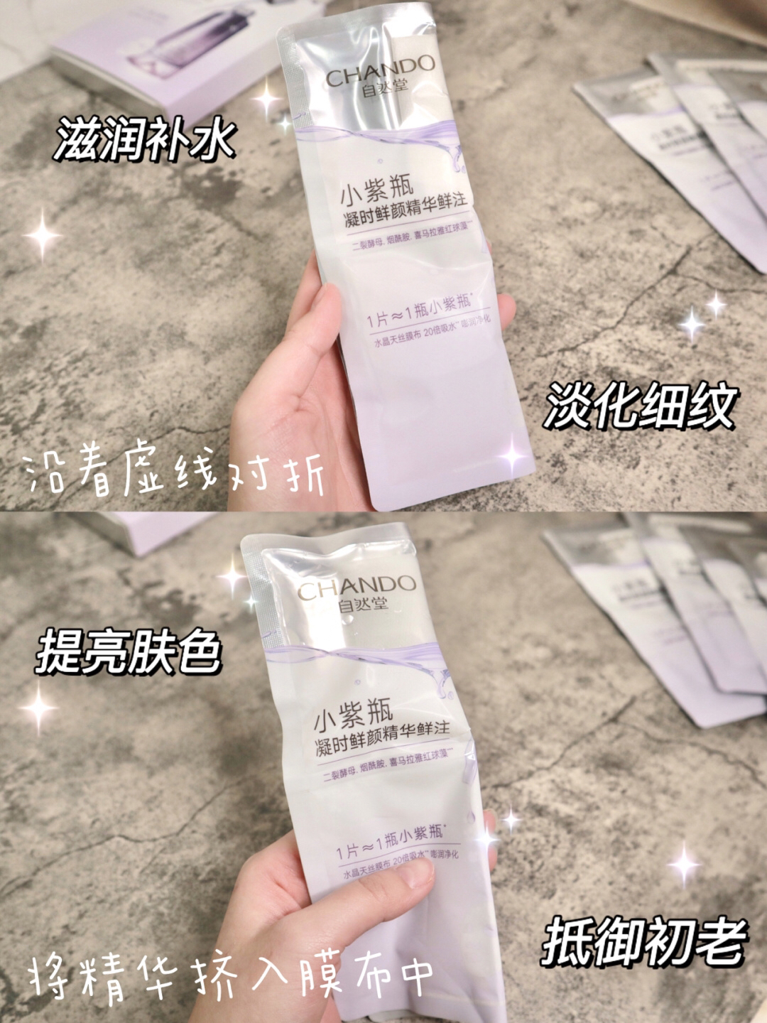 本篇笔记关联了CHANDO/自然堂 凝时小紫瓶精华鲜注面膜 抗老提亮肌肤淡纹 凝时小紫瓶5片等商品,为用户提供真实的使用体验和购买参考。