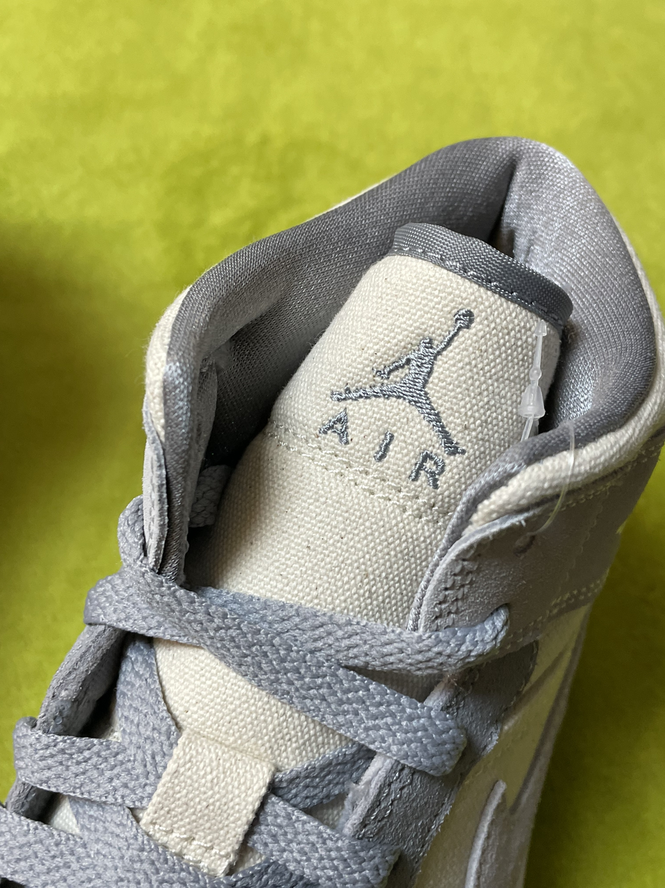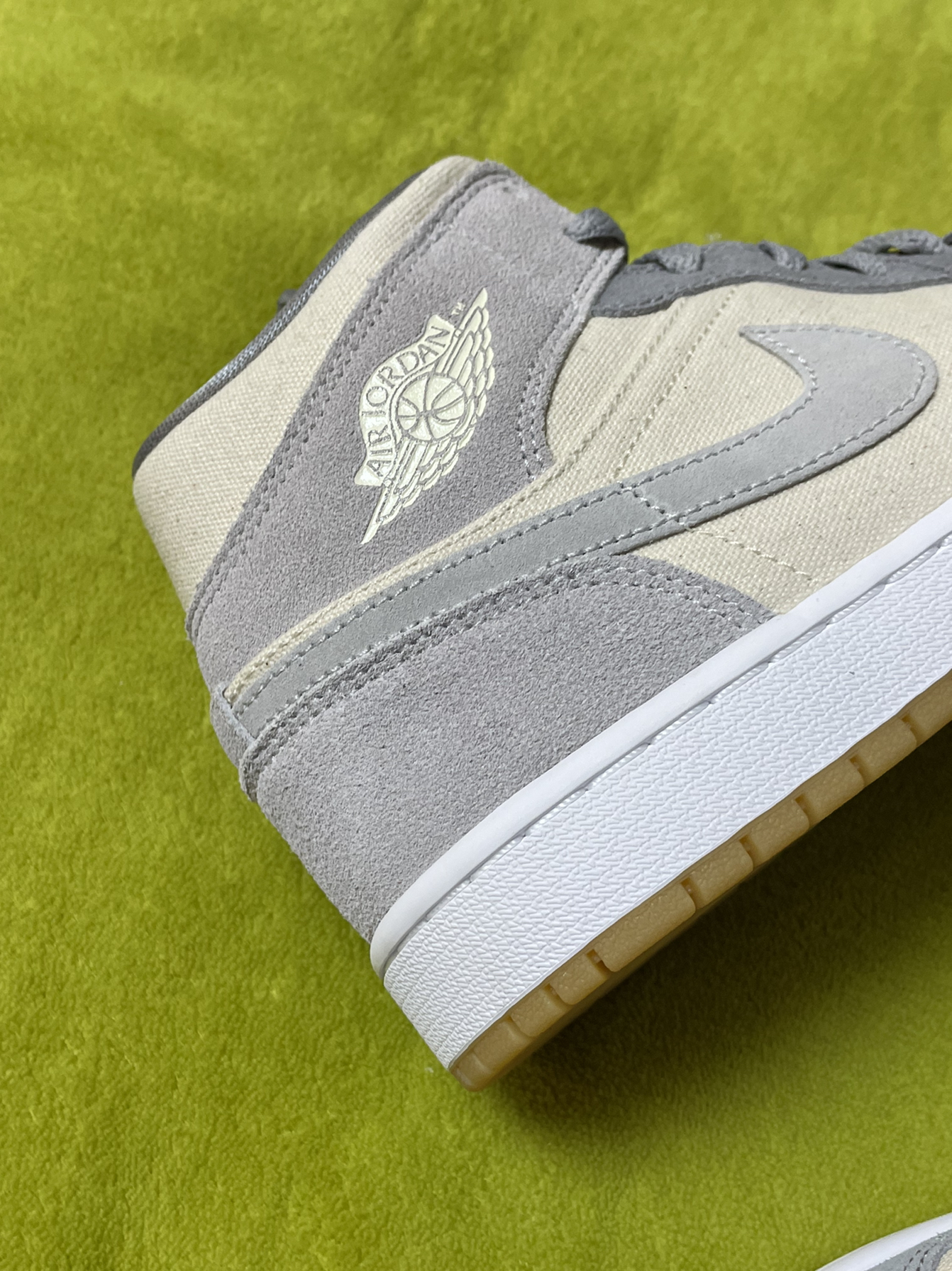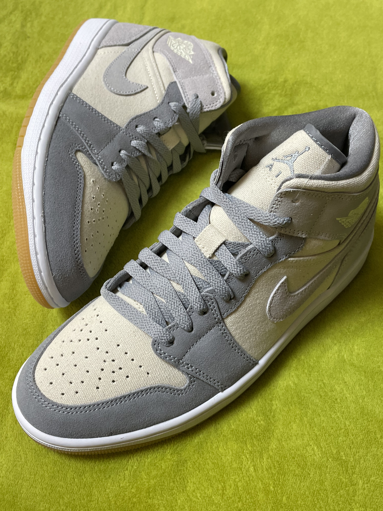 👟:Air Jordan1MidSECoconutMilk”复古篮球鞋米灰色 椰奶 这双鞋子鞋头、鞋带穿孔、Swoosh、后跟、鞋带采用灰色,鞋面、鞋舌、鞋中采用奶油色,中底采用白色,鞋舌鞋垫都有着乔丹飞人Logo,鞋帮飞翼Logo依旧经典,鞋面整体采用细腻绒面革+帆布材质组成,生胶鞋底也很亮眼! 整体而言,鞋子很好搭配衣服,可以说很是百搭!