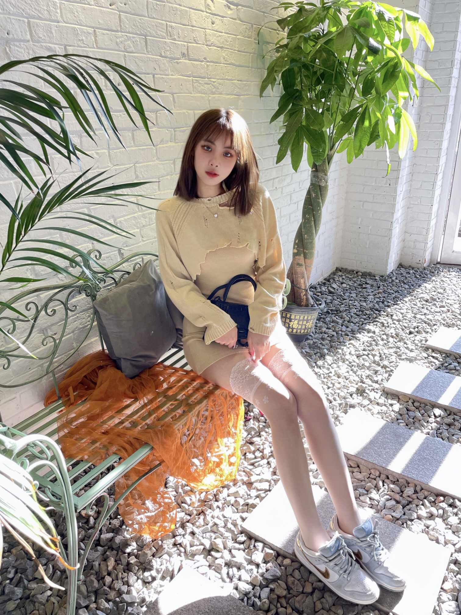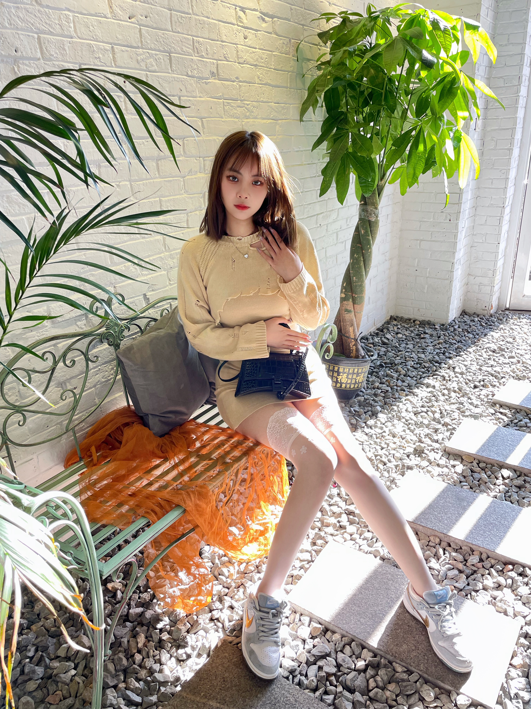👟:dunk 冰雪奇缘 👜: Balenciaga 巴黎世家沙漏包 💎:黛西法罗DaisyFellowes比利秘密项链 🧦:涞觅 🌟今日淑女气质风穿搭穿了一件米色的连衣裙,搭配了DF家的爱心钻石项链,非常的有气质,搭配了涞觅家的丝袜很特殊的淡粉色穿起来很显白,白丝配连衣裙也很🉑️~