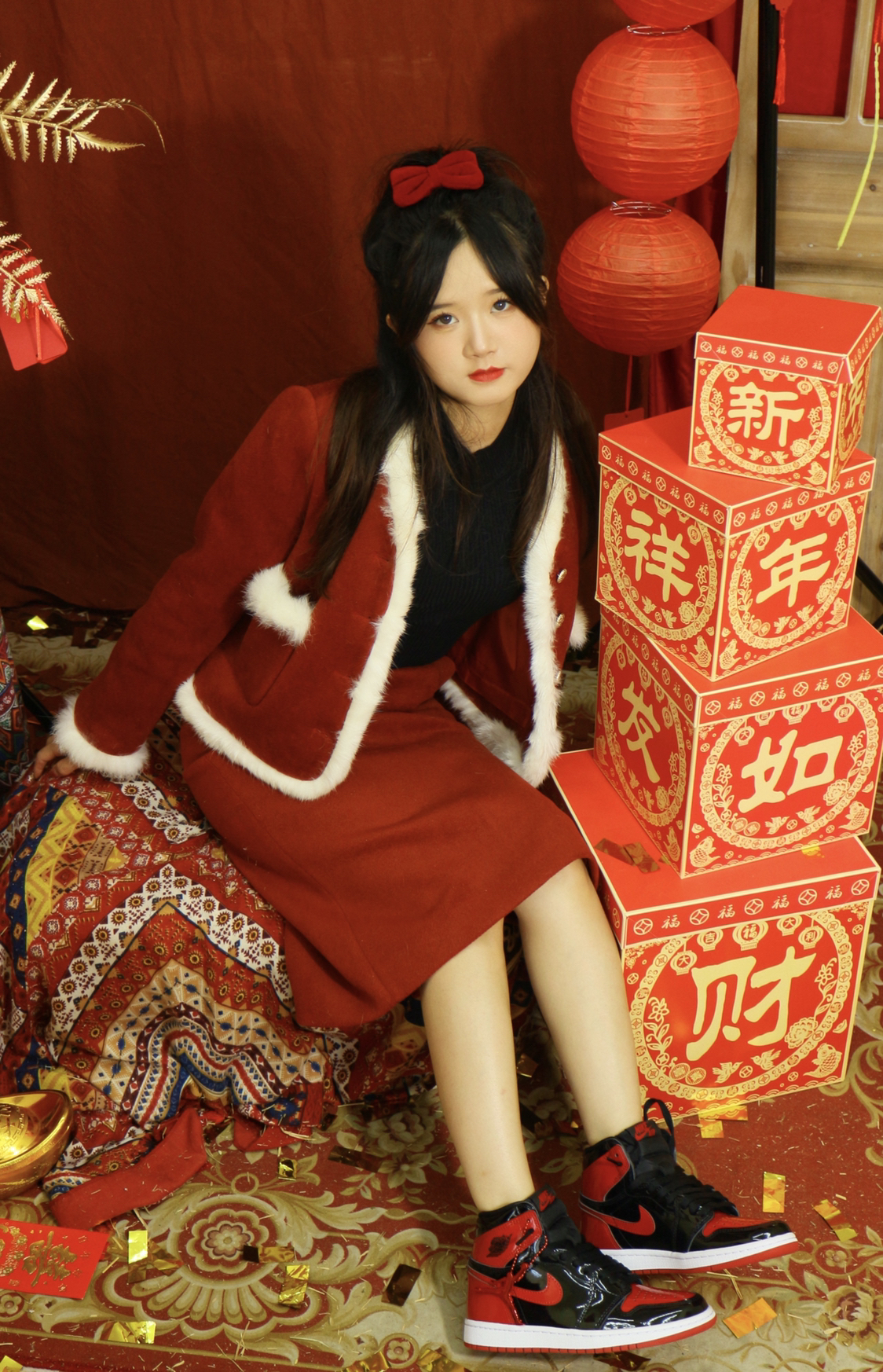 ❣️欢欢嘻嘻迎新年 🧨春节红红火火喜庆穿搭 ❤️浓厚的过年氛围 🌟喜庆与祝福充满着节日的欢喜 🌙今日穿搭灵感: 新春套装➕球鞋 ㊗️家人们新春快乐 虎虎生威发大财🐯