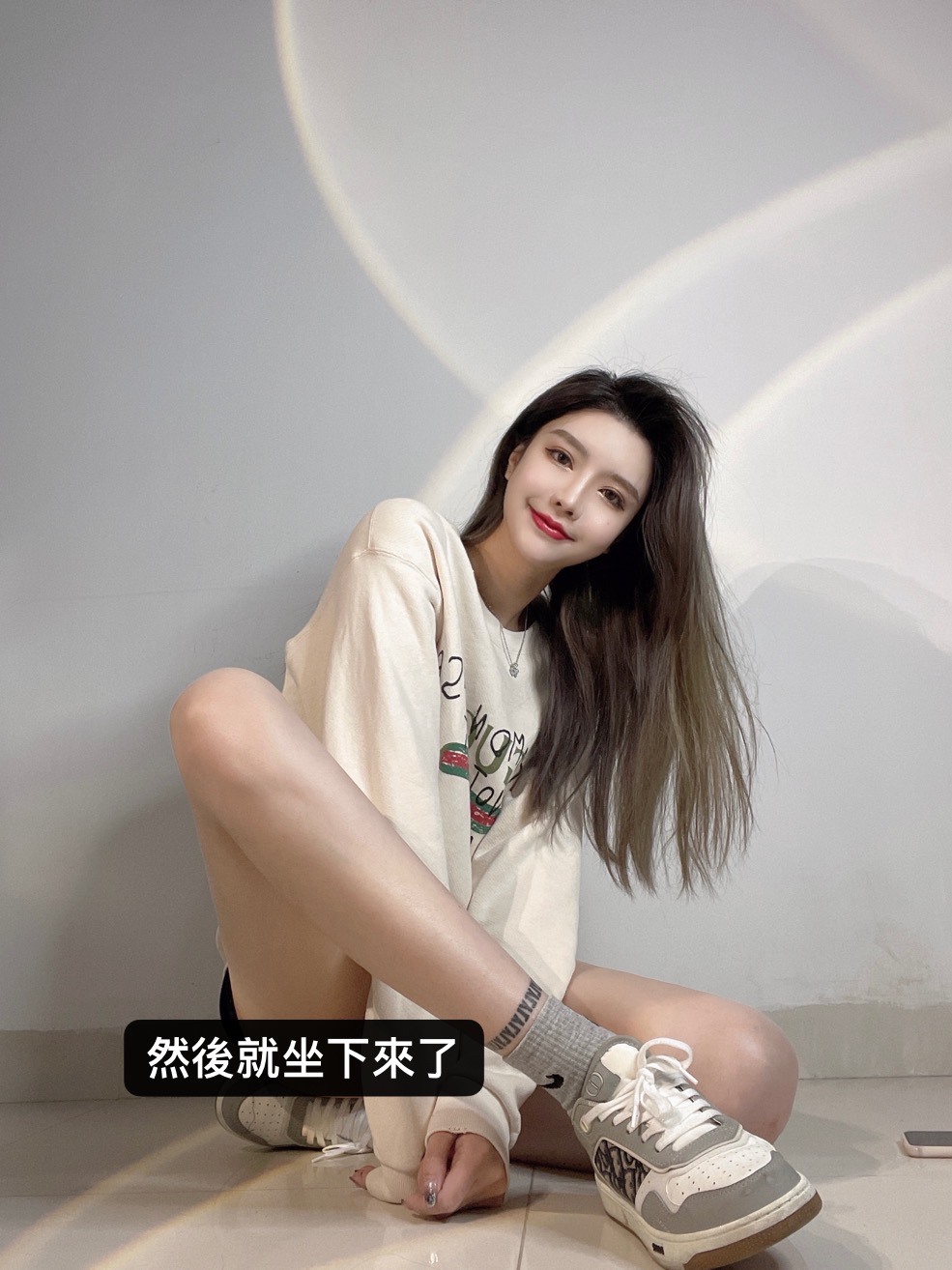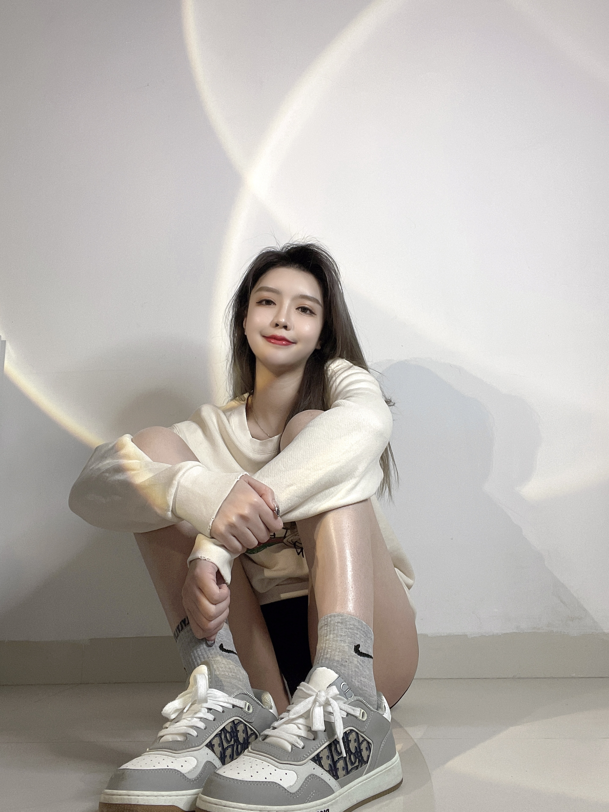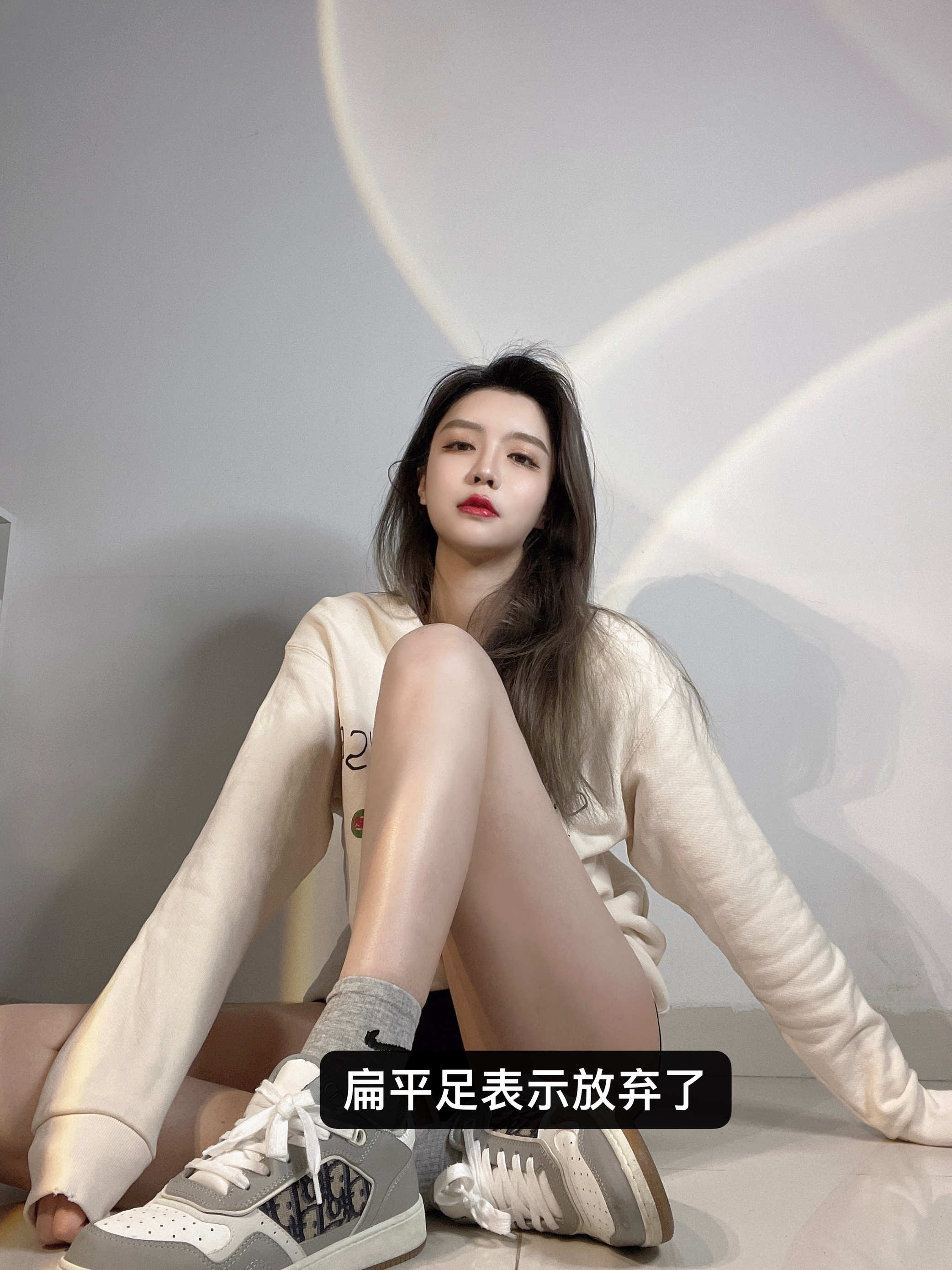扁平足蹲着可太难了🥲蹲了几分钟腿就开始麻了,然后放弃直接坐下了🥲…… dior这双低帮运动鞋真的又百搭又好看又好穿!第一次见它就毫不犹豫地入了!买来当情侣鞋也很合适!