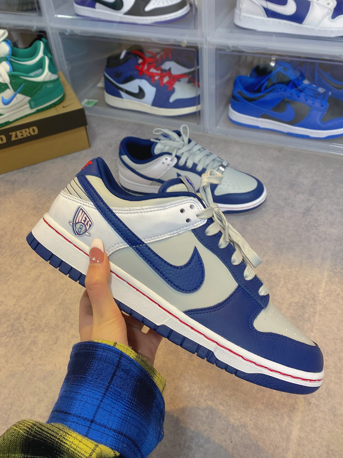 又是一双颜值拉满! 好喜欢这个蓝色➕复古红色刺绣的组合 👟:dunk 灰白蓝 布鲁克林