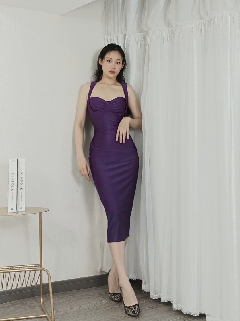 谁能拒绝一条鲜嫩多汁的葡萄裙呢~ 这条裙子包裹性很好,巨显身材 颜色是美艳而又不显沉闷的正调紫 会让人眼前一亮,在日常穿搭中真的很出彩 因为裙身比较简单,所以搭配了一双比较华丽的高跟鞋,更能显出成熟美艳的气质