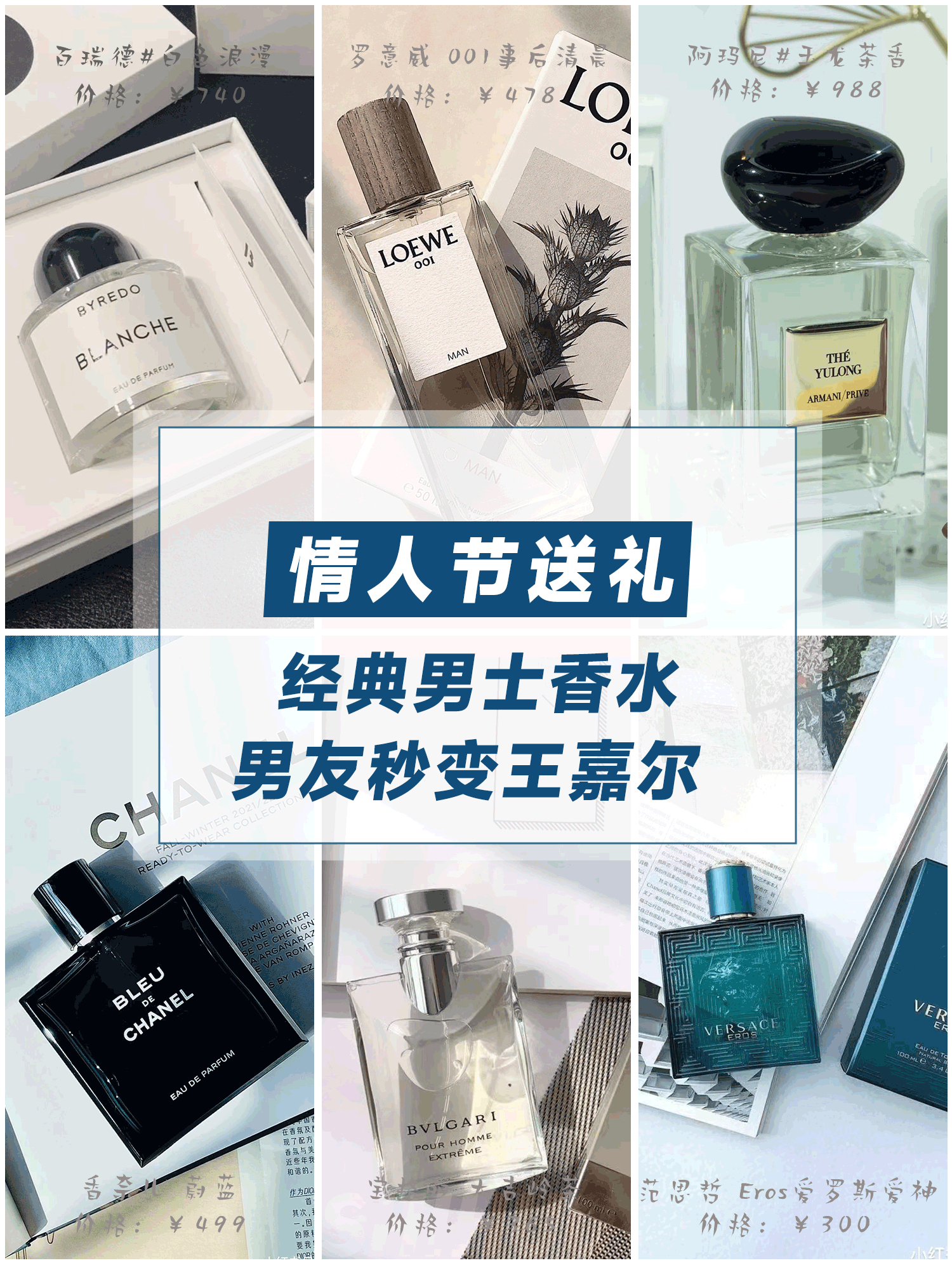 现在的男生一个比一个精致!当然少不了一款好闻的香水,情人节送男友礼物这篇就够啦,这些香水都是爆好闻,想要拥有“王嘉尔款男友”,不妨来看一看! 💙【王嘉尔同款】阿玛尼 全新高定私藏香水贵族清新香氛系列 #玉龙茶香 识货价格:988 推荐理由: 整支香是柑橘木质味道,前调绿茶味,中调绿茶满满变淡,烟熏的木质感,后调清冷起来,整体都是能够给人留下深刻印象的味道,完全可以冲起来。 💙宝格丽 易烊千玺代...