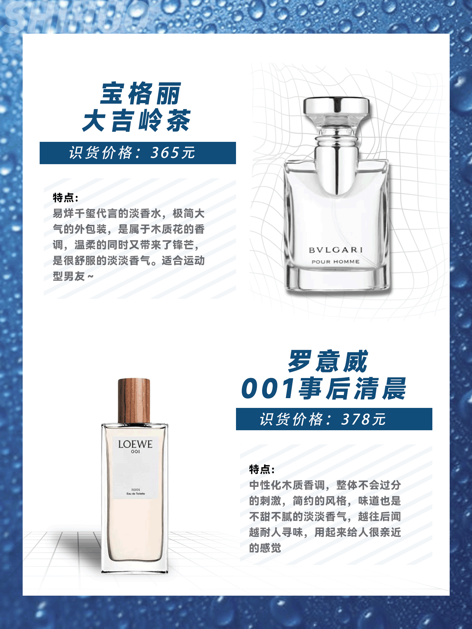 本篇笔记关联了Bvlgari/宝格丽 大吉岭茶系列男士香水 极致版 淡香EDT、Loewe/罗意威 001事后清晨男士系列香水 淡香水 EDT、Versace/范思哲 爱罗斯爱神系列男士香水 EROS爱罗斯 淡香水EDT等商品,为用户提供真实的使用体验和购买参考。