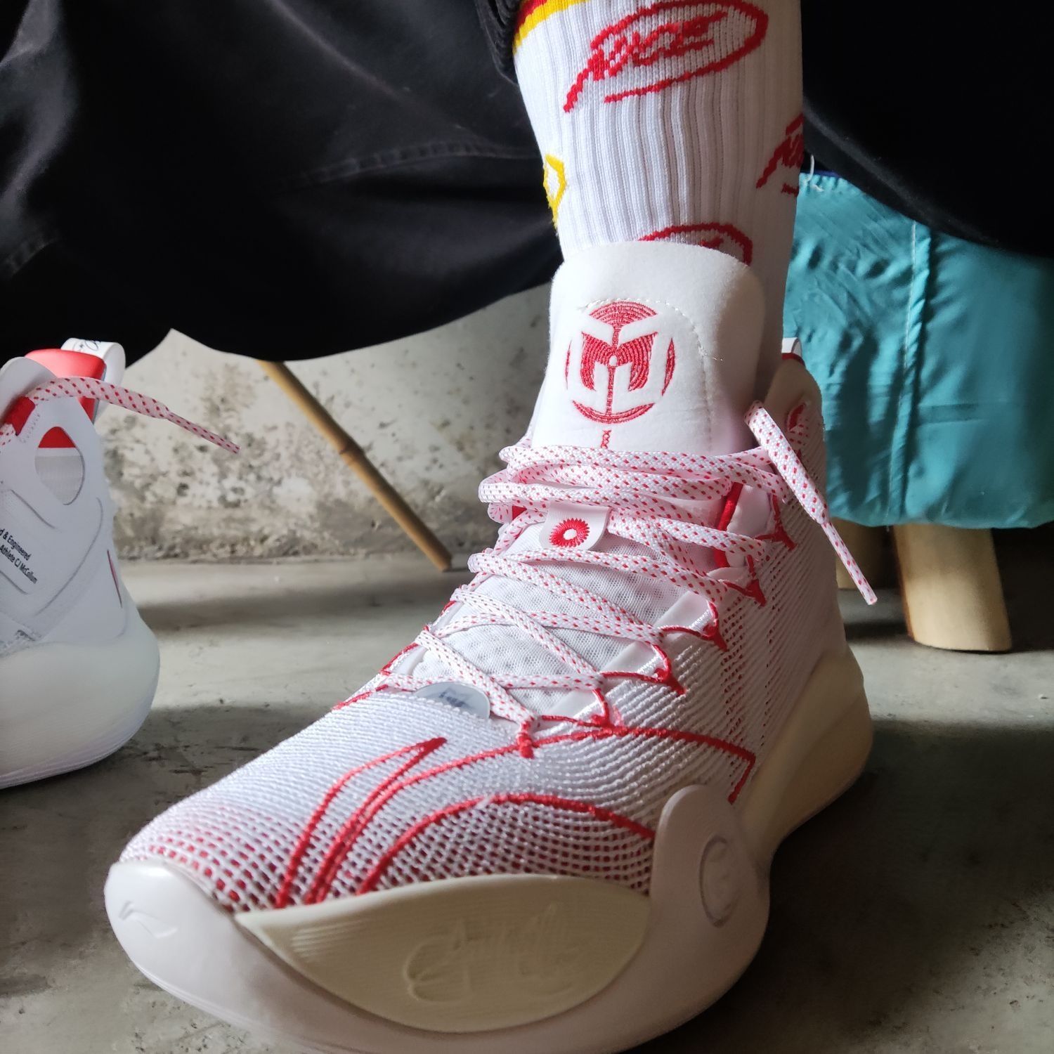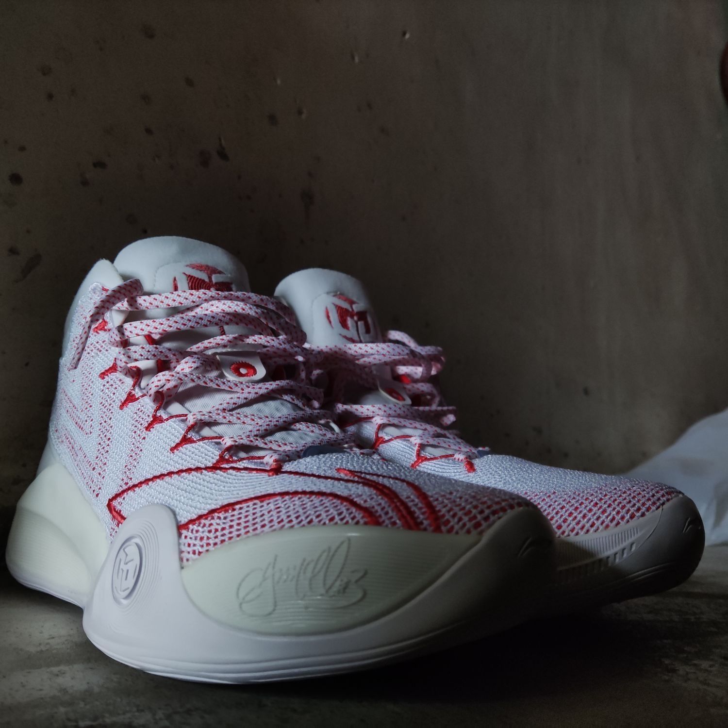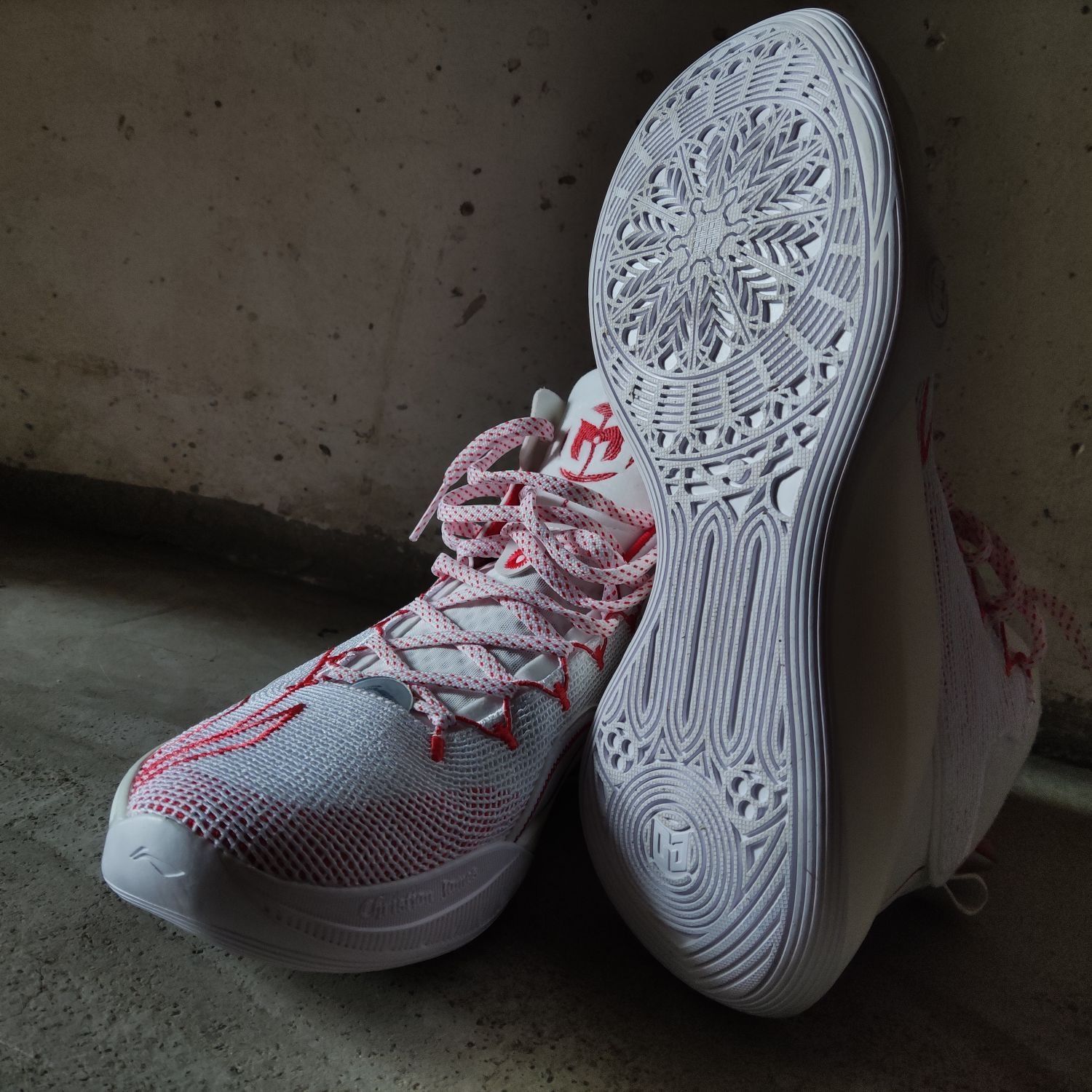 👟球鞋名称:CJ1 🔍设计亮点:整体以白红为主色调,看起来跟驭帅13䨻有点像 ⛹️实战感受(缓震/包裹/抓地力):缓震软弹,有一种莫名的爆发感,促使我想去跳;包裹性,一个字,绝!!!鞋脚一体性也是绝!!!;抓地力的话,就有点美中不足了,不沾到灰还挺稳的,沾到灰之后就滑,特滑。 📃总结评价:帅帅帅帅帅帅帅帅帅,第二次在李宁这里买到心仪的球鞋(第一双是反伍1),真的,CJ1帅到我流口水hhhhh...