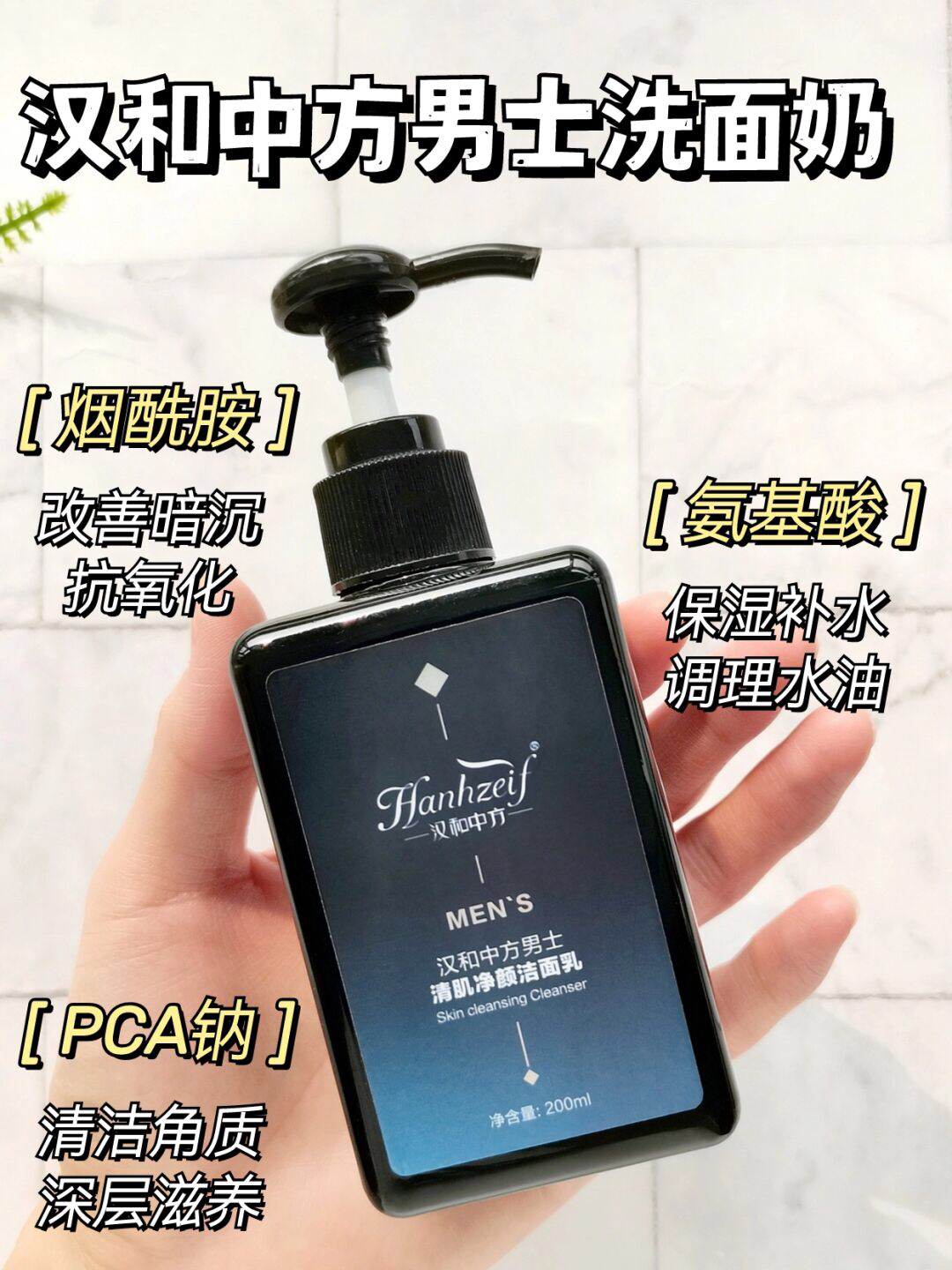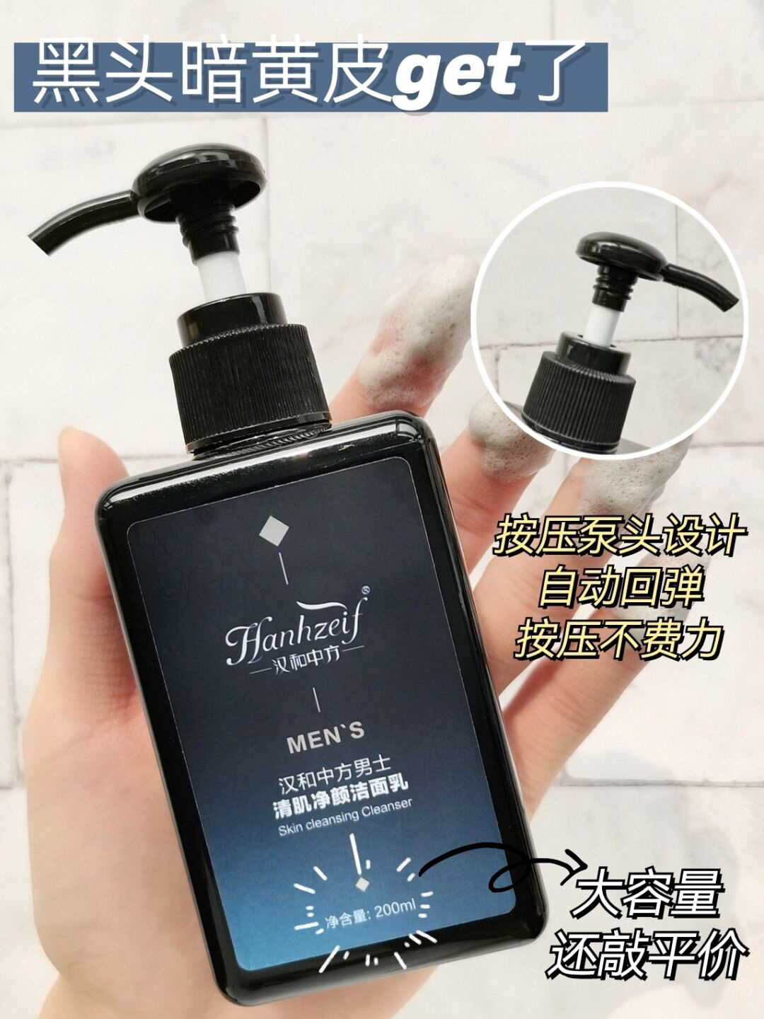 弟弟前段时间囤了好多这款汉和中方男士洗面奶🤔 既然囤了这么多 想来应该是个挺不错的洗面奶吧🧐 这不-自己也做了功课 确实这洗面奶挺不错的👍 特别是对于黑头肌、暗黄皮这类男孩 这款男士洗面奶就当仁不让了👏 - 渐变色系的瓶身搭配按压式泵头 每次洗脸挤一泵就OK了✌ 自动回旋,按压起来毫不费力 挤出来是那种曜石黑颜色的质地 在阳光映射下显得格外盈润透亮 轻薄好推开,一点也不黏连😉 - 起泡也很迅速 兑...