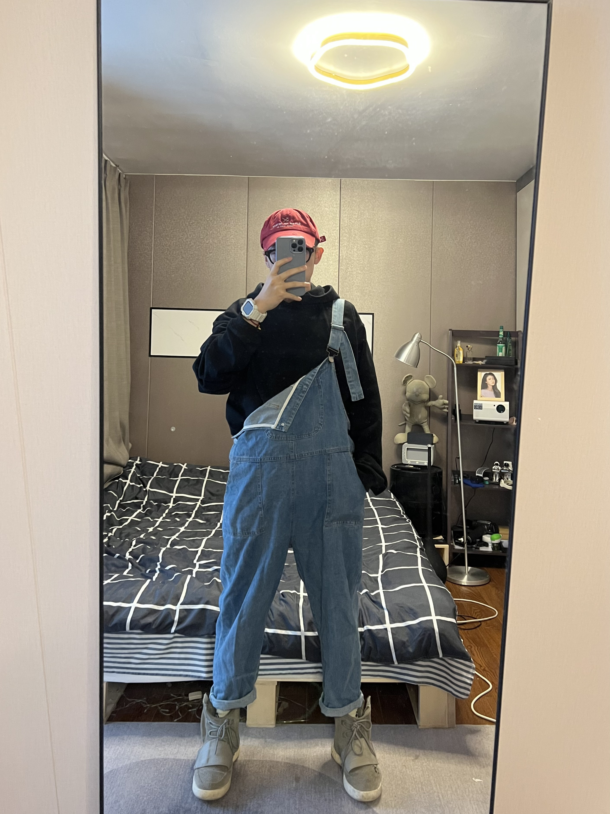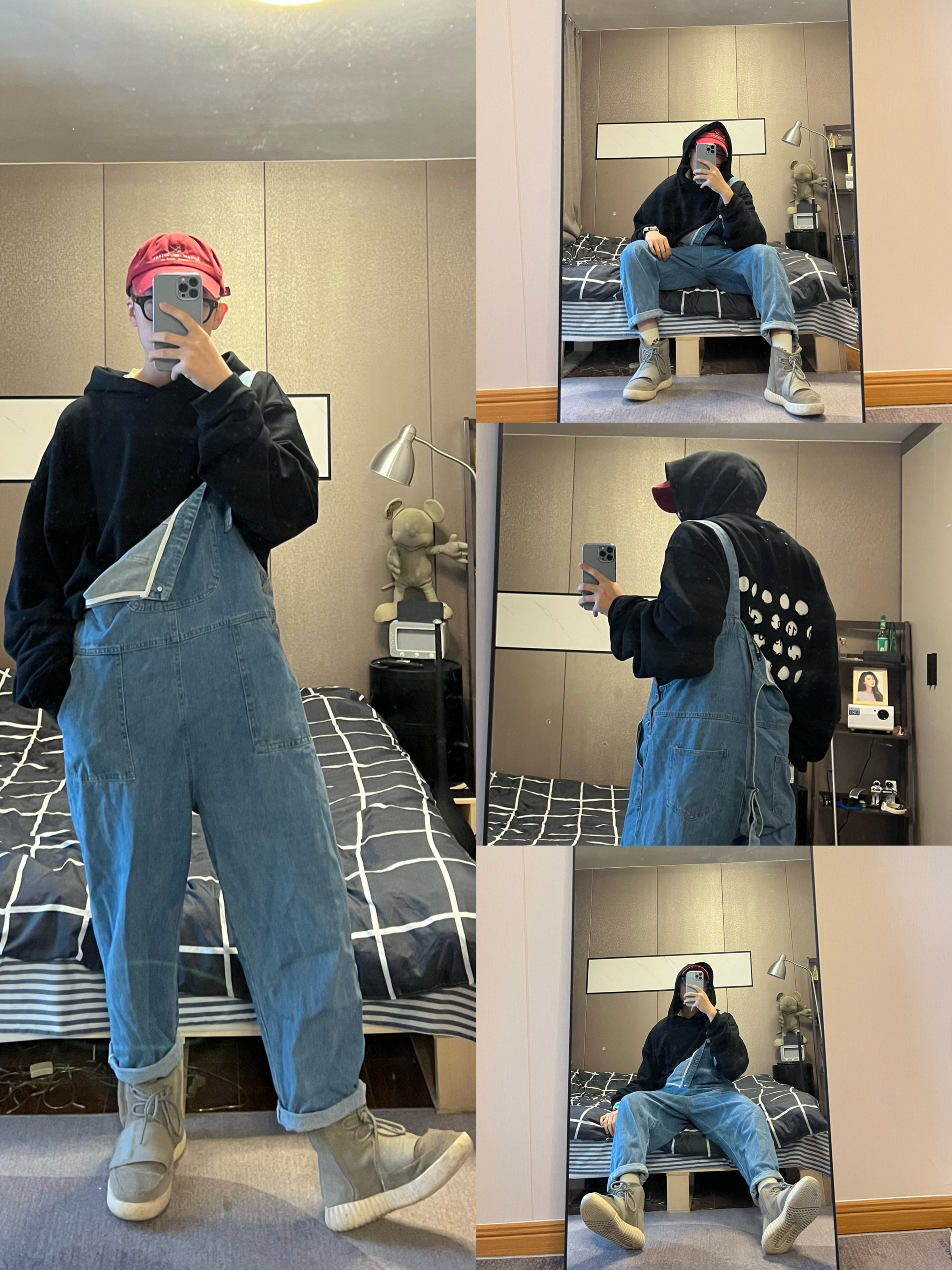 Hey 这里是callxsf ✖ 今天是马里奥! 给大家带来背带裤穿搭 背带裤减龄神器 穿上立马高中生 如果裤子比较宽松的话 建议裤腿可以别一下 上身搭配连帽卫衣套头卫衣都可 夏天也可以搭配短袖T恤衬衣 也算是百搭 不过就是穿着它上厕所不太方便(对于男生来讲 -日常会分享一些我的穿搭 三分长相七分穿搭懂的穿搭的男生更帅 欢迎关注希望能够帮助到大家