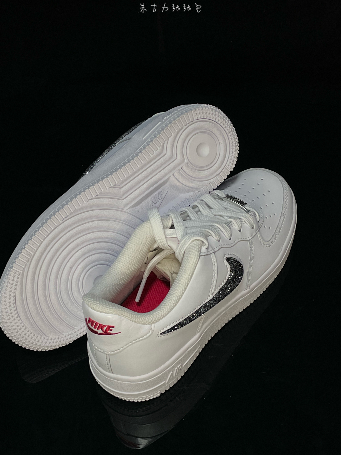 Nike Air Force 1 LV8 (GS)低帮休闲板鞋 白银色 新年我就穿它了!!简直是我的心头爱,最近很迷的一双鞋子,很简约的一款,白色鞋身搭配红色logo 显眼又别致,Swoosh带有亮闪闪的效果,非常的好看,实物还是不错的,质感还可以,白色中底和橡胶 上脚感一般,还是有点冷!!等开春穿刚刚好,现在还可以接受