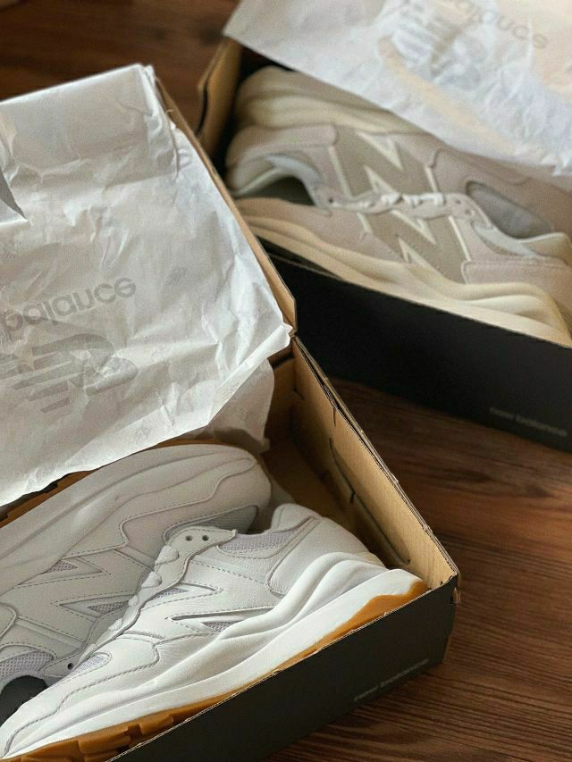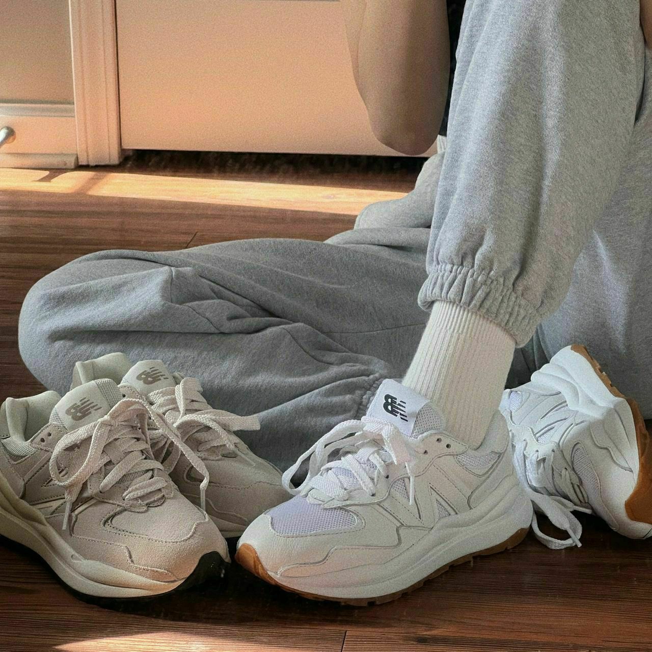 买完才发现这双奶茶色很热门 但是我感觉白色更值得呀! 和327是完全不一样的感觉 感觉更加美式休闲 复古随意 jio感也很不错 直接入了两双🔥也可以当做情侣鞋穿! ⚠️尺码建议:正常的尺码,我Aj38这个买了38.5!