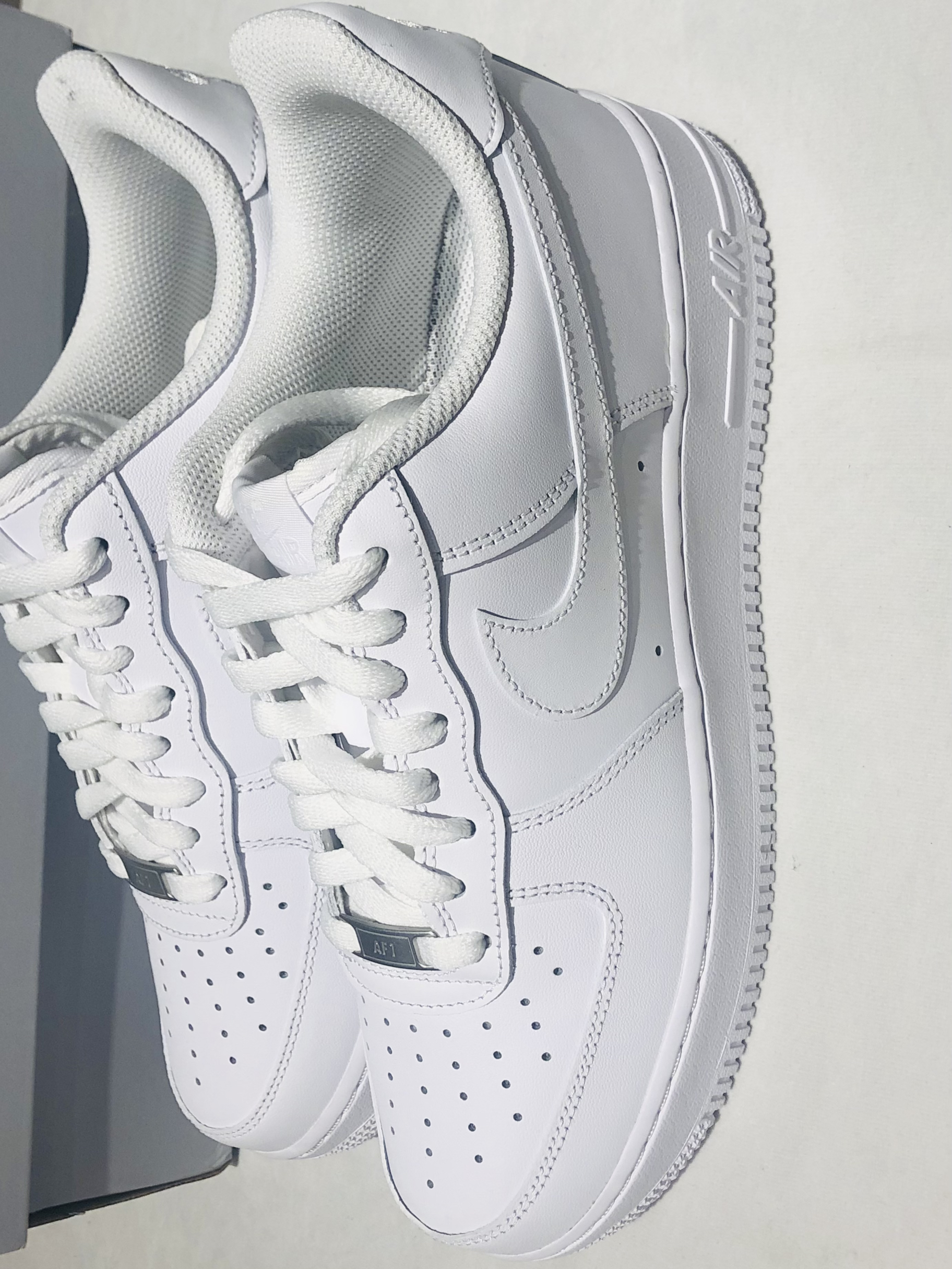 ✔️: Nike Air Force 1 '07 纯白 配色(AF1) ✅鞋子历史:1982年,第一双融入NIKE AIR技术的篮球鞋亮相球场,为摩西·马龙与查尔斯·巴克利的篮坛生涯带来颠覆性改变,敏捷的速度与稳定的抓地力帮助他们叱咤所有球场,室内木地板场地或街头篮球场都再难逢对手。AIR FORCE 1家族新成员传承前代弹性、柔软缓震性能与厚实中底构造的设计,同时融入更趋完美的AIR气垫技术,令...