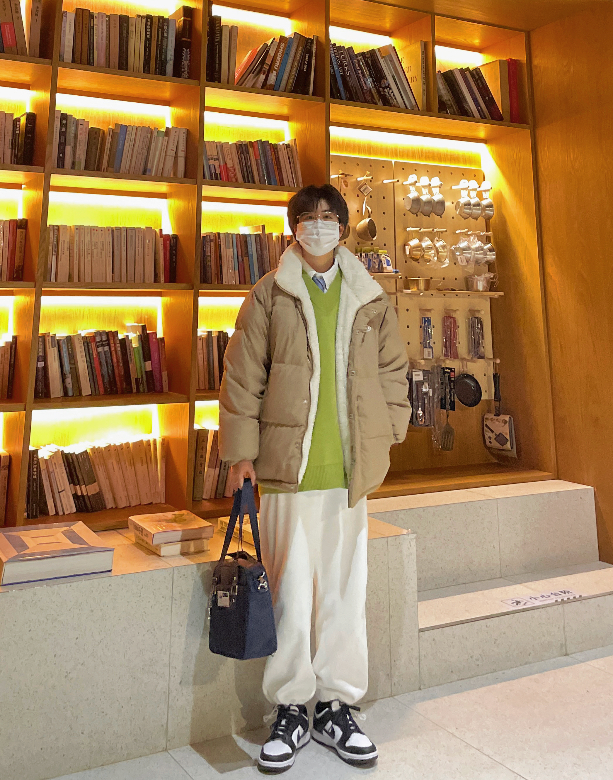 ✨今日穿搭 卡其色双面穿棉服 白色加绒束脚裤 nike熊猫dunk 草绿色背心 白色衬衫 蓝色条纹领带 —————————————————— ✨卡其色和白色的搭配很清新 草绿色的背心会增加层次感 有眼前一亮的感觉 浅蓝色的条纹领带很有细节感 熊猫dunk真的很百搭 奶茶色的棉服也很奶兼具保暖性的一套look —————————————————— ✨每日穿搭|新年穿搭|过年怎么穿|新年男友风穿搭...