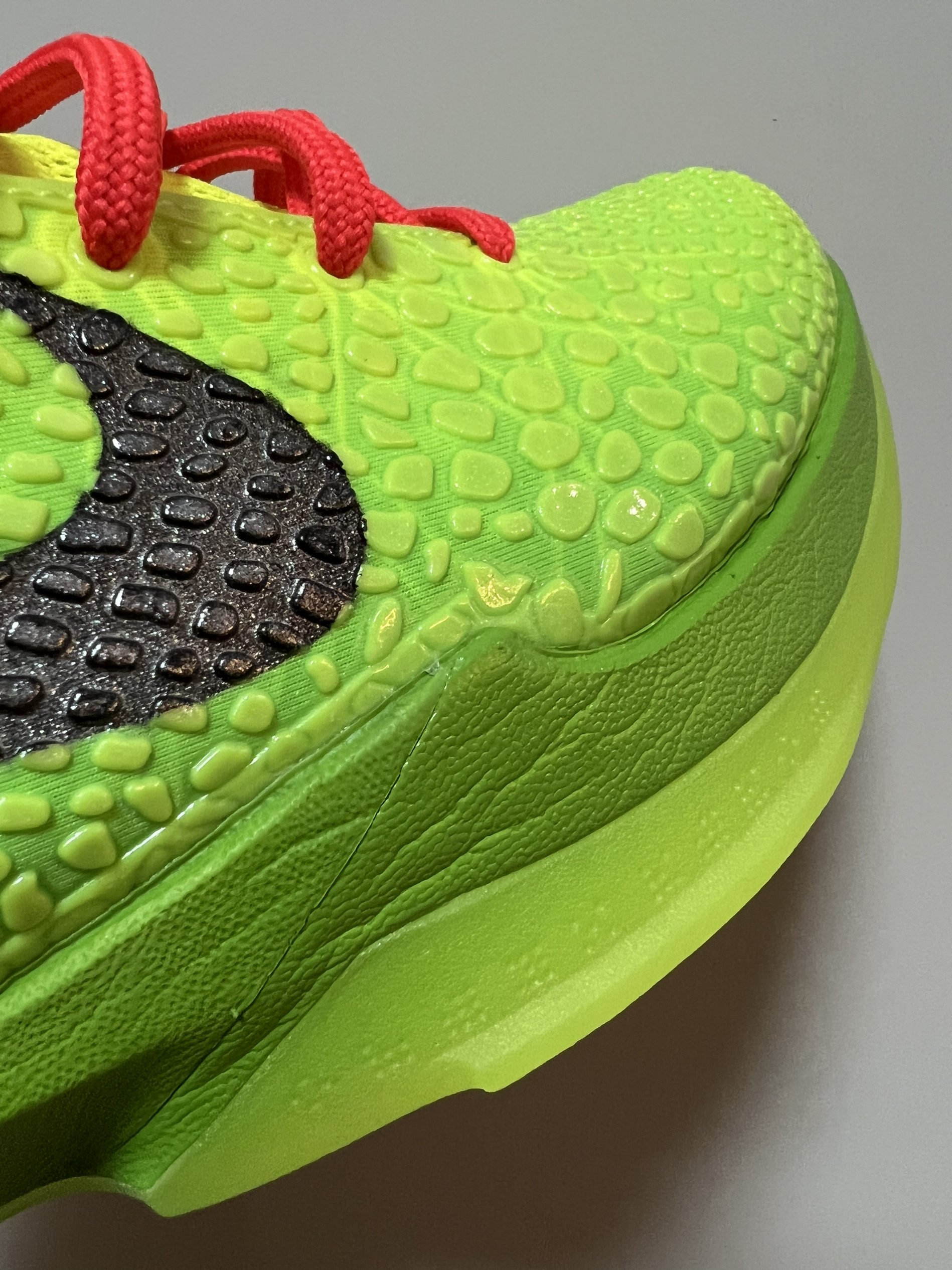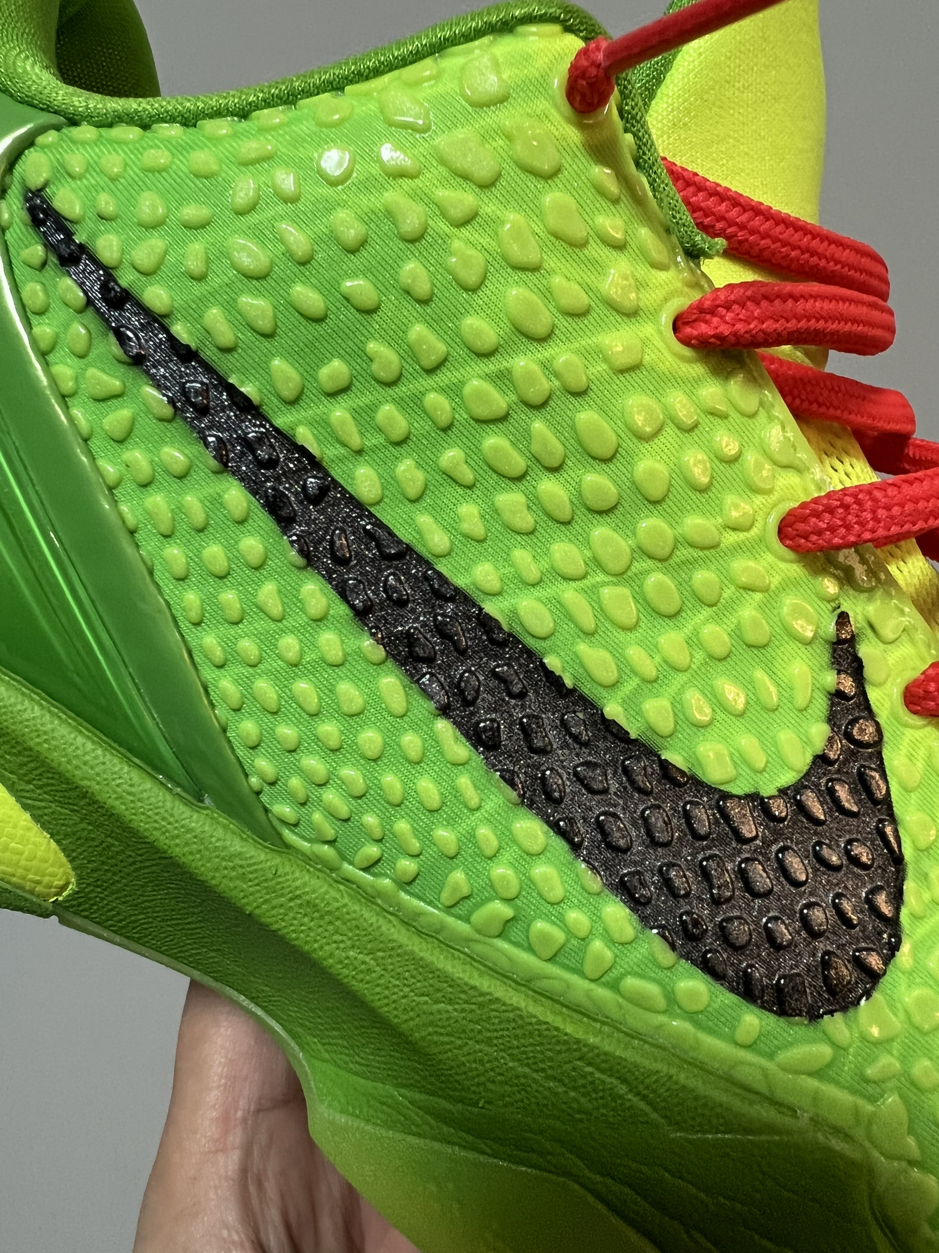 随着科比的过世, 曼巴精神某种意义上真正的成为人们心目中的信仰。 喜欢打球的朋友们,都会有一双科比系列篮球鞋。 今天带来的,是这双 科6青蜂侠 一说到这双鞋,首先让我记忆犹新的就是整体鞋面上蛇鳞的装饰。 让我第一时间就联想到了曼巴,联想到了科比 再加上翠绿色的鞋身以及反差很大的鞋带儿,不想成为场上最亮的焦点都很难 鞋子的性能方面也是非常接近于备受大家好评的科5 从鞋底到外形毫不犹豫地说是科5的升...