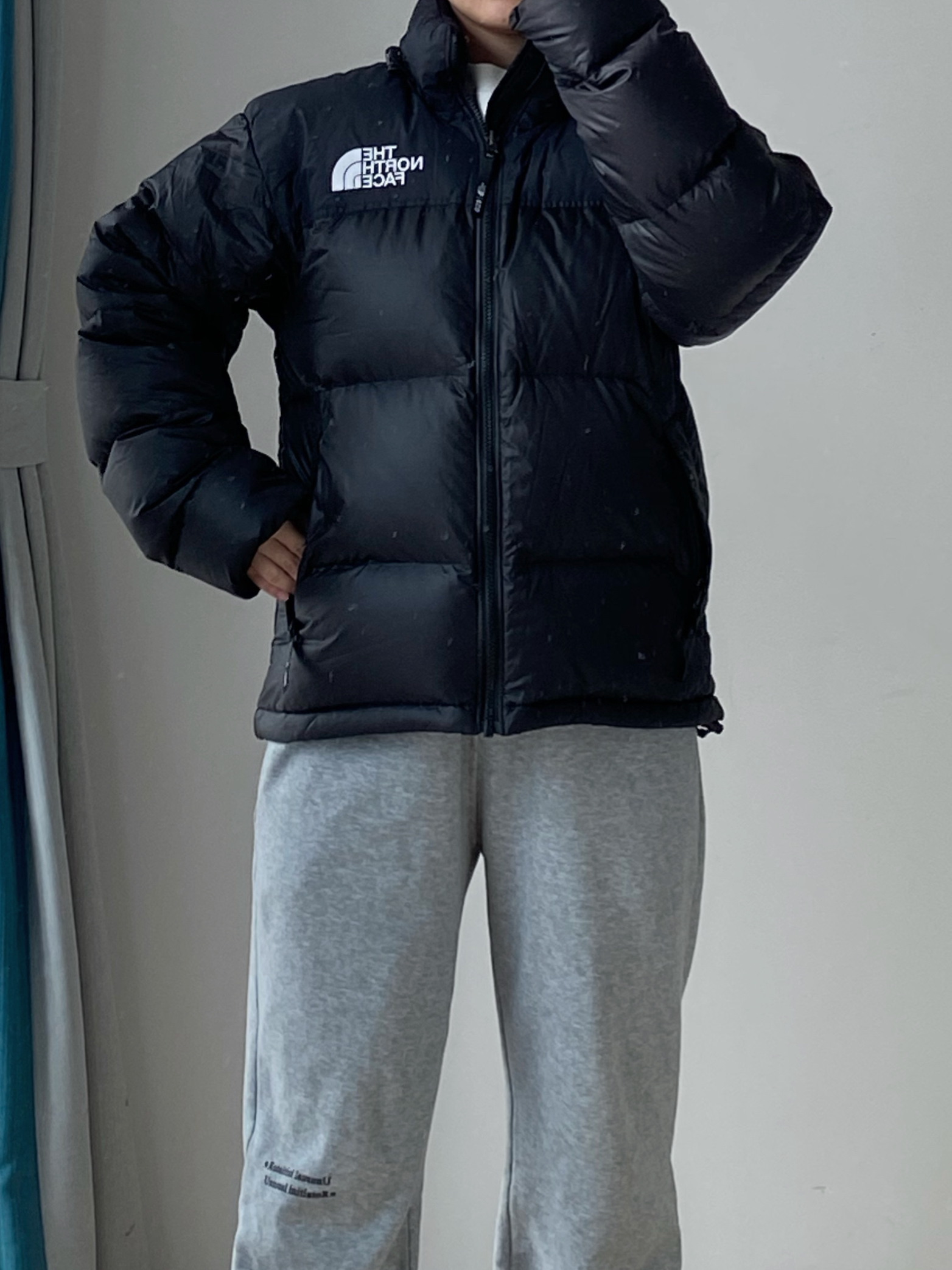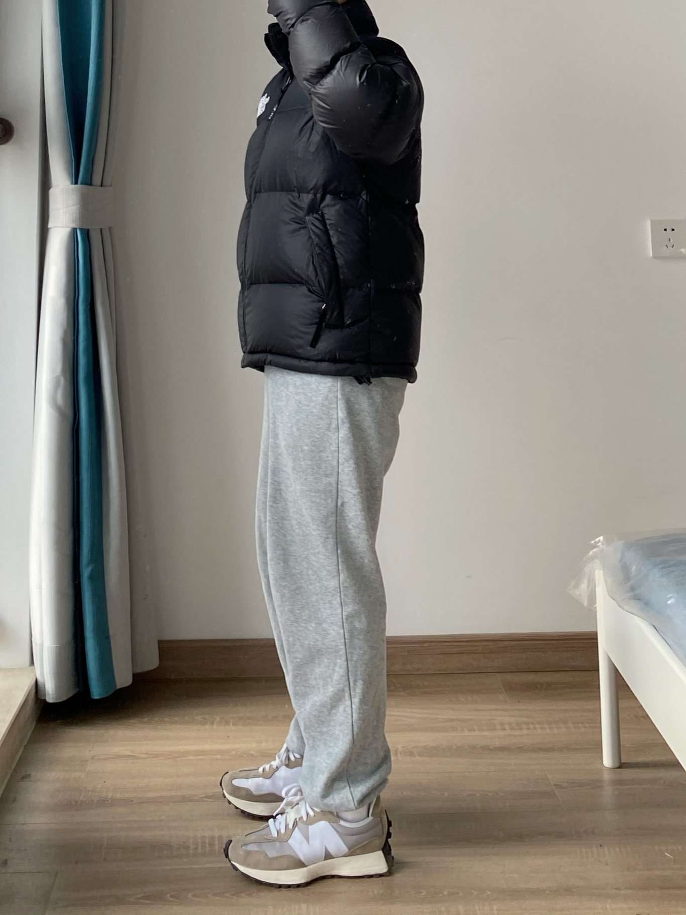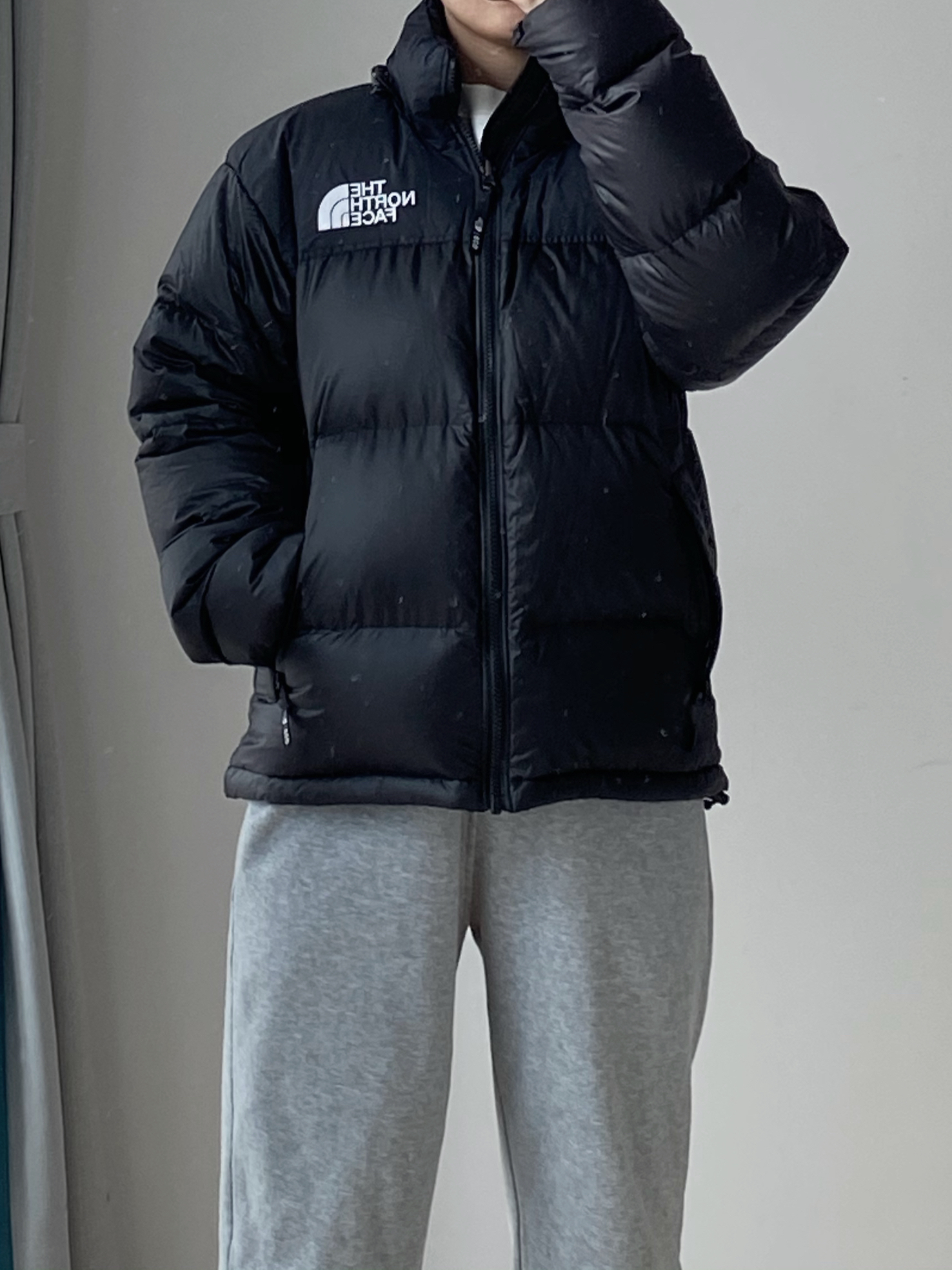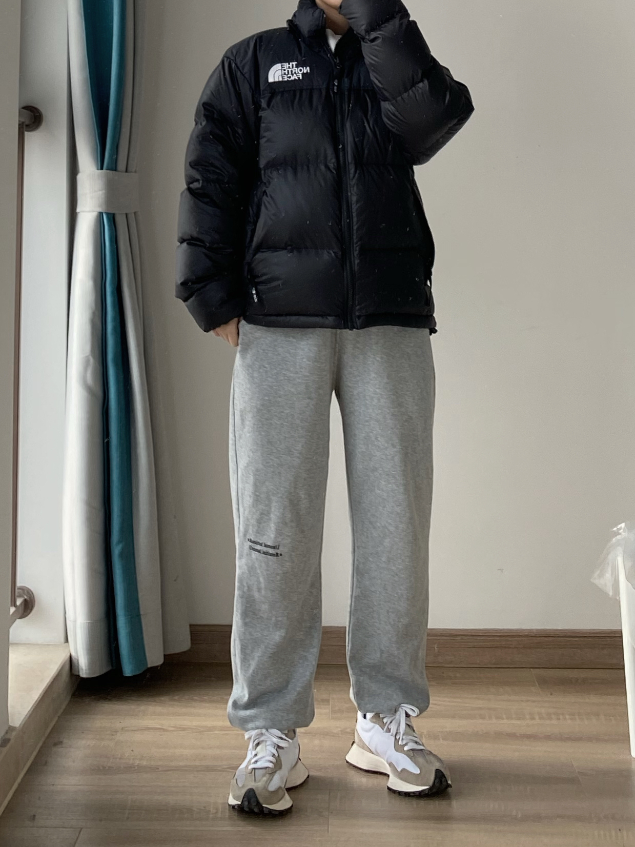 最近北方还是比较冷 羽绒服穿起来~ 小个子男生可以尝试一下北面纯黑色的羽绒服 超级帅 版型偏短 对小个子男生非常友好哦 保暖效果没话说 可以过冬 搭配的是我经常穿的灰色束脚卫裤 宽松的束脚版型 休闲穿很舒适 我穿的最小码裤长刚好 👖:白告studio
