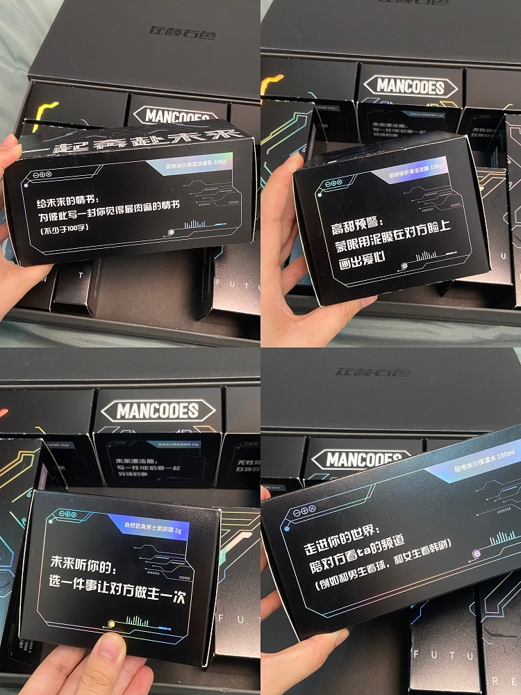 姐妹们情人节到了! 期待又到了互送礼物的时候 你们都准备好送什么礼物了吗~ 其实每次到节日 选男生礼物真的挺难的 问过了身边姐妹们之后还是选择入这个心电感应限定护肤套盒 然后偷偷放家里被男友发现了 直呼爱的不行! 这个礼盒达到了他喜欢的点了 礼盒真的很酷很酷 配色很高科技的感觉 主要这就是专门为情侣打造的! 封面以及打开盒子都是有一个心电心型的图形 每一个小盒子都有情侣间的互动游戏 套盒类...