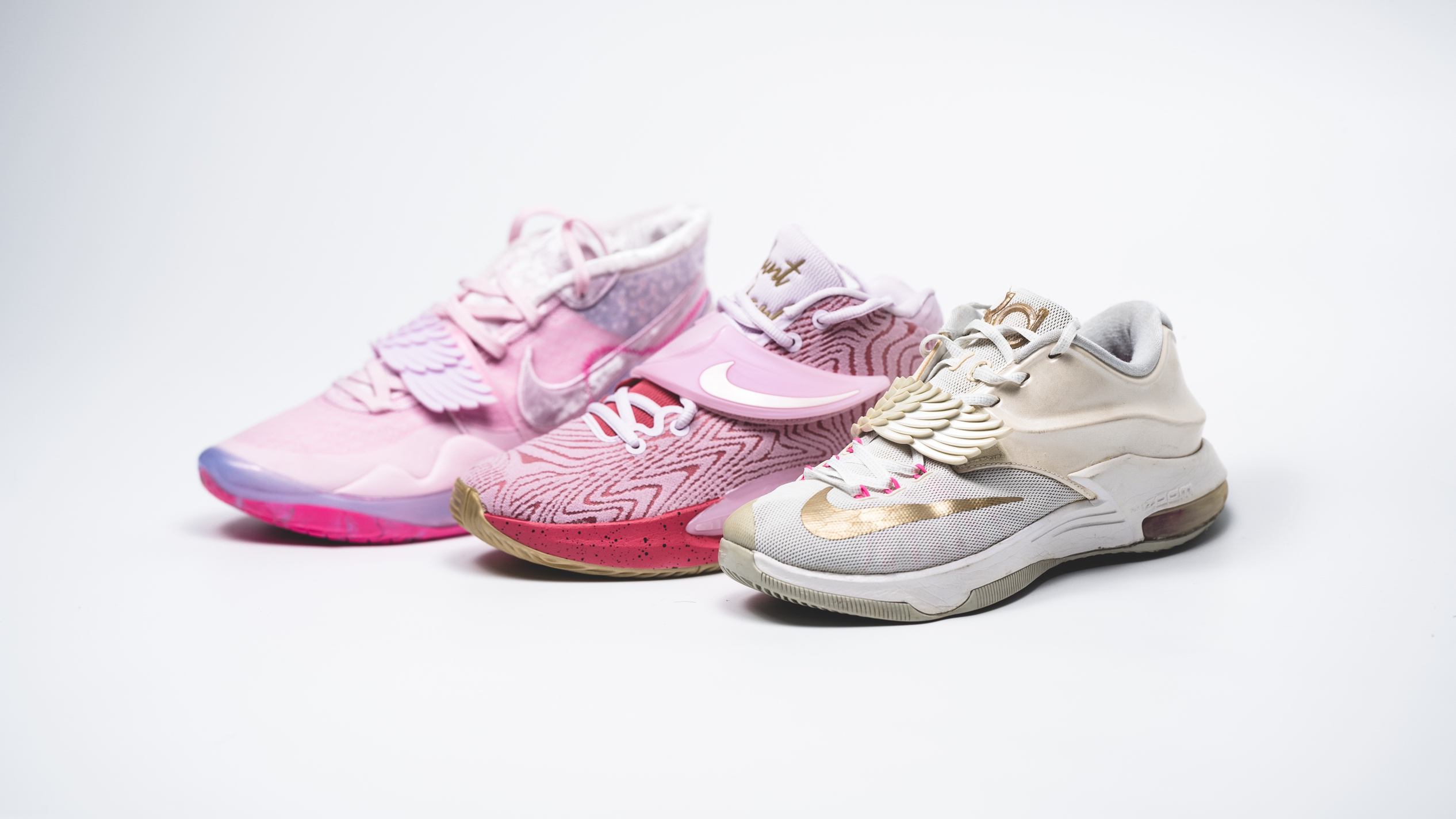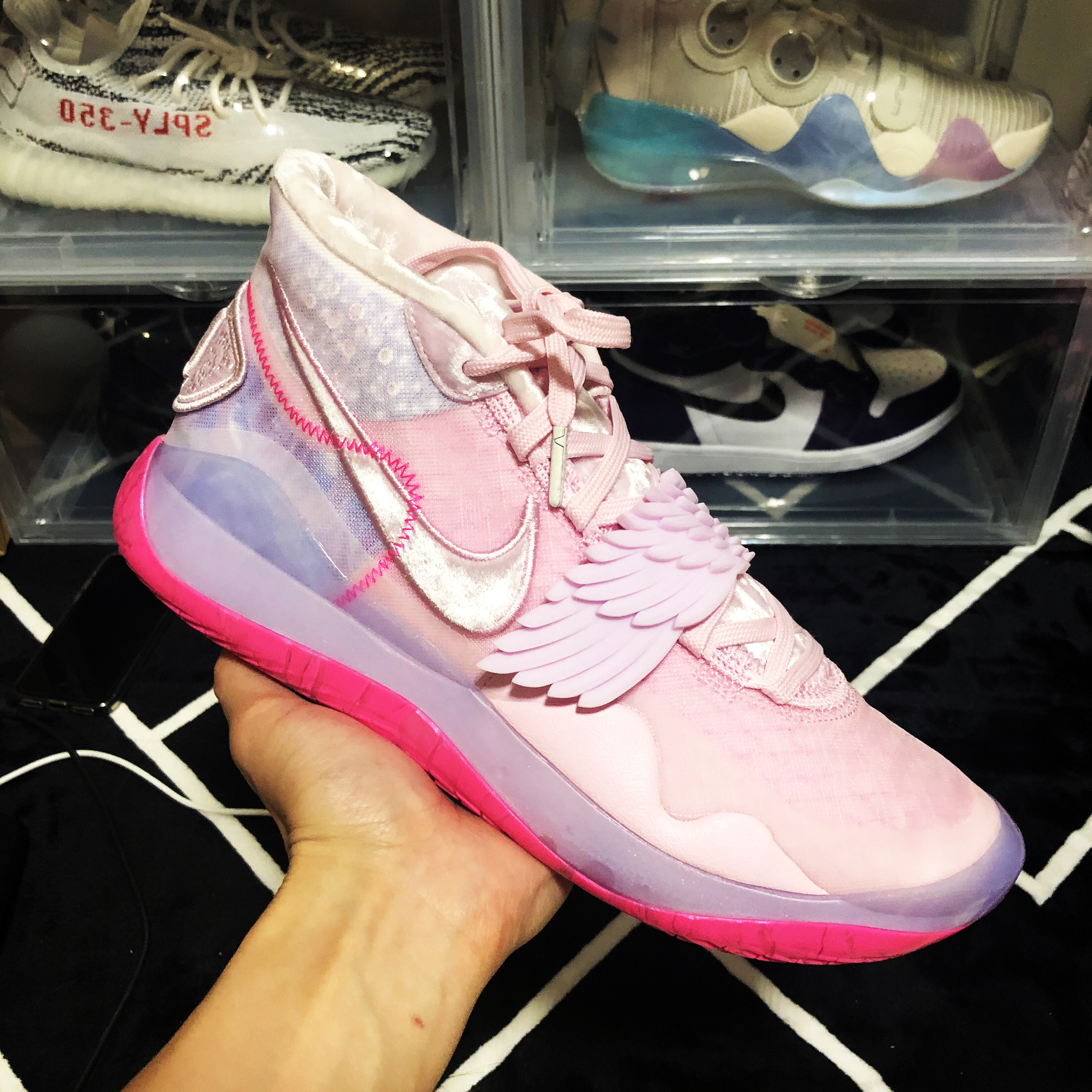 一年一度我最期待的配色它终于发布了, 但是我在很期待的KD14他明明有绑带设计的一个情况下, 不知道为什么他今年的乳腺癌配色没有继续沿用 KD7,还有KD12这个非常惹人喜欢的小天使翅膀的这个设计, 作为一双限定的话,他诚意当然是没有KD12那么诚意足, 但是作为KD14里面的一些配色方面选择他绝对是很值得购买的一双,因为KD14的里面,在所有配色颜值里面,我觉得这一双的话颜值看上去至少还是...