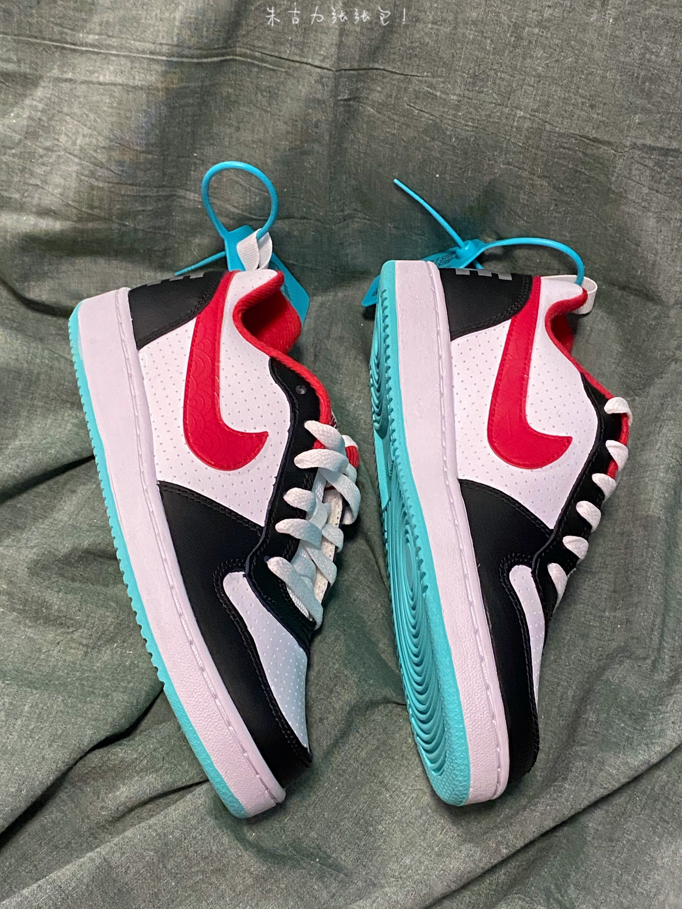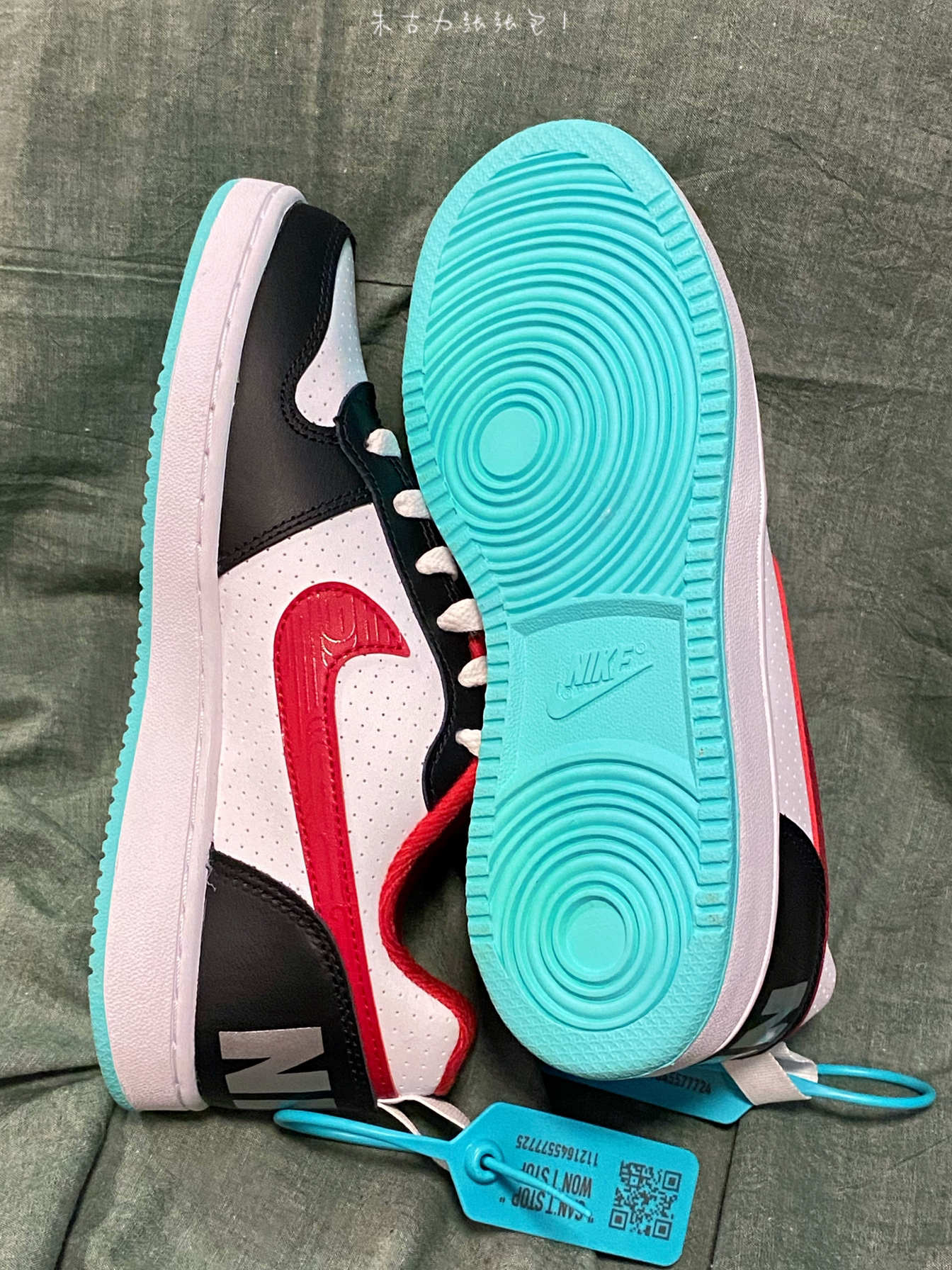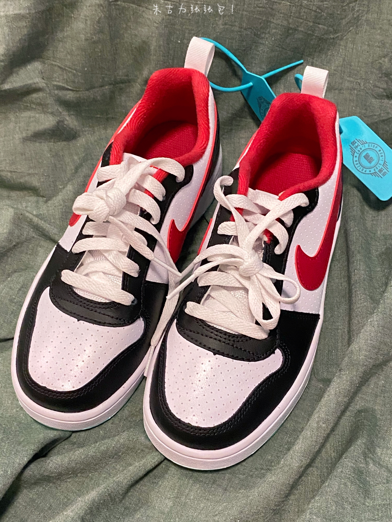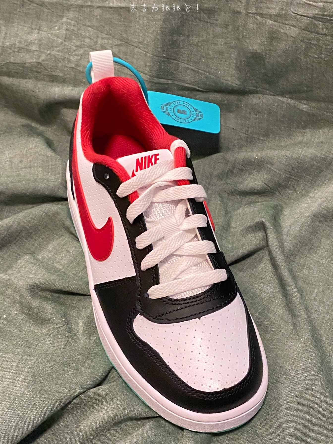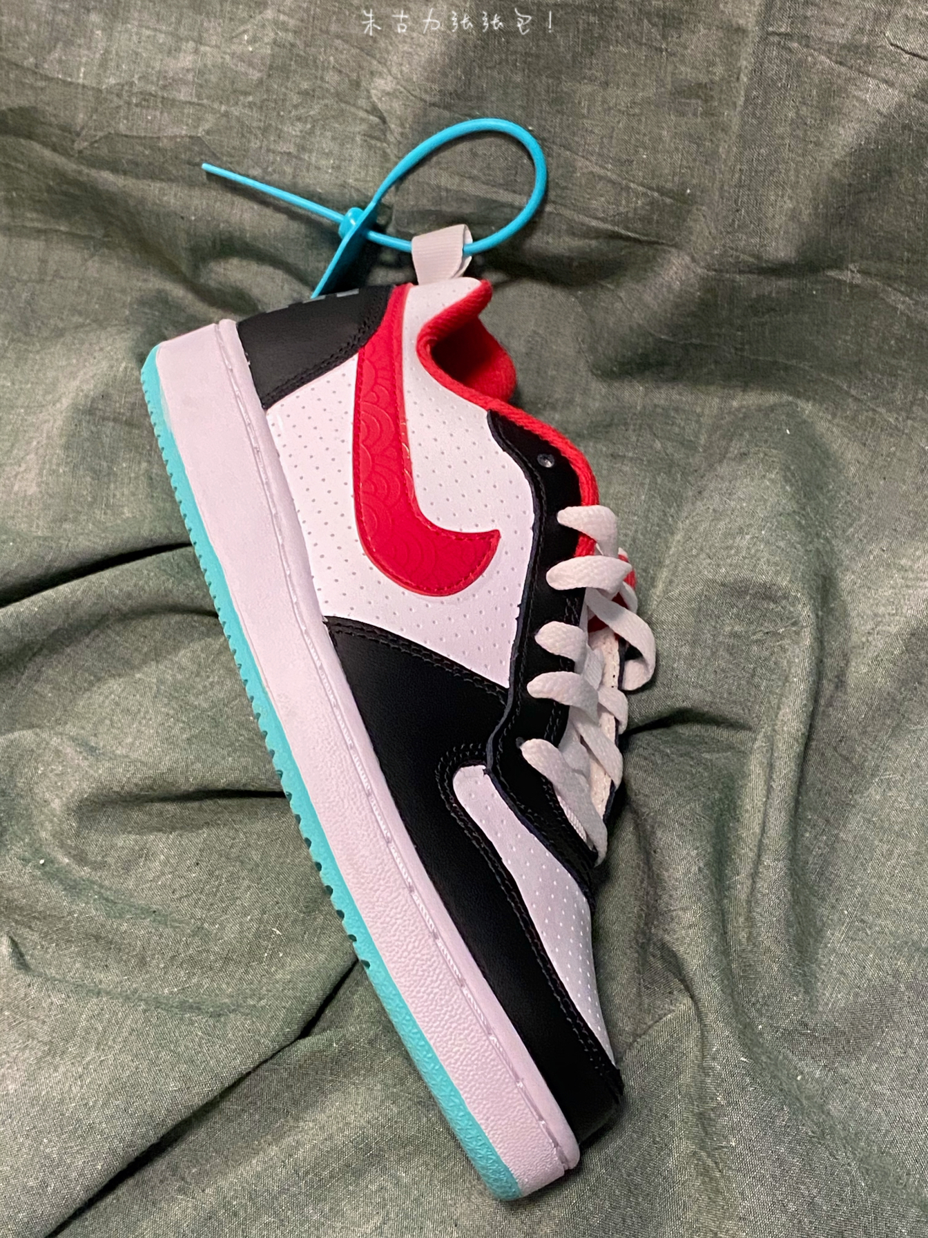 Nike Court Borough Low2 复古休闲板鞋 女款 白黑红 鞋身采用复古红黑为主搭配,鞋框黑色搭配白色鞋面,大红色的Swoosh很亮,鞋舌也带有红色nike标志,后跟带有白色大写Nike标志和鞋提,鞋身多处带有网眼设计,透气性还是不错的,小细节呼应,特别好看,上脚感好可以,码数正常就行,日常搭配什么衣服都很OK的,女孩子的专属百搭好鞋,而且很平价