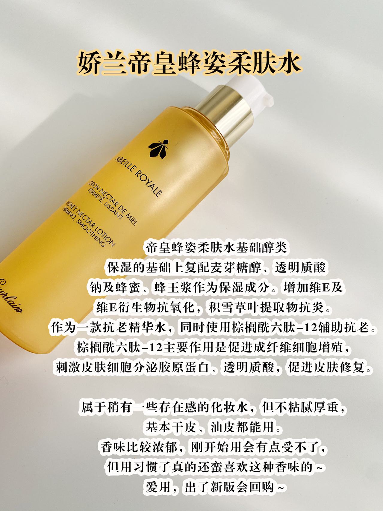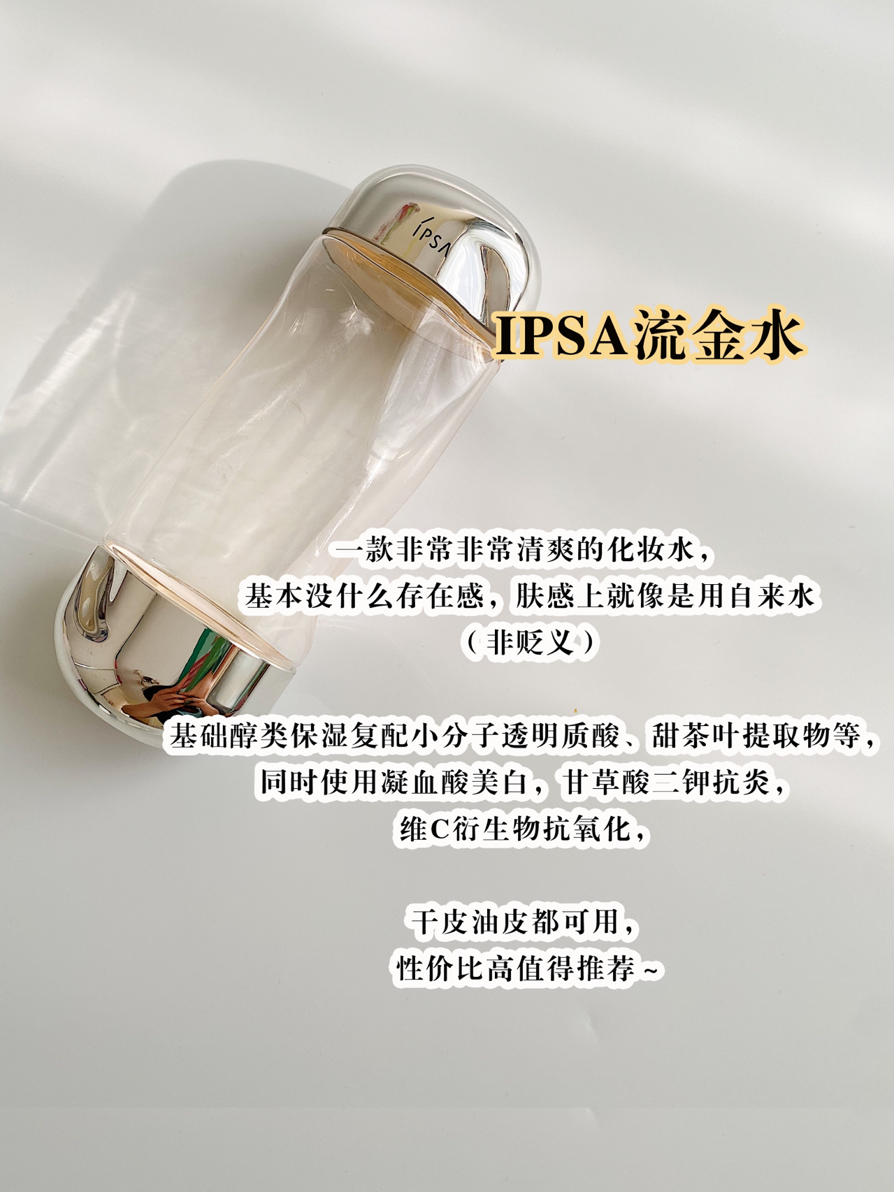 本篇笔记关联了Ipsa/茵芙莎 流金水美肤水精华水 抗痘透亮保湿水油平衡美白祛斑 免税版、娇兰 皇蜂姿蜜润花蜜爽肤水 1瓶、雅诗兰黛 竹粹爽肤水 紧实抗皱 200ml等商品,为用户提供真实的使用体验和购买参考。