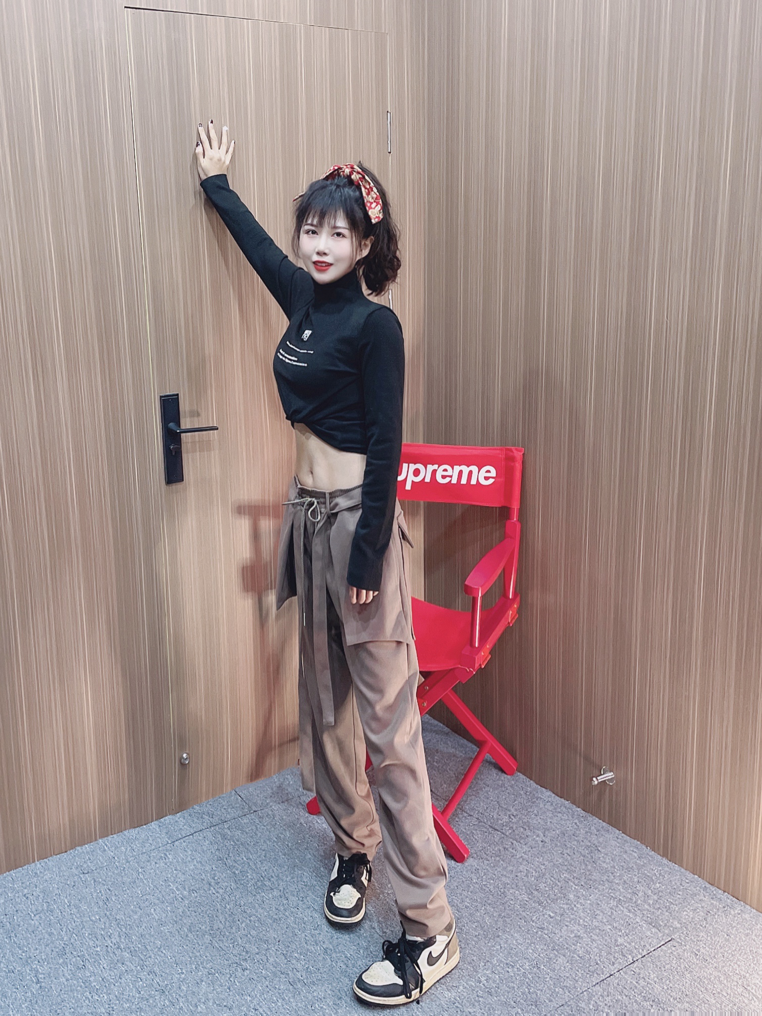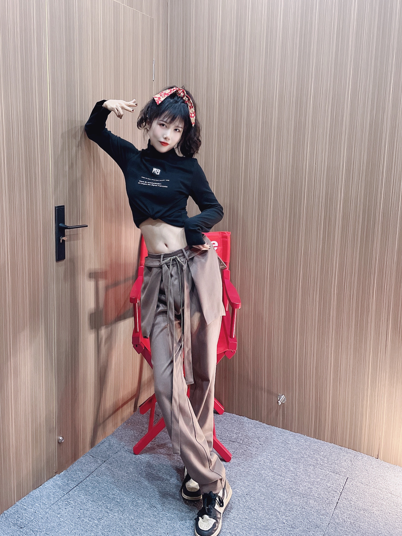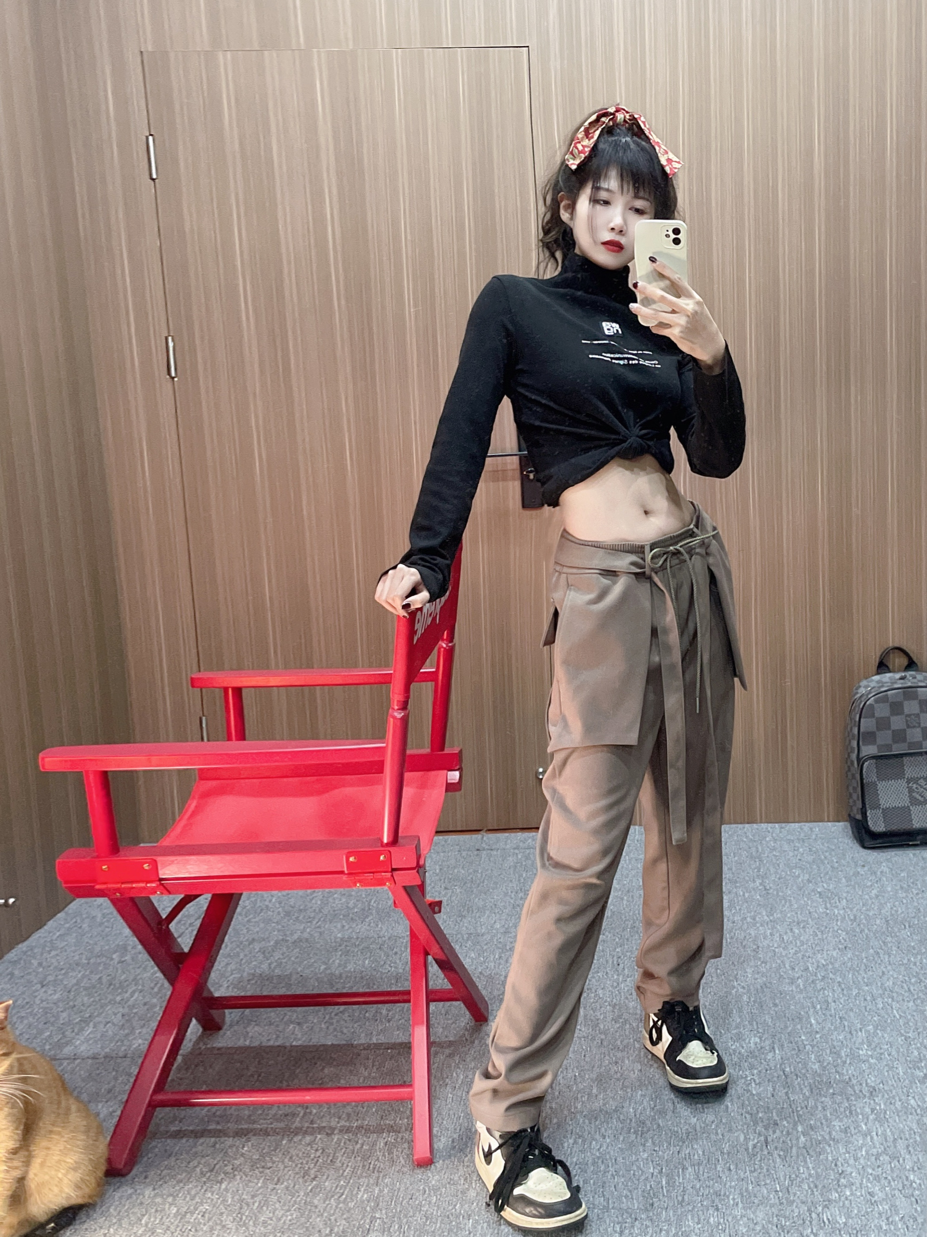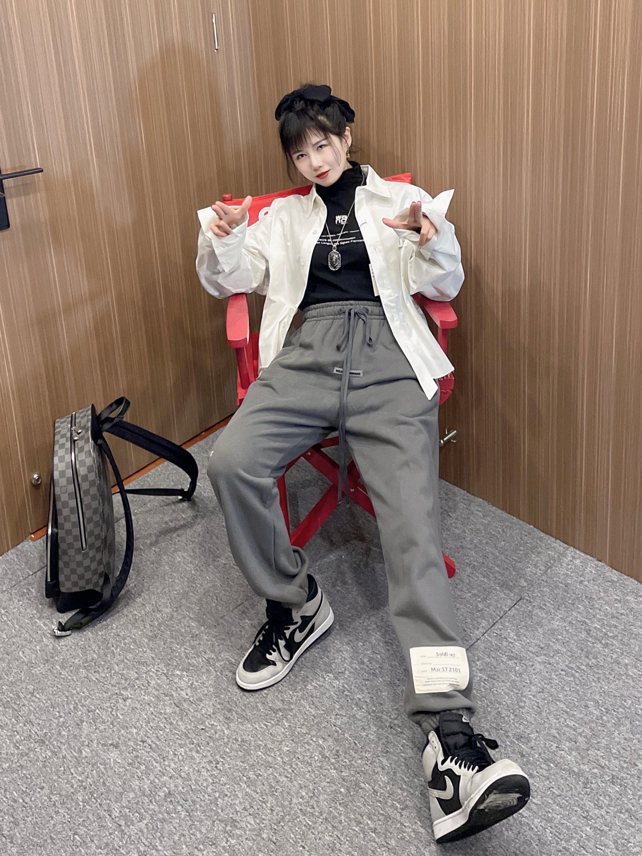 分享今天的穿搭 女生👧上装选择短款会显得你的🦵十分长🤟 黑摩卡搭配的时候和同色系会更好看! !!颜色就很高级! 😼😼😼 今日分享tips: 衣服:alexder wang 裤子:soldixz 鞋:aj1黑摩卡