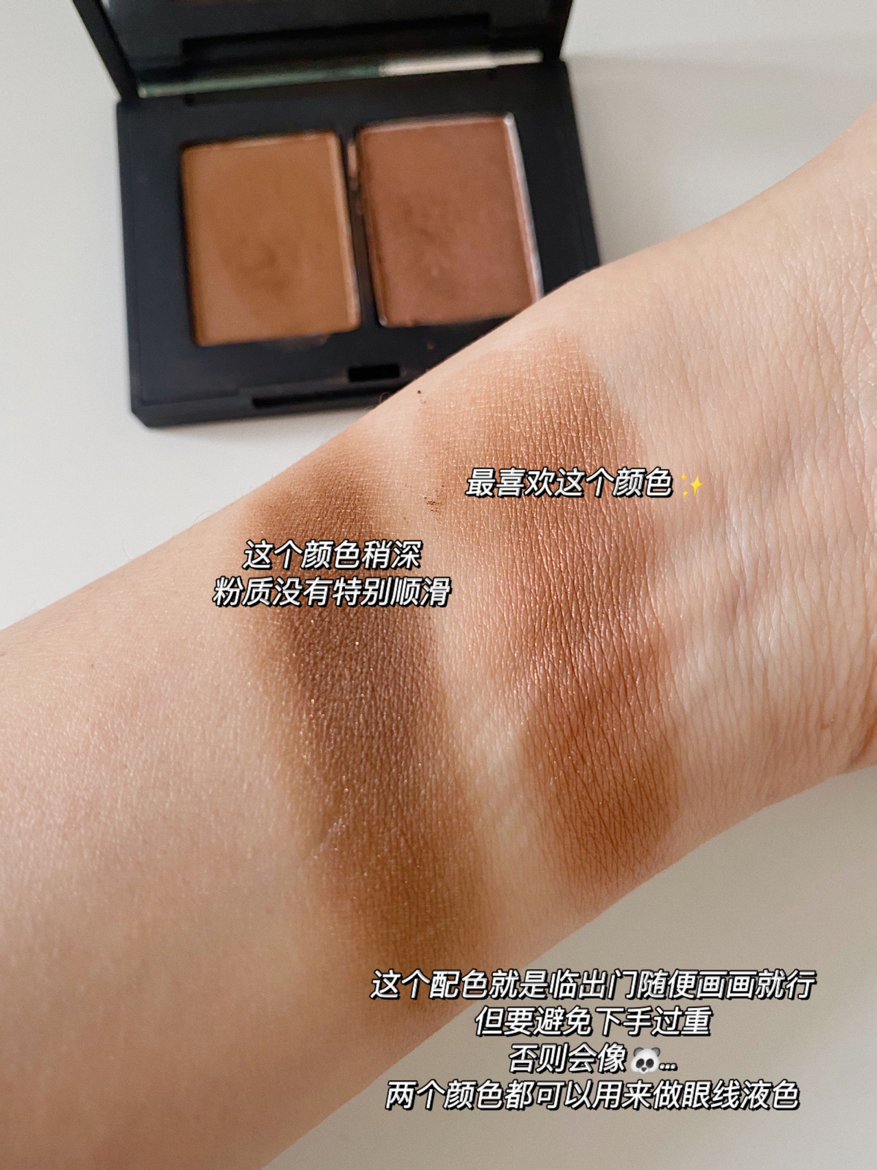 本篇笔记关联了NARS 双色眼影 眼部修饰 2.2g 红棕色 落日赤茶盘Surabaya等商品,为用户提供真实的使用体验和购买参考。