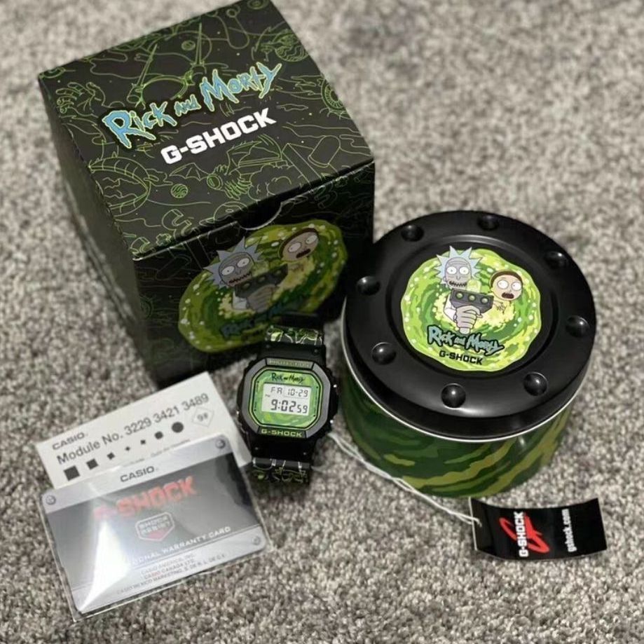 👕推荐单品:【瑞克和莫蒂联名款】Casio/卡西欧 G-SHOCK 霓虹灯图案电致发光亮绿色石英男表 DW5600RM21 🛒推荐理由:作为联名款的手表设计真的没有什么问题,而且包装非常的好看,这样的礼盒包装直接送人也是可以的,如果你家有喜欢动漫的人,那送的这一款手表一定是非常不错的选择 🧍🏻图片来自网络侵删 💰价格参考:1499