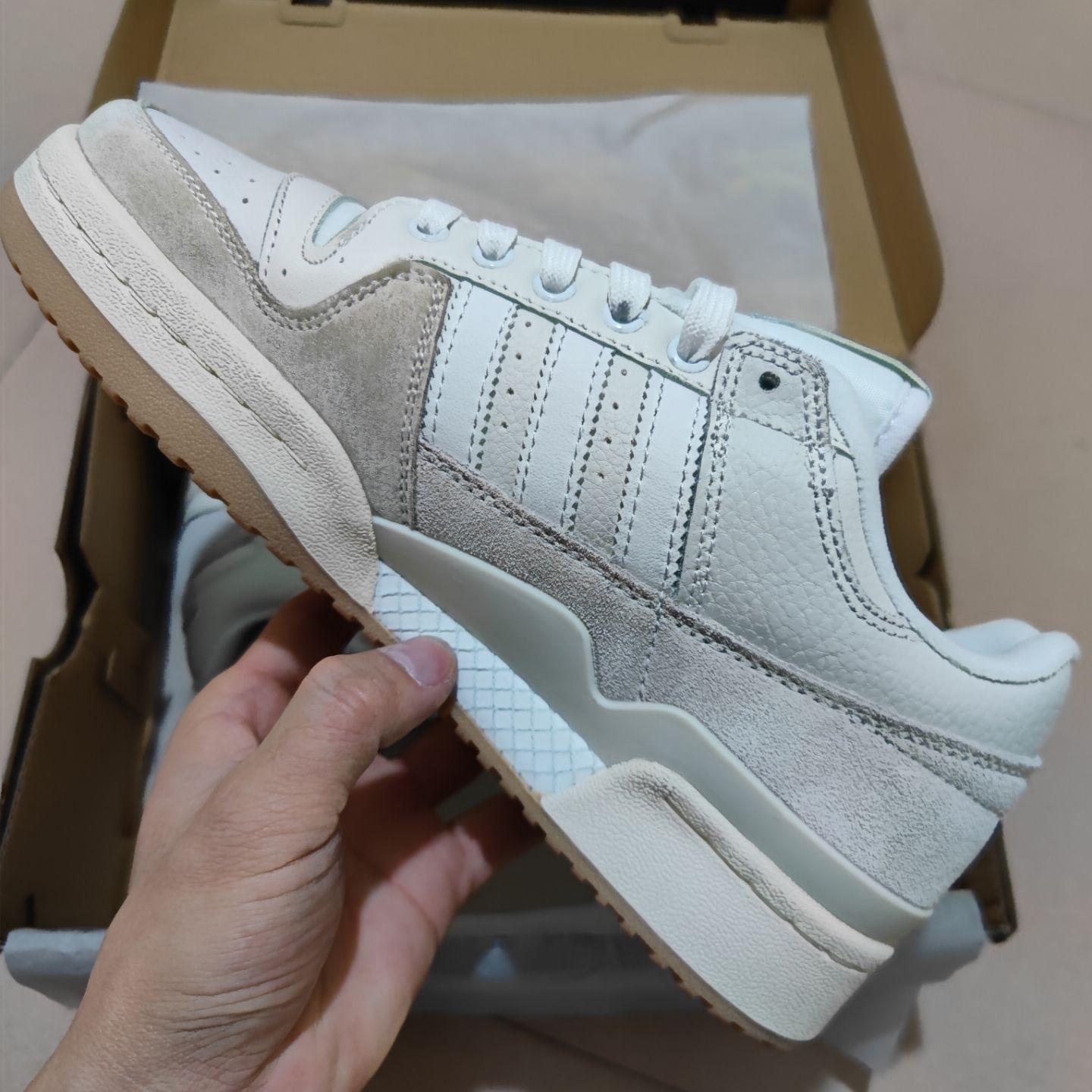 adidas originals Forum 84 Low Adv 复古 潮流板鞋男女同款米白 :这双鞋子鞋身采用了米白色优质荔枝皮,鞋头 采用了灰色翻毛皮,质感真的没得说,鞋身有着经 典三道杠标志,鞋舌、外侧后跟都有着三叶草标 志,鞋身、鞋头都有着出色透气孔 真的太宝藏了这款鞋子,干净百搭,适合秋冬 季节,搭配个情侣鞋简直太完美了