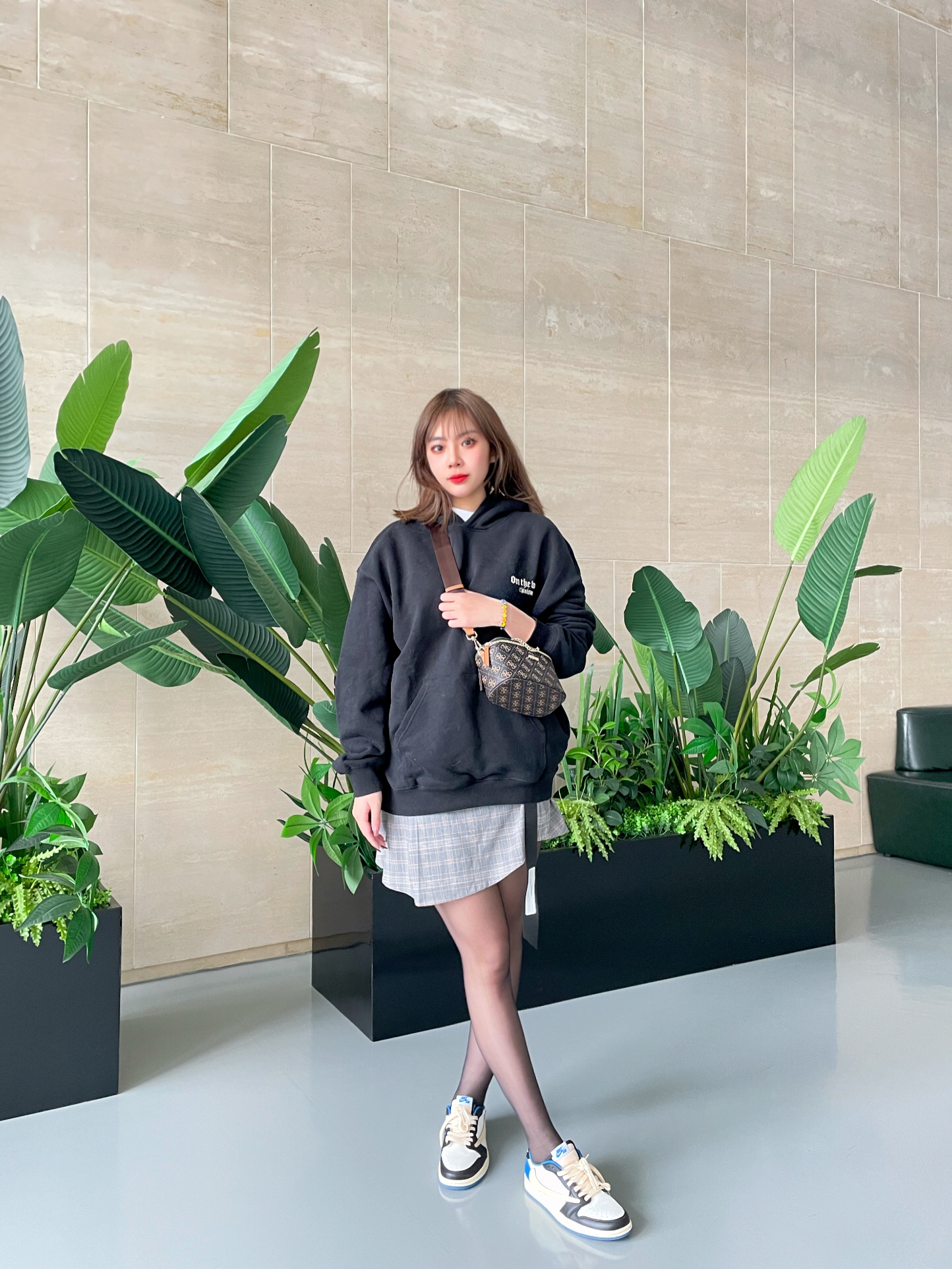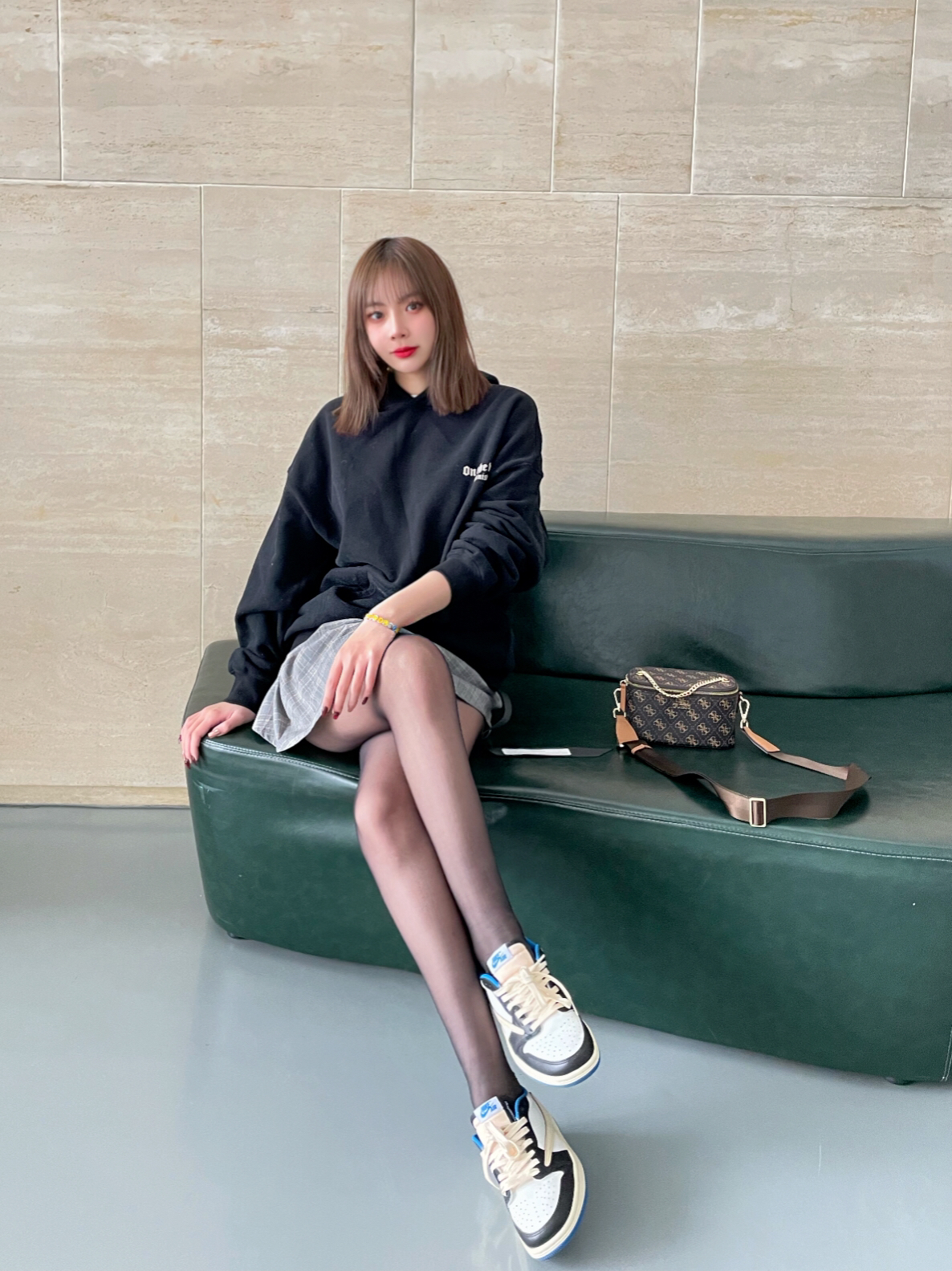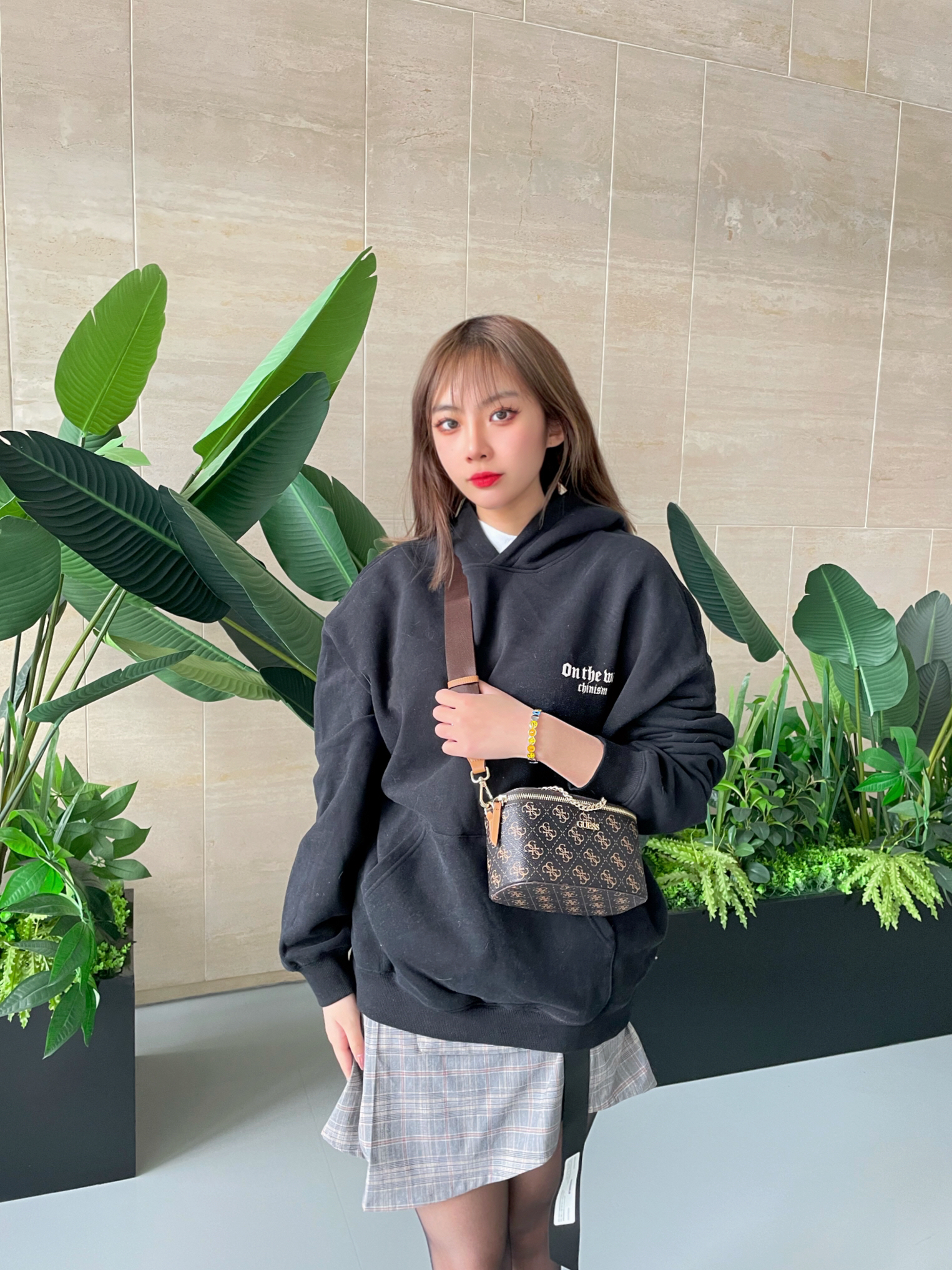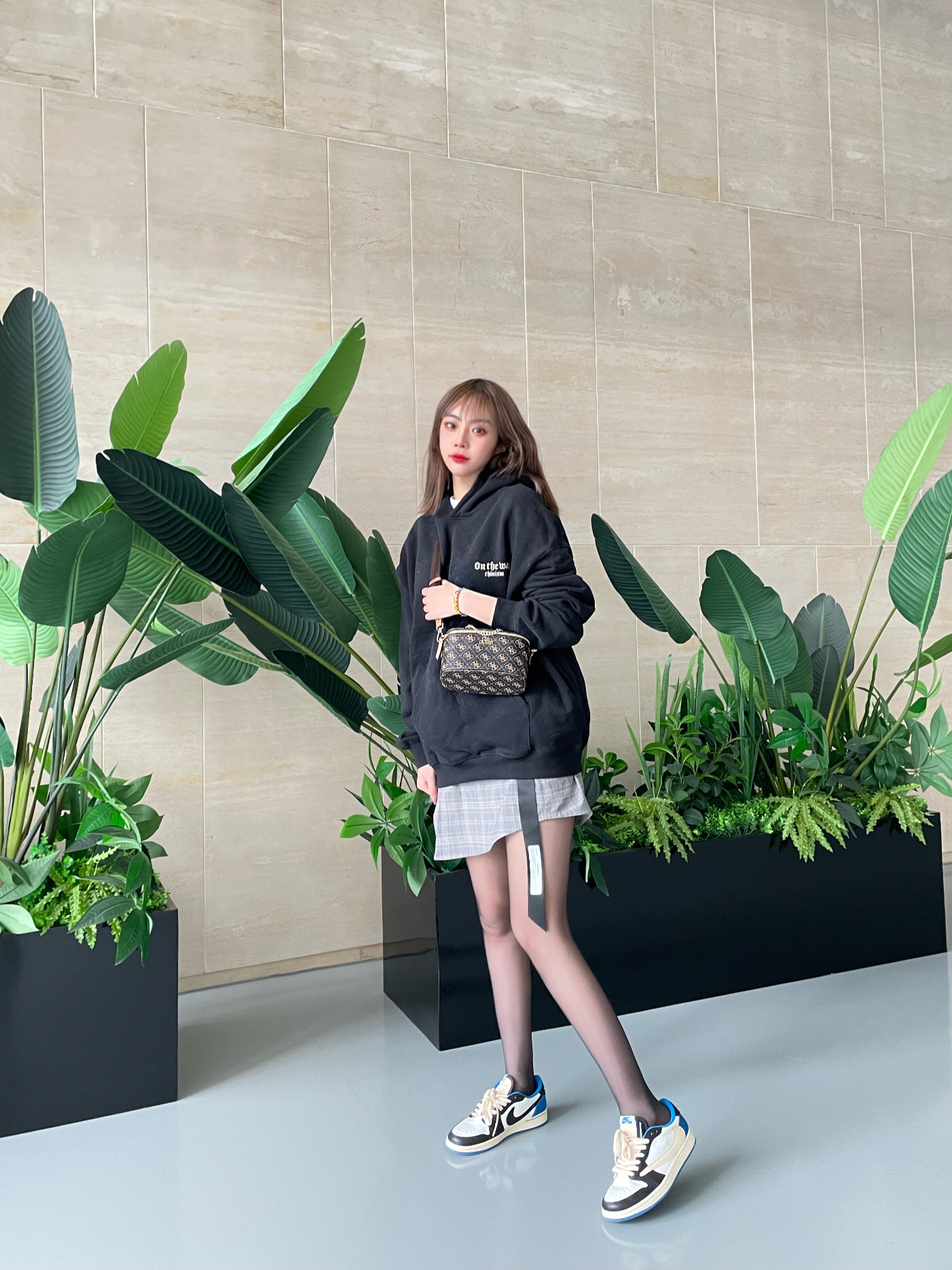 👟:nike 倒钩2.0低帮 👔:CHINISM黑色发泡印花连帽卫衣 🧦:涞觅 👜:Guess全新多功能化妆包 💎:Mover魔吻情绪色彩手镯 ⭐️穿搭 今日穿搭很爱这种连帽卫衣,后背有图案印花,低调好看百搭比较喜欢宽松的款式女孩子穿也非常好看搭配裙子就是甜酷女孩,下身搭配了丝袜和小裙子,丝袜作为日常搭配要选择耐磨耐穿的,涞觅家的丝袜质量就很好不容易勾丝而且款式很多,还搭配了棕色的包包作为点缀,老...