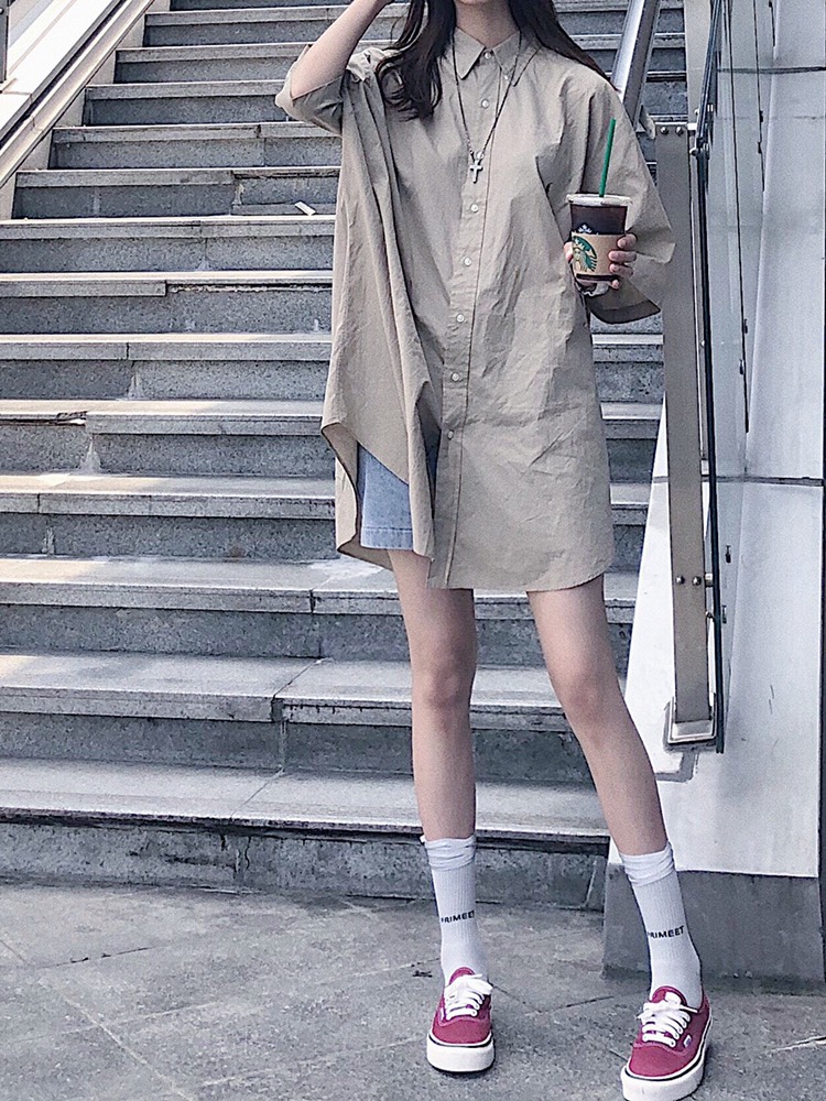 七哥的日常穿搭 这套简直人家水蜜桃 oversize的衬衣版型真的很修身 版型非常重要 料子也别太厚不然真的会被热化掉 这件真的超舒服 想要一种下装小时的感觉所以搭配了一个短裤在里面 然后搭配了一个比较酷的袜子会反光哈哈 整套搭配颜色比较淡 所以选择了一双颜色比较深的鞋子~ 记得点点小心心哦