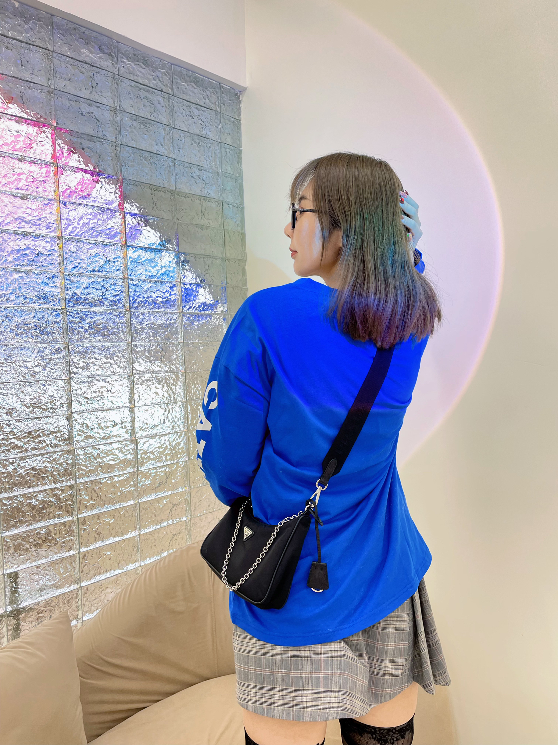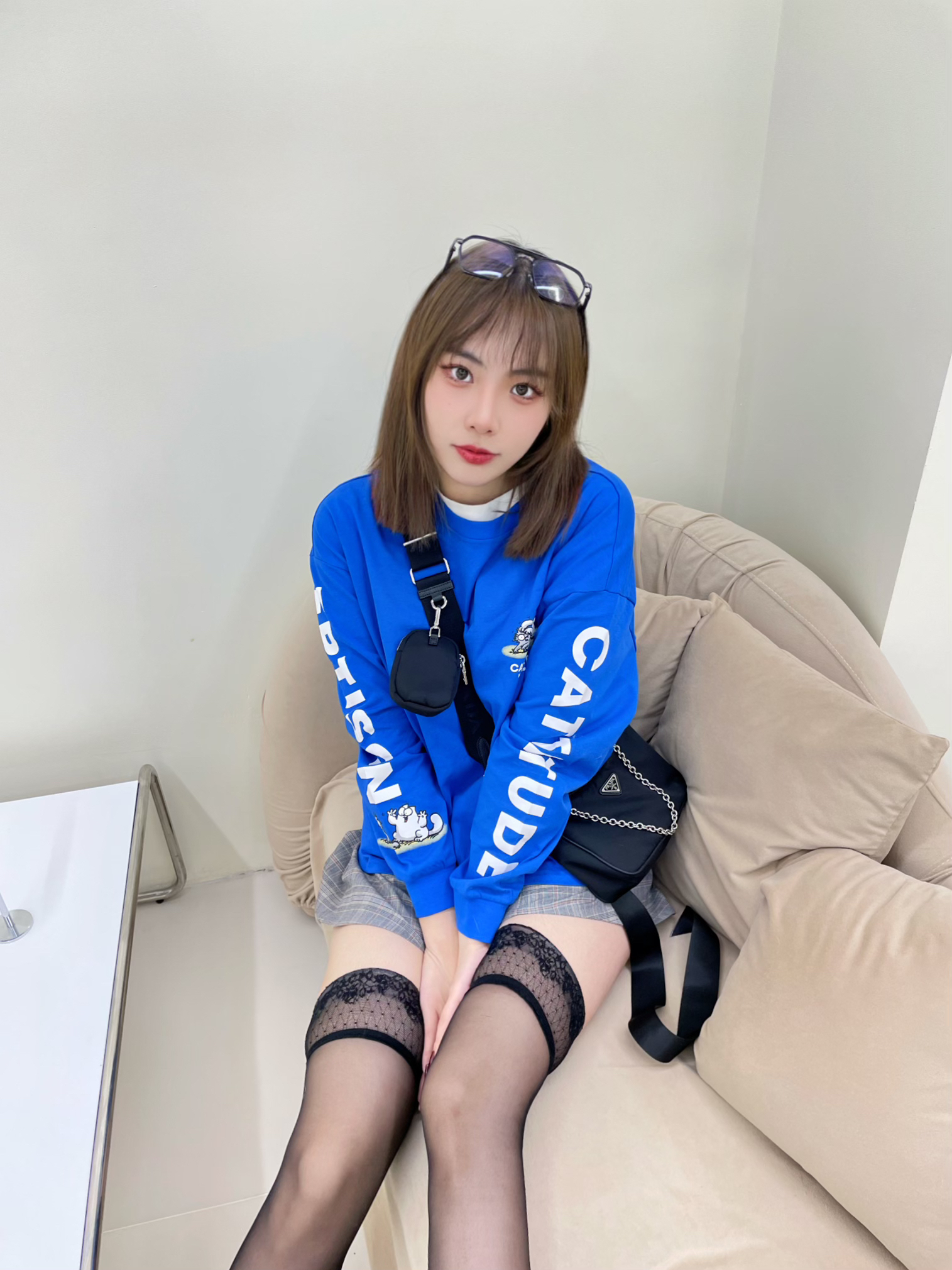 🧦:涞觅 👟:dunk ice 👔:衣品天成 西蒙的猫联名长袖T恤 👓:Welly Mercy 威利默克 👜:Prada 三合一 ⭐️穿搭 今天穿了一件克莱因蓝色的长袖T恤,这个蓝色非常的显白而且是很流行的颜色,我搭配了一个灰色的短裙下面穿了黑色的丝袜和冰雪节dunk,配了个黑色的挎包做点缀整体非常青春活力~ ⭐️配饰 配饰带了Welly Mercy 的光学眼镜,可以当配饰修饰脸型而且可以防蓝光...