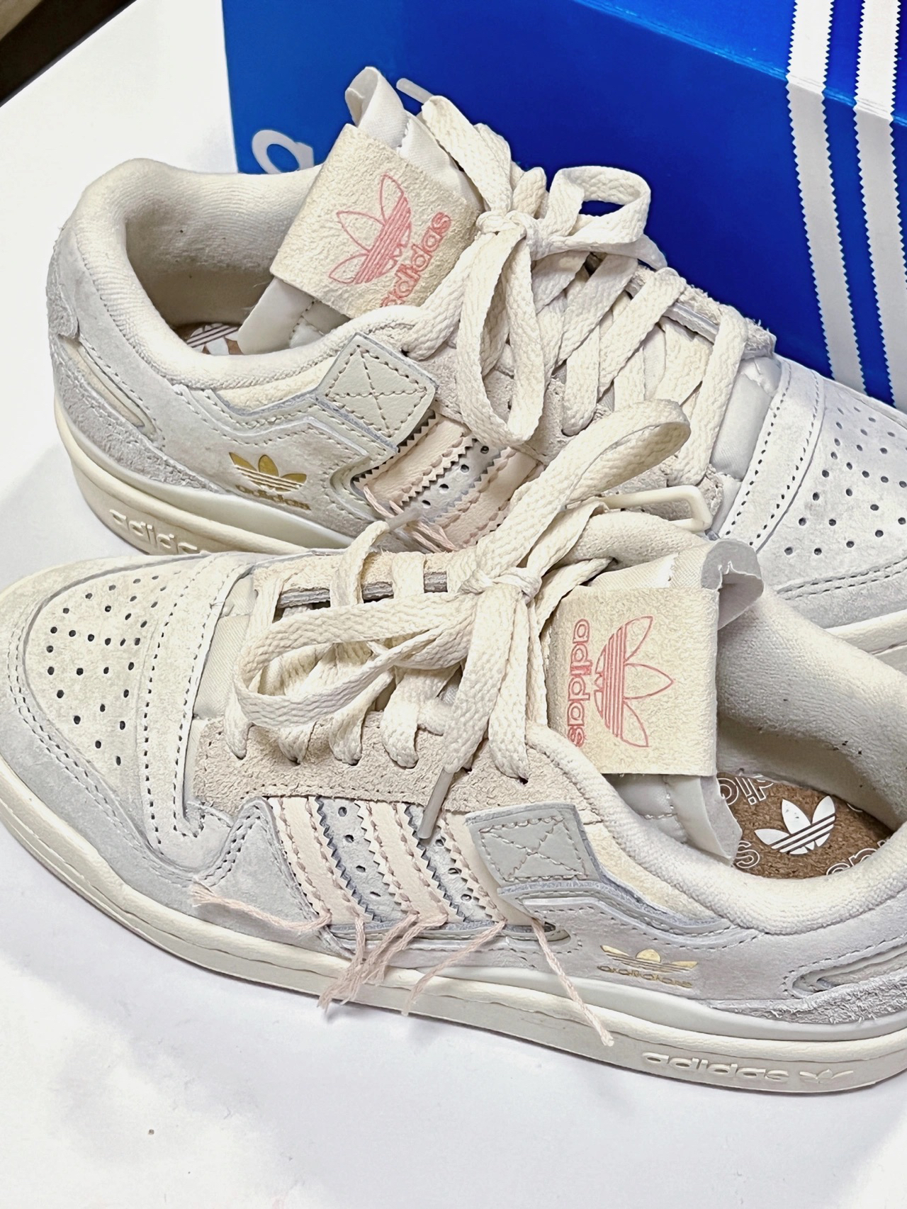 本篇笔记关联了adidas Originals Forum 板鞋 轻便复古防滑时尚魔术贴篮球风 线头/米色/米白等商品,为用户提供真实的使用体验和购买参考。