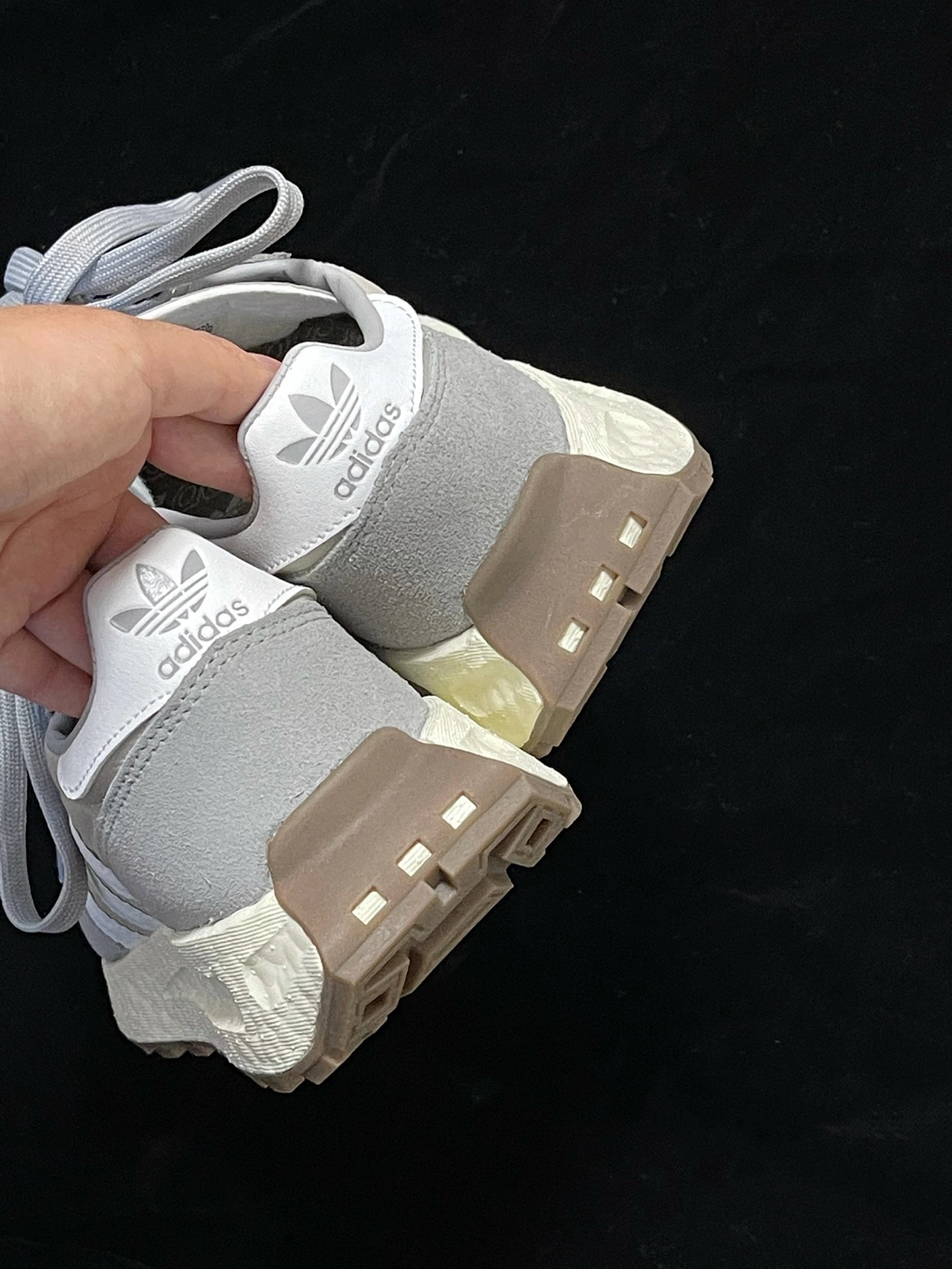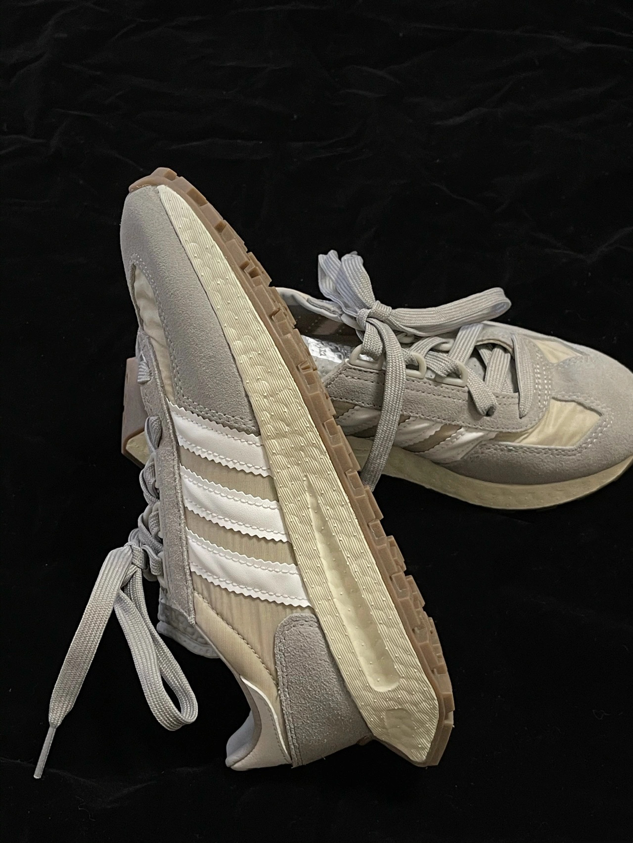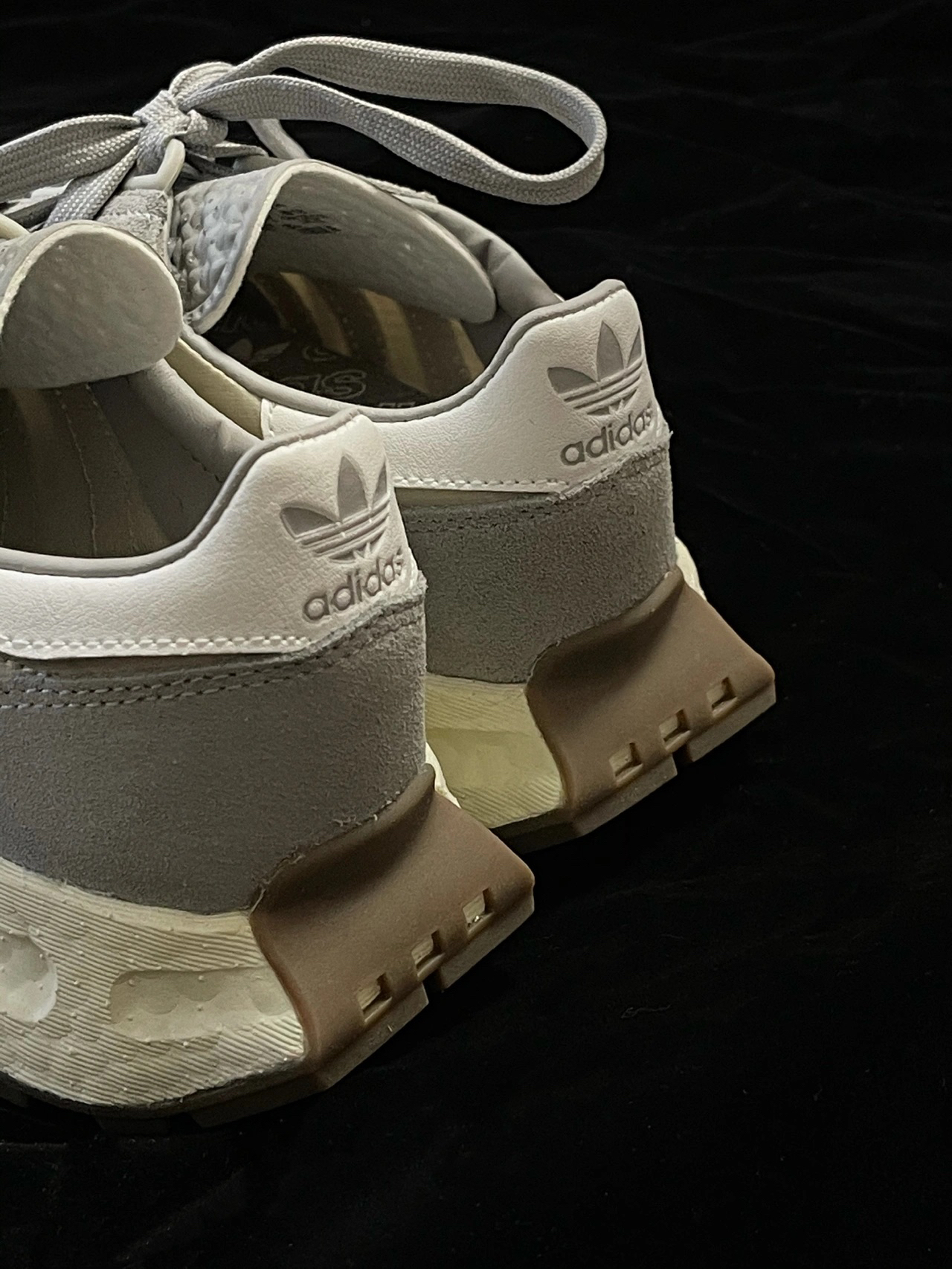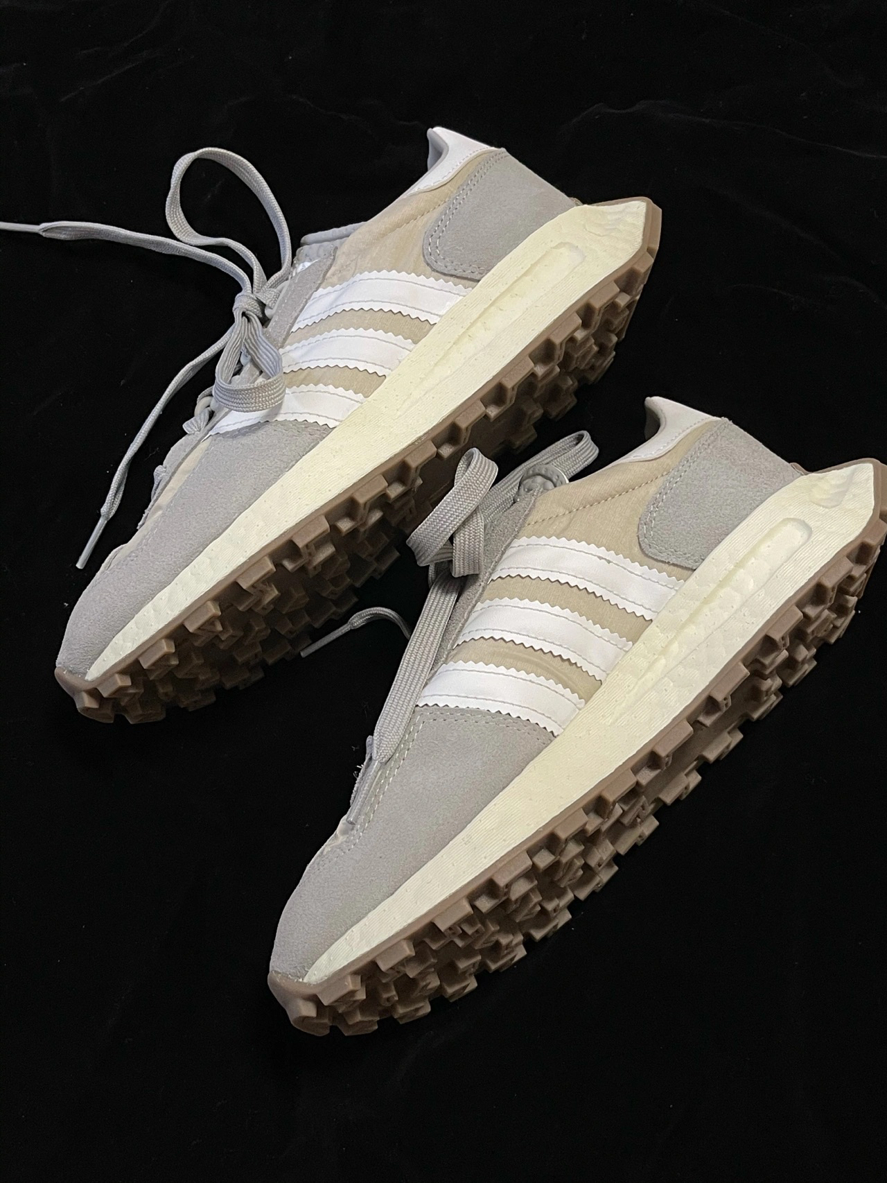 灰调奶油🔘Retropy E5 复古球鞋 收到了还未发售的Adidas Originals Retropy Boost E5 阿迪达斯新款复古鞋👟 vintage鞋型❤️了! 鞋底是奶油色,鞋面是麂皮和尼龙的混合, 灰调的配色也很百搭! @潮流薯