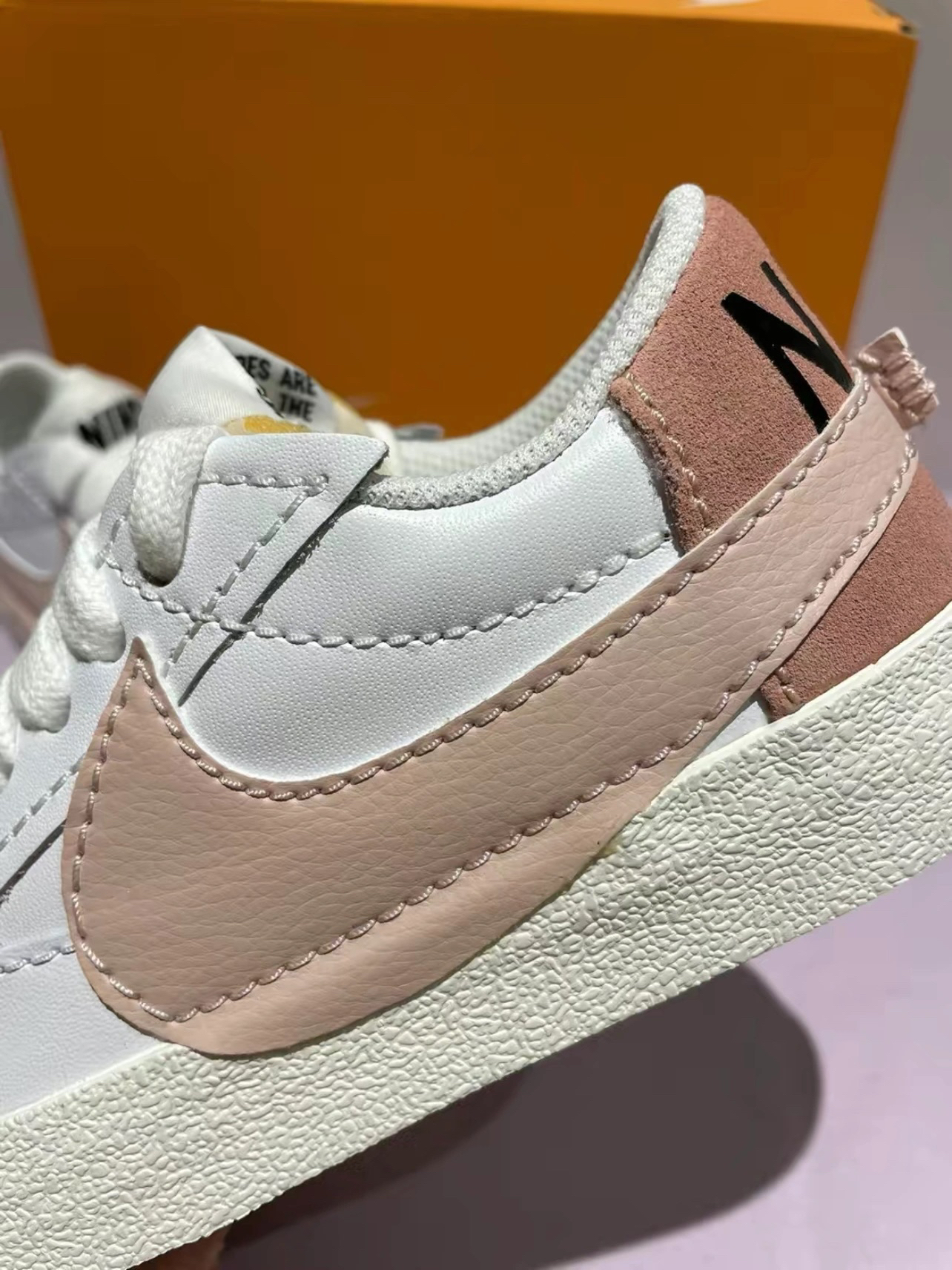 Nike Blazer 人气鞋款超级百搭|||👟Nike Blazer Low Jumbo复古休闲板鞋,白粉色 此款采用白色优质皮革搭配鞋头柔软翻毛皮装饰,巧搭耐克粉色大勾设计、宽大鞋带与加粗缝线。增添醒目外观,加垫低帮鞋口,舒适灵活,橡胶外底融入人宇形底纹,彰显经典外观,同时铸就非凡抓地力,焕新演绎街头人气鞋款 Nike Blazer Low•77Jumbo白粉色,采用缝制皮革覆面搭配鞋头柔软翻...