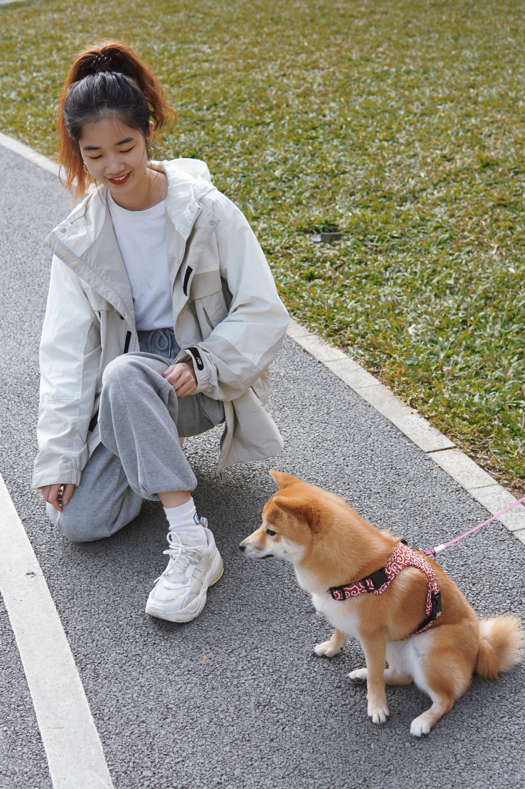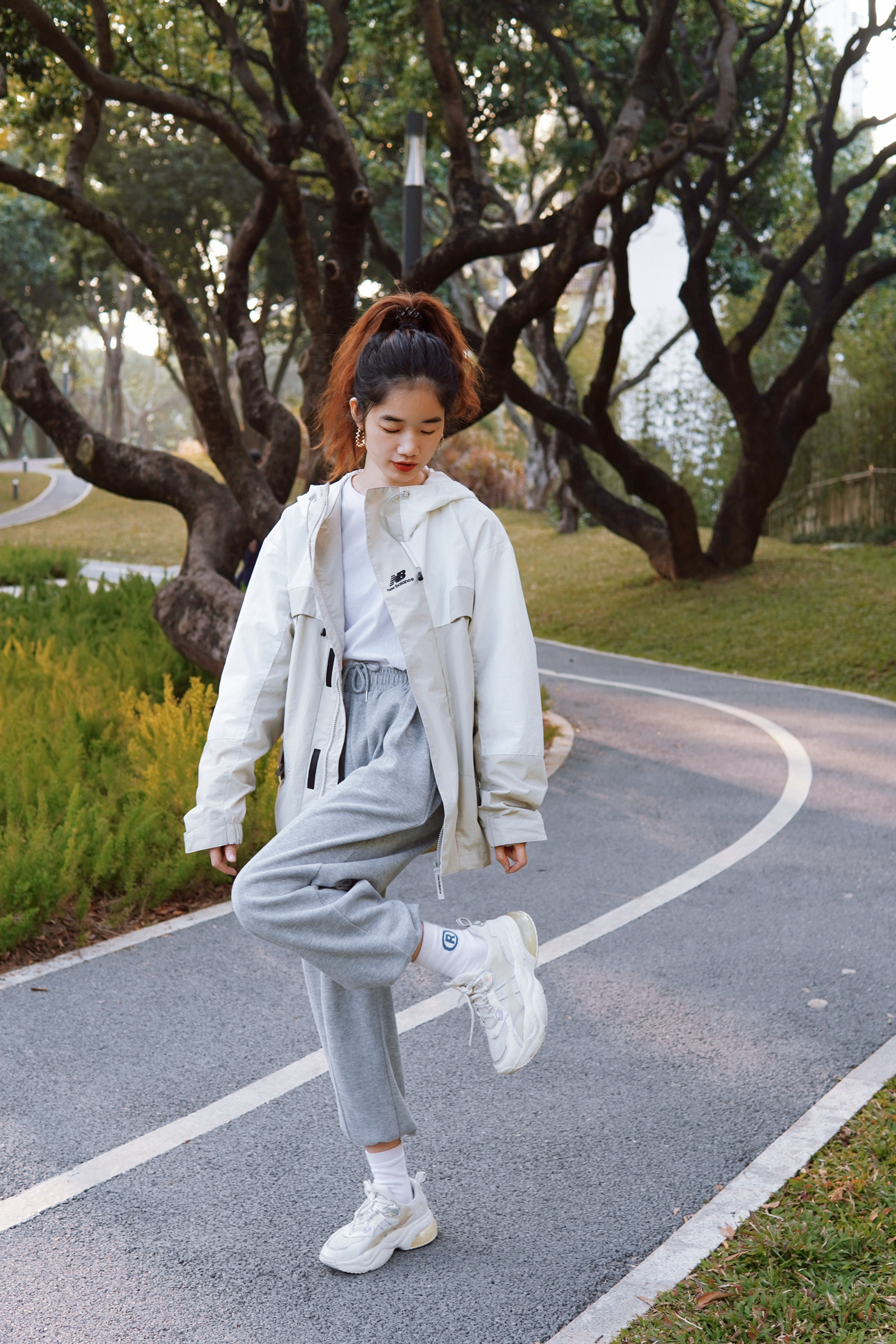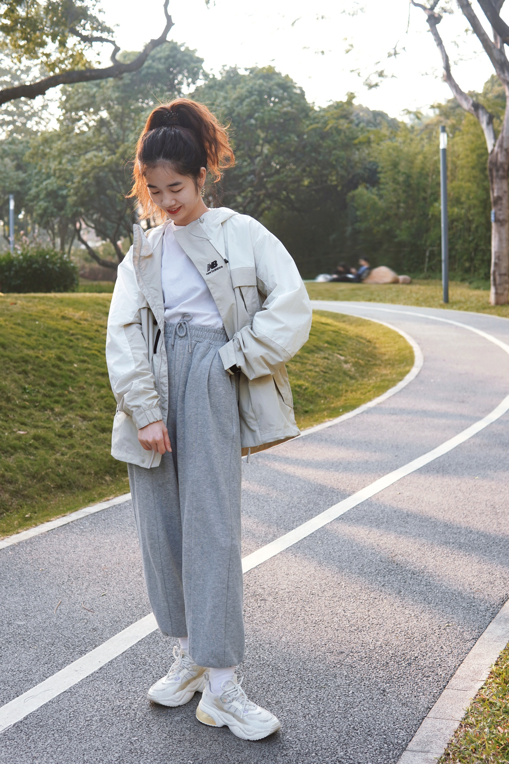 三月春暖花开 今天不做宅家女孩👧🏻 今天是热爱户外的运动山系女孩 周末和好姐妹去户外跑步🏃🏻散步🚶🏻 运动 呼吸新鲜空气,出汗的感觉很好! 还遇到了可爱的憨憨狗狗 好治愈哦! 今天也穿的比较运动休闲! OOTD 外套:New balance 梭织莫兰迪银白色外套,连帽设计,面料舒适透气,很适合露营🏕️,爬山,运动时穿哦!男女同款,情侣💏可以安排起来啦!