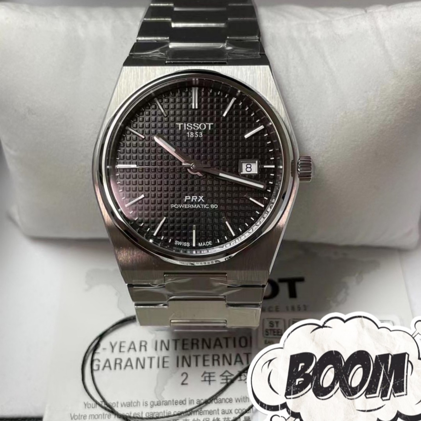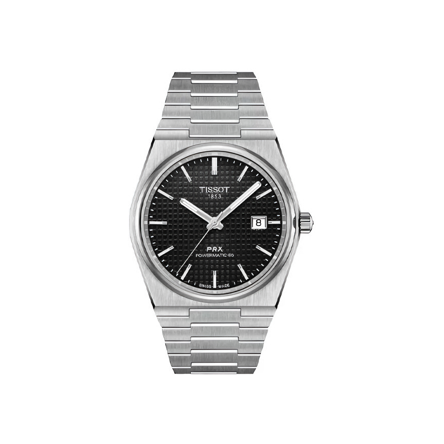 PRX系列机械男表男士值得拥有 #T1374071104100干净简约黑色立体格纹表盘与银色条形刻度的融合搭配,灰色精钢表带,为你呈现新浪潮时尚腕表力 100米防水a心蓝宝石镜面中80小时动力储存支援日常所需网 图片来自网络