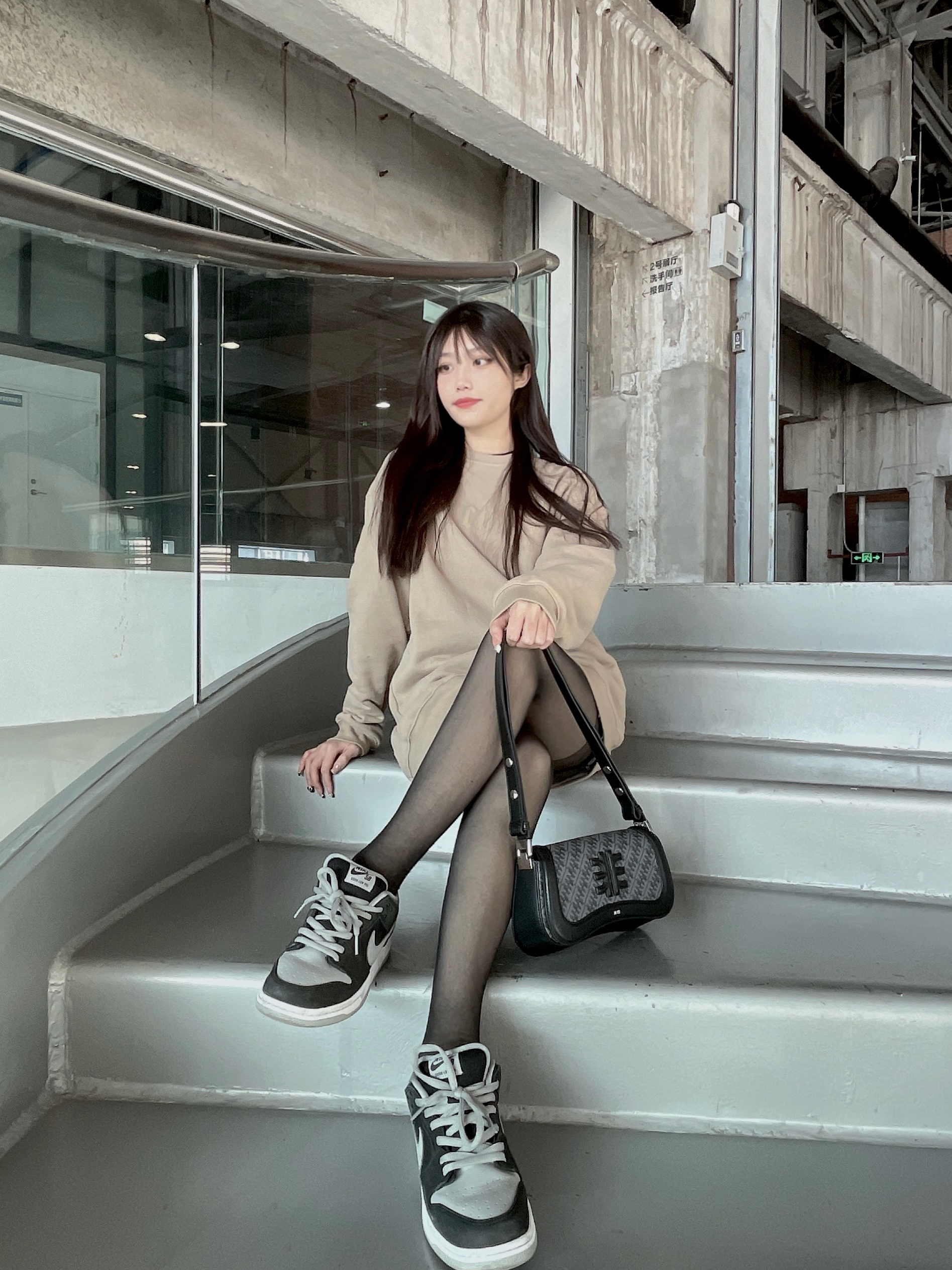 春季出街如何穿出纯欲风? 让我来给你一些灵感 杏色宽松卫衣搭配短牛仔裤下身消失穿法显腿长 黑丝的搭配给纯欲感加分包包的修饰也很重要 黑色老花腋下包不撞款有质感 和鞋子颜色相呼应与一身 搭融合的很好 凸显女性优雅气质尽显纯欲感