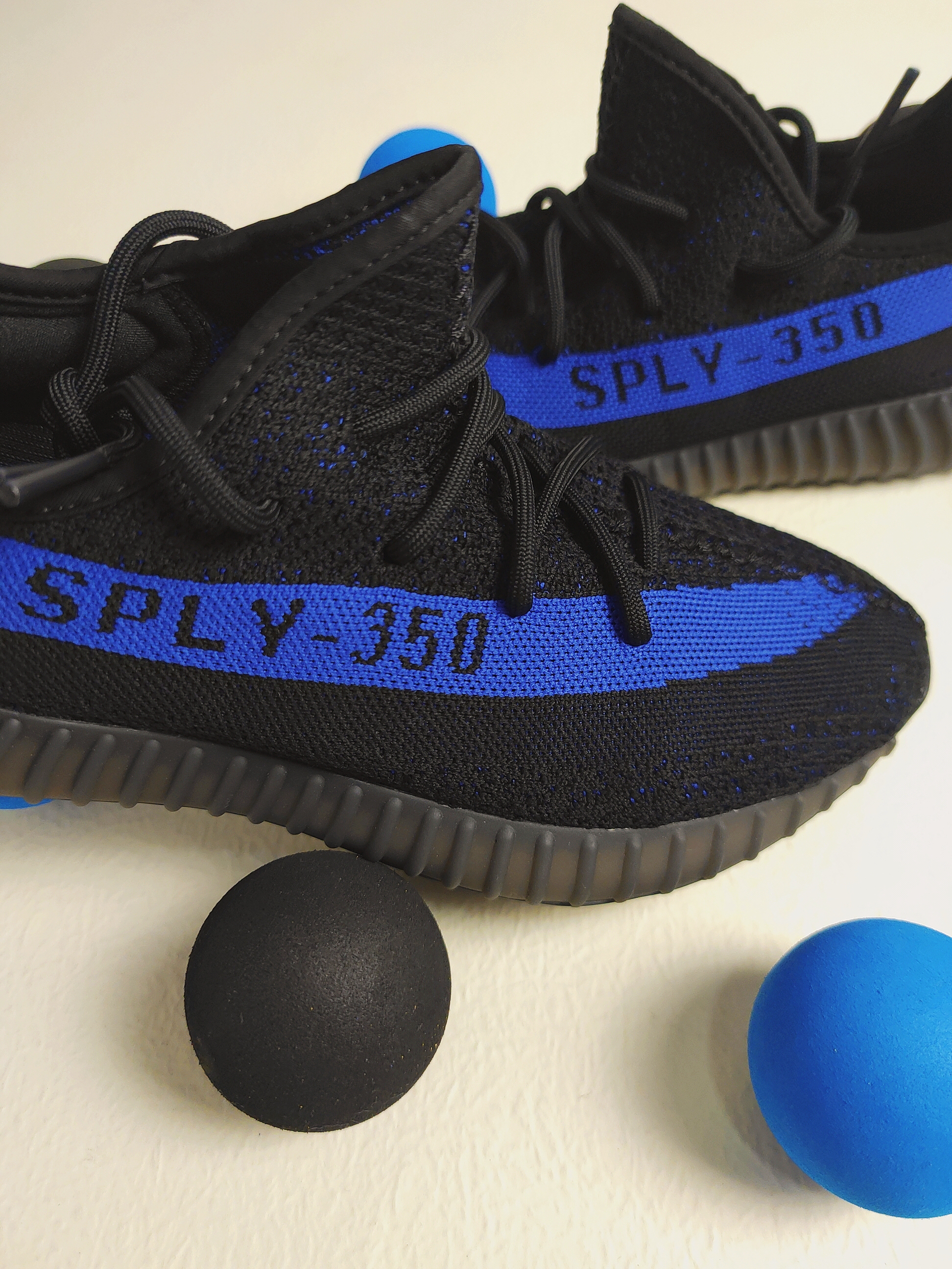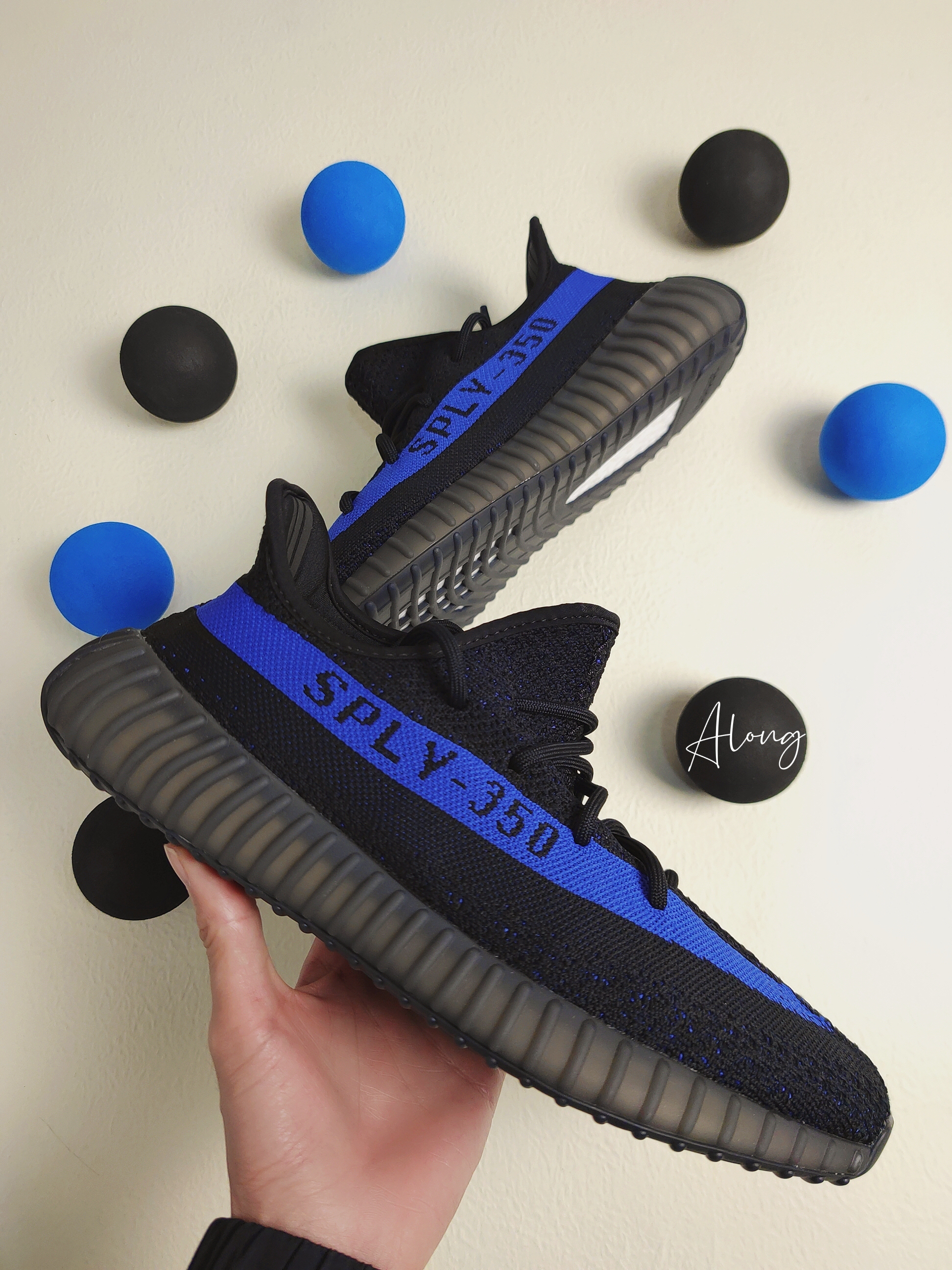 👟name adidas originals Yeezy boost 350 V2 "Dazzling Blue" 黑蓝 男女同款 👟look&design 采用的是最近潮流圈非常受欢迎的蓝色油漆条设计,个人觉得和侃爷的椰子Gap蓝色卫衣会很搭。依旧是经典的OG鞋型,个人其实也更喜欢这个鞋型,尾部没有了织带提环,整双鞋子显得利落简约,也更有整体感。 👟wear boost大底的加持,踩屎感依旧...