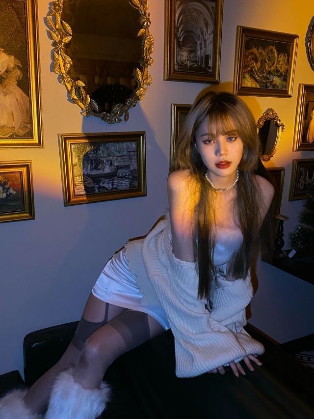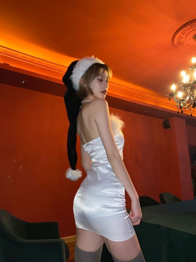 看腻了红色圣诞 白色毛毛裙配黑白圣诞帽🤶也超有感觉 灰色吊带袜出镜蛮高 这家能拍的景超级多 场地也大 人不多 地址:for love bar