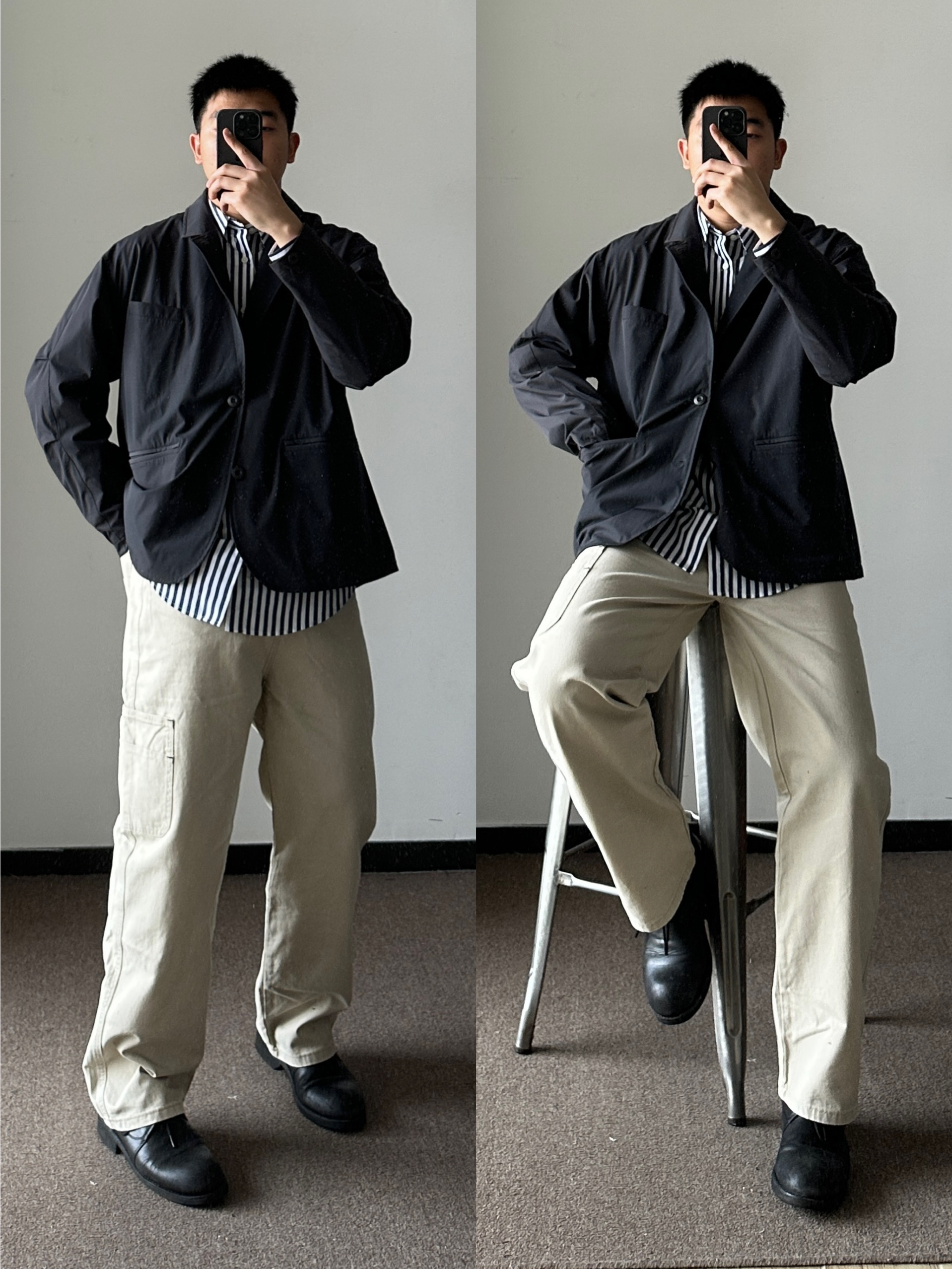 大头Eason穿搭合辑 身高180 体重180 LOOK1 👔 藏青色连帽夹克 💼 COACH Track 27 经典老花拉链斜挎邮差包 👖 优衣库 军绿工装窄口九分裤 👟 NB992元祖灰 LOOK2 👔 PRIMEWARE 户外机能细节设计宽松版型条纹衬衫 👖 RADIUM 日系双褶牛仔裤 👟 Converse One Star 黑色麂皮 LOOK3 👔 LR MADE20AW 日系简约...
