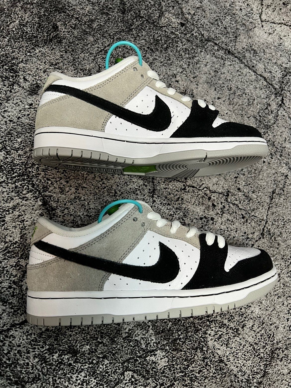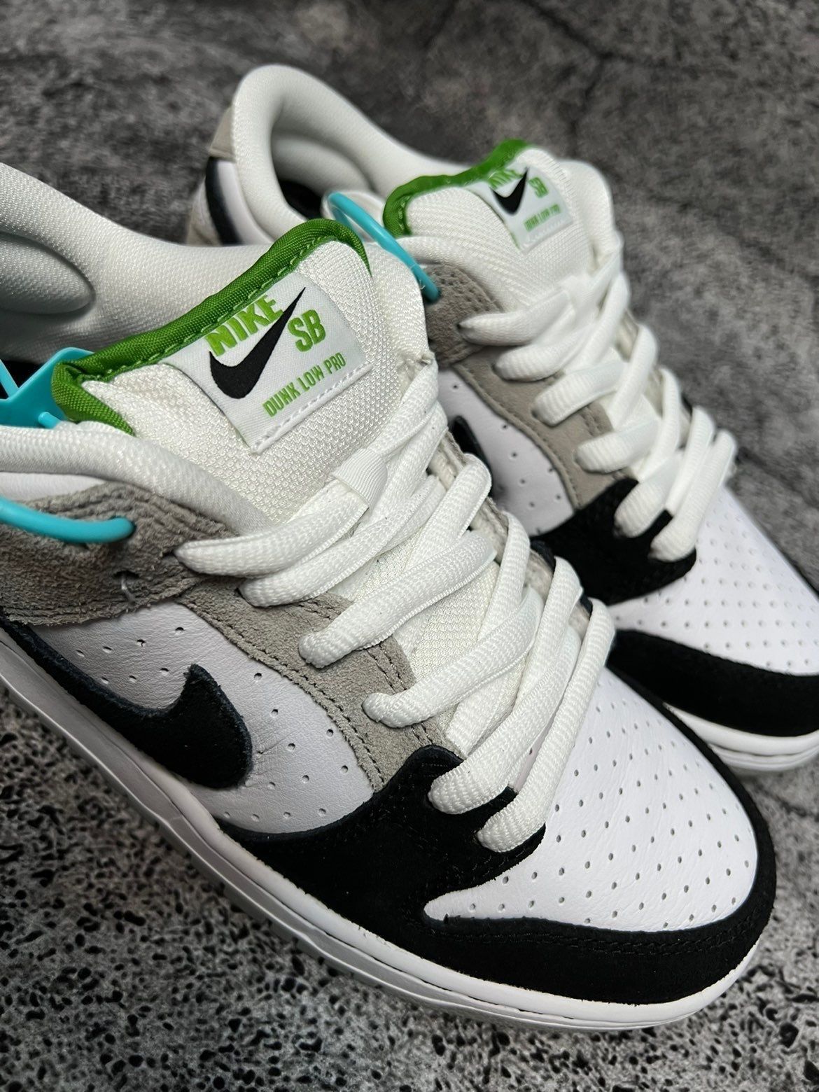 SB Dunk Low 灰白黑 叶绿素 Nike SB Dunk Low Pro "Chlorophy”复古休闲板鞋 灰白黑 叶绿素 男女同款 此款 SB Dunk Low 鞋面整体采用黑白灰三色相结台,黑色和灰色麂皮覆面及利落的白色中底,鞋身采用打孔设计旨在呼应 Air Trainer 1 的鞋面;此外还搭载了 zoom 气垫同时结合加衬鞋舌,塑就专为滑板运动设计的舒适脚感。 @得物App @...
