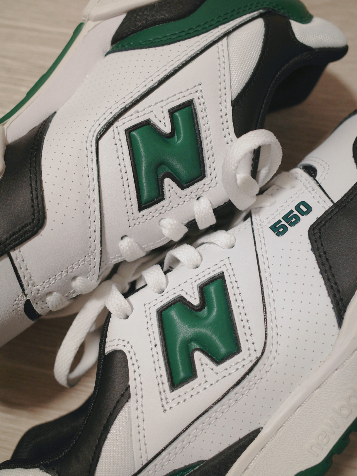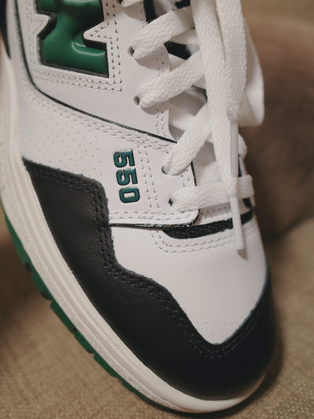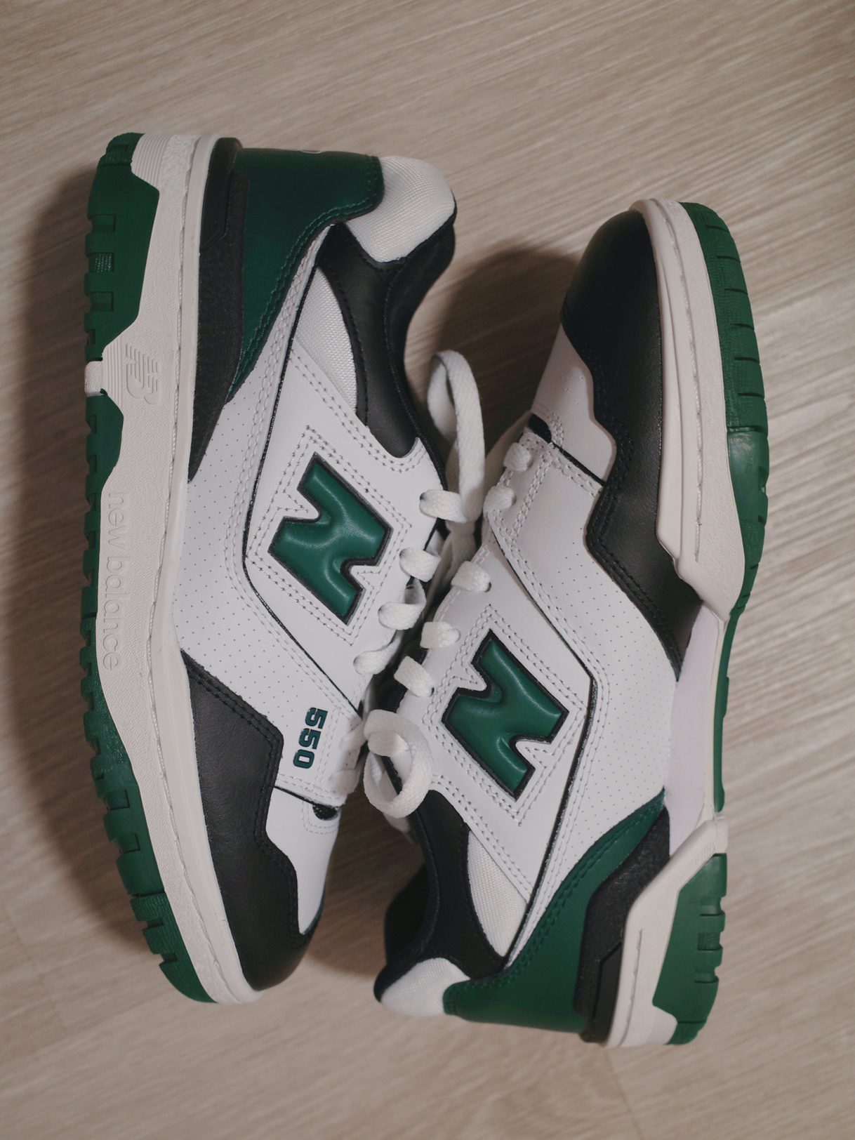 这双New Balance 550我在ins上看到很多时尚博主有穿,立刻被种草了🌿 NB的鞋不用多说,浓浓的复古运动风,这个鞋款全系配色都好看,我选择的是黑白绿的配色,个人比较喜欢墨绿色,观感上也比较清新,耐看👍 皮革表面挺有质感的,鞋底感觉有些硬,可能因为是我还没怎么穿,后面穿了,拍一些穿搭图,再说说感受 我线下原价买的,能买到尺码还算幸运,店员说各种码到店基本很快就断货了,货也不多,网上...