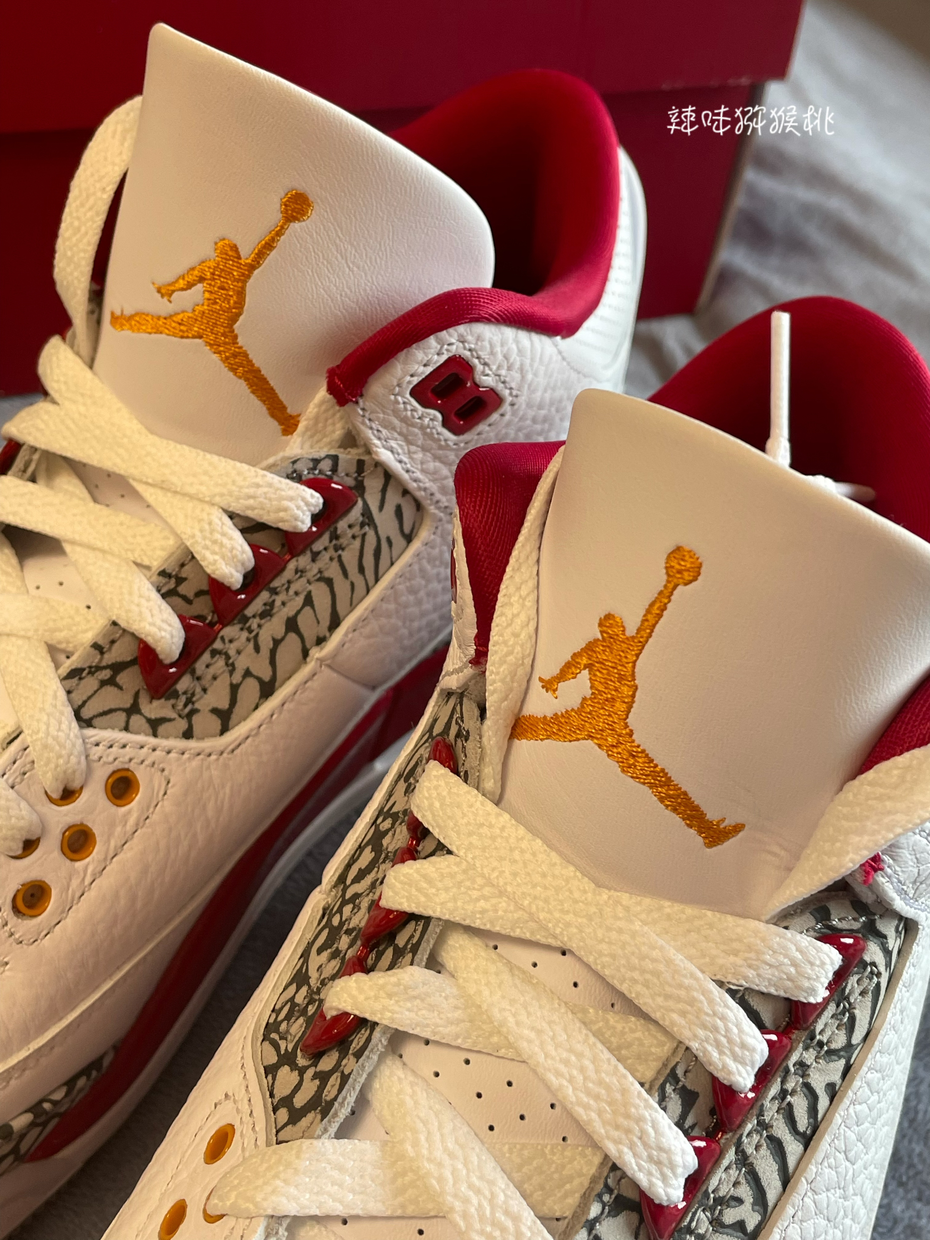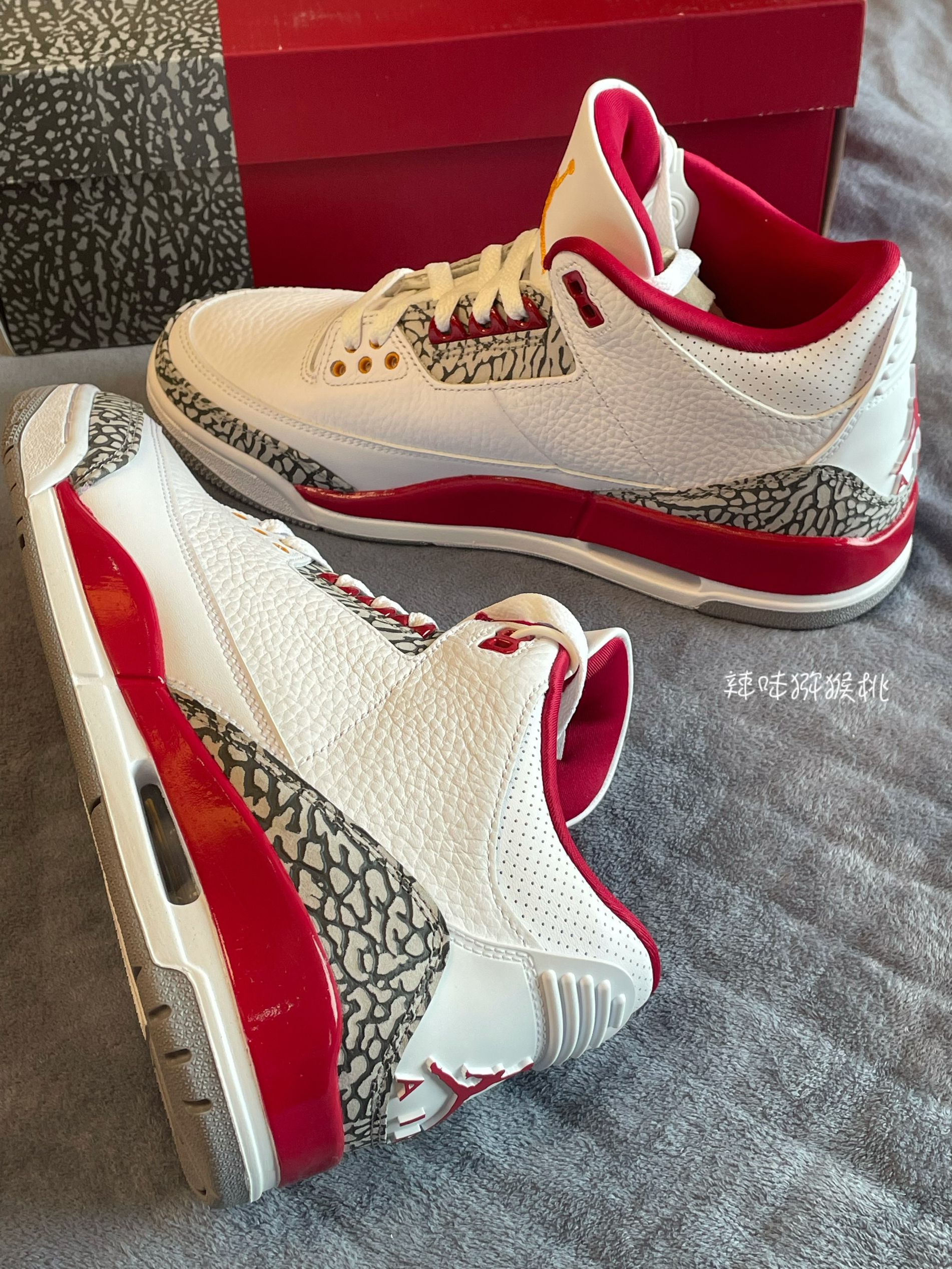 👟:Air Jordan3 Retro "Cardinal Red" 复古篮球鞋 白酒红 红雀 这双鞋子质感方面相当丰富,鞋子采用了多种材质拼接打造,质感丰富细腻。鞋子外观配色采用白色、红色等颜色进行打造,从鞋子外观视觉方面来说,很洋气,配色很好看! 鞋子鞋舌处黄色飞人Logo相当具有辨识度。值得一提的是,鞋子鞋头包围处爆裂纹设计,真的爱了! 鞋子大底采用耐磨大底,相当耐穿! 总体来说,鞋子上脚...