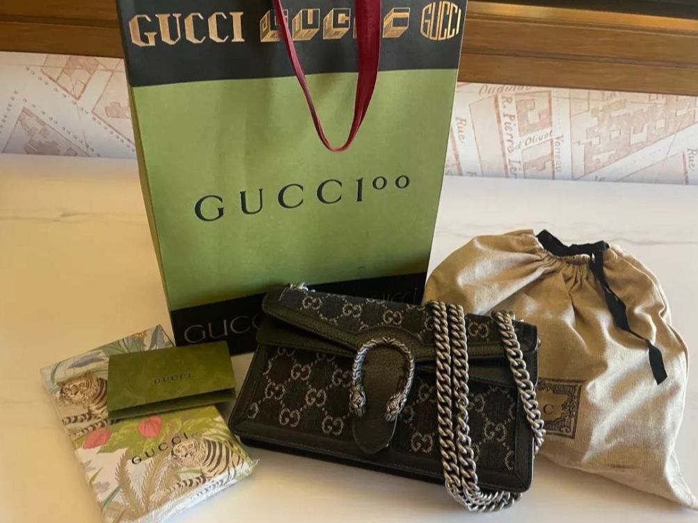 Gucci Dionysus系列这个包真的美,U型包扣很夺目。扣上是两个小虎头🐯不是小蛇头。 包包小小的还挺能装,就是链条有点太长太重了,南方妹子伤不起感觉的170以上或者冬天穿羽绒才能刚好吧🤔🤔链条又长又重所以导致包包自重也非常重,果然美丽是要付出代价的宴会必备款了😂😂 其他没毛病,皮质很耐操的样子,金属部分也不容易氧化👍👍 图源网络侵删