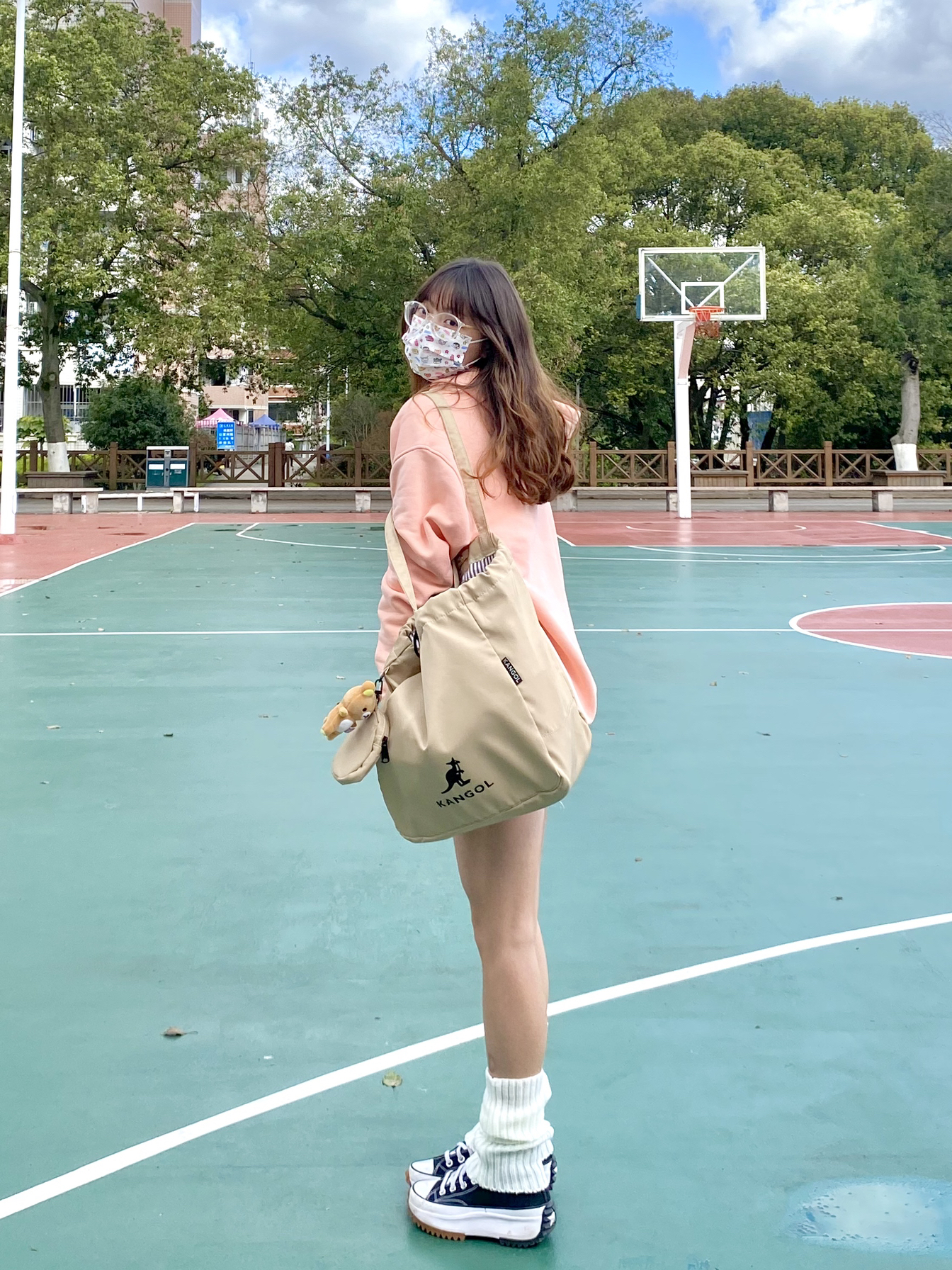 身高|体重:163cm/43kg 👔 上衣:adidas粉色卫衣(王嘉尔同款 👖 下装:牛仔短裤 👟 鞋子:匡威 🎒配饰:kangol托特包