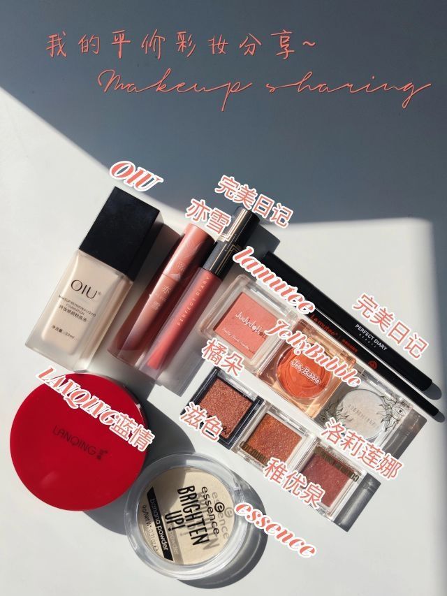 我的平价彩妆分享~吃土女孩的福利!!|||今天整理一波平价彩妆哦! 看看有没有你喜欢的! ❤️底妆篇 蓝情气垫💰138送替换装 OIU粉底液💰168 essence香蕉粉饼💰30 ❤️唇釉篇 亦雪唇釉💰69(貌似双十一有活动会减免) 完美日记💰60 ❤️眼影+腮红 橘朵腮红💰15(两个一起买的所以便宜哦) JellyBubble眼影💰19.9 洛莉莲娜眼影💰15 滋色眼影💰19.9 稚优泉眼影💰9...