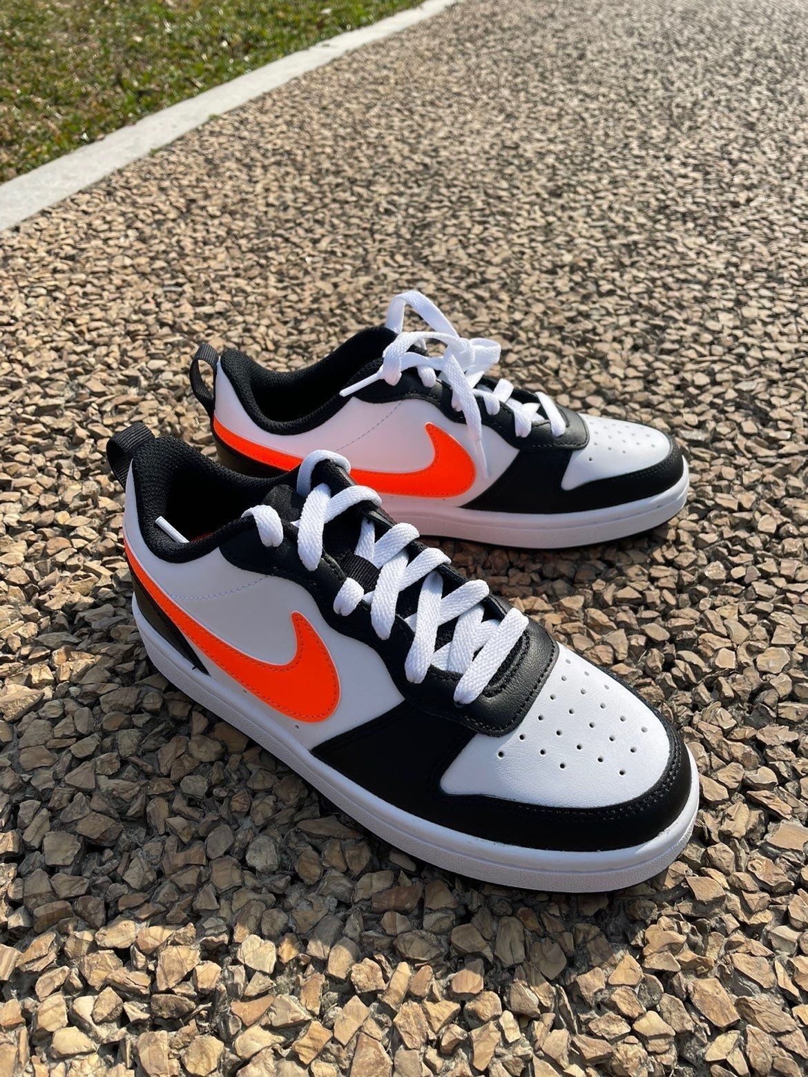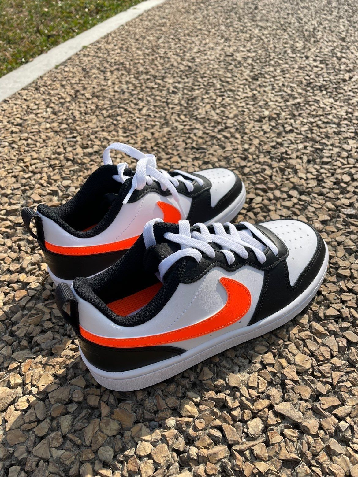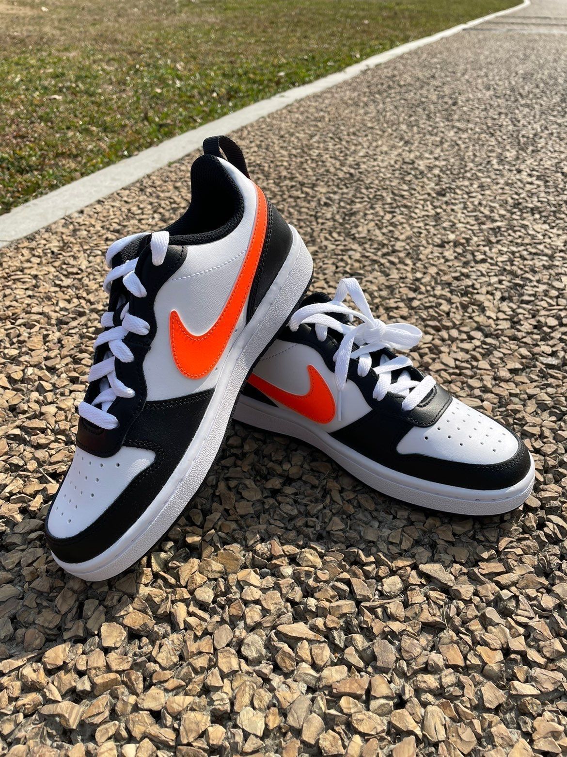 给春天点颜色看看 🖤球鞋名称 Nike Court Borough L oW 2(GS)休闲板鞋运动鞋 男女同款 黑白橙 💛整体评价 简单明了的配色,黑色➕白色➕橙色拼接而成,鞋侧身橙色Logo给鞋子增添了活力,柔软的皮革材质,鞋头透气孔设计,增加舒适的体验感,系带设计风格,贴合脚踝方便穿脱,也可以自己DIY鞋带,换一双与LOGO同色系的鞋带搭配,适合一年四季都可以穿,也很好搭配衣服 @得鞋狗...