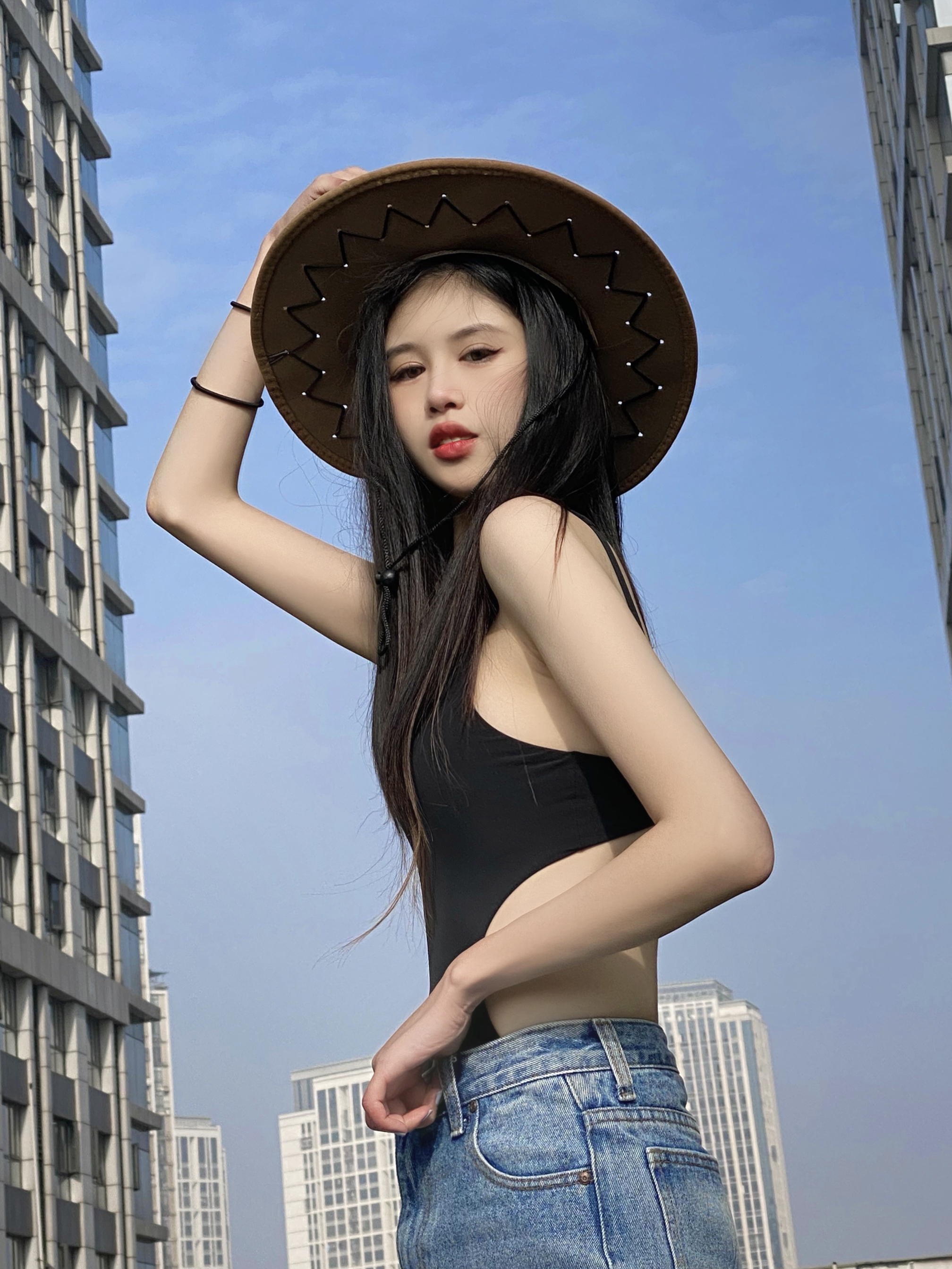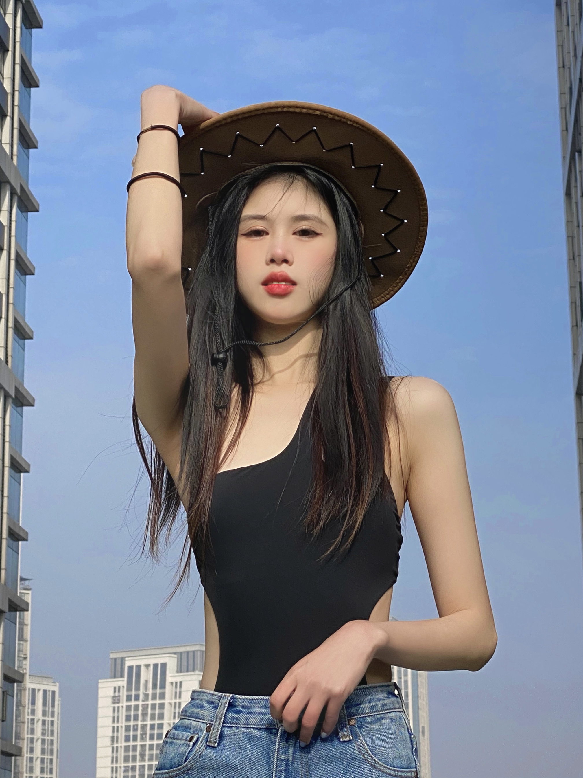 趁着阳光 来天台拍照啦! 假装在度假哈哈哈 泳衣外穿也太绝了吧! 辣妹本人🌶️开始期待夏天了!