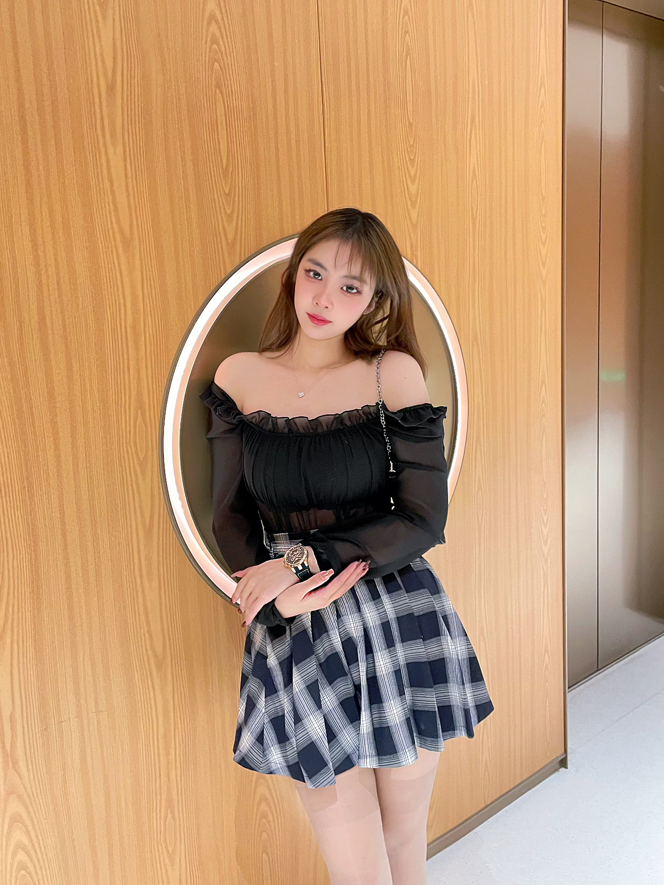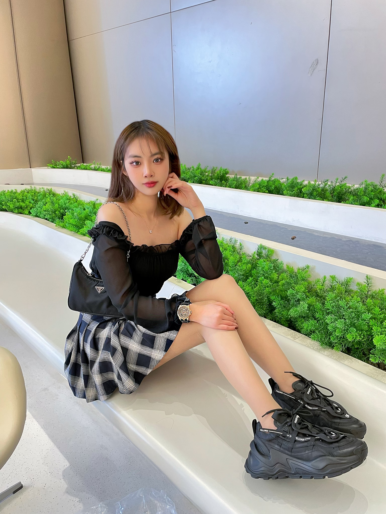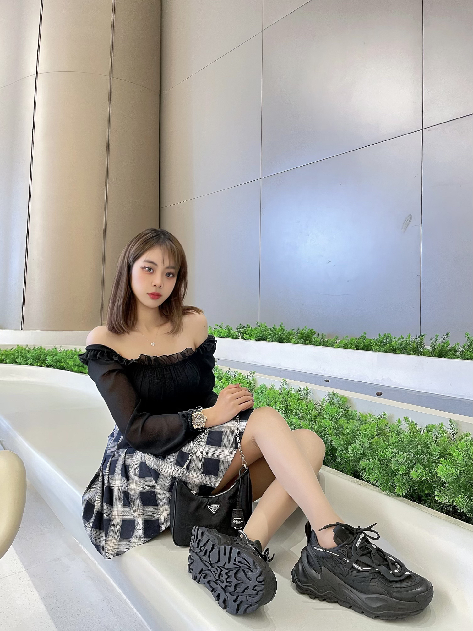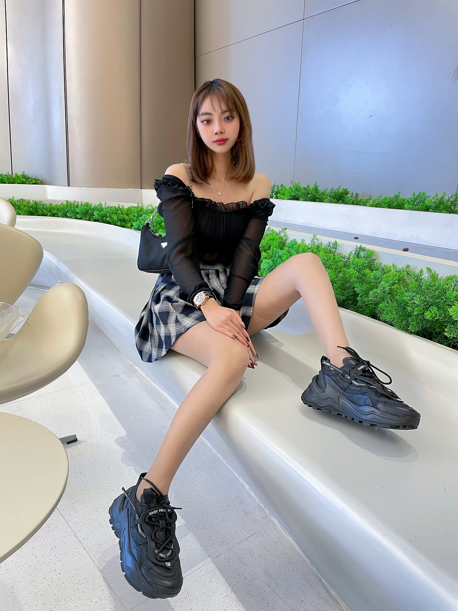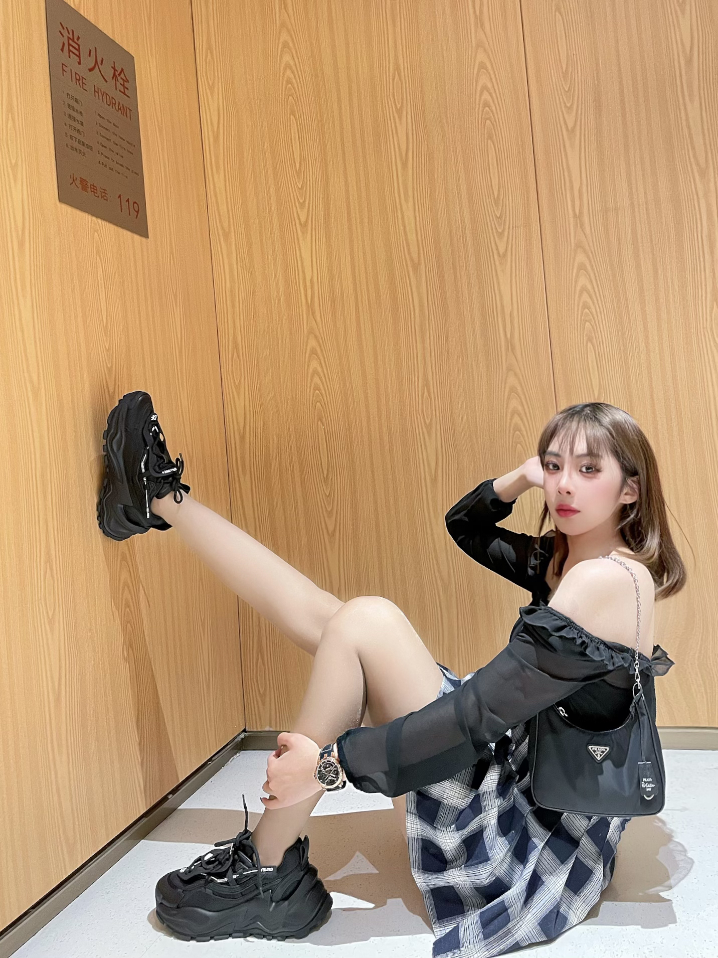 ⌚️:BEXEI 彼赛&流浪地球 木星 👜:prada 三合一 🧦:涞觅 👟:黛西法罗魔鬼一号潮流厚底老爹鞋 ⭐️今日穿搭整体以黑色为主,搭配了黑色的包包。丝袜今天很特殊,选择了介于黑丝和白丝之间的灰色。尝试一下不同颜色的袜子,搭配了厚底的老爹鞋DF家的老爹鞋,视觉上增高闲腿长,而且非常的百搭好看~ ⭐️配饰带了和流浪地球联名的手表,黑色的表带金色的表盘,然后我这一款名字叫木星,带上气质非常的炫酷...