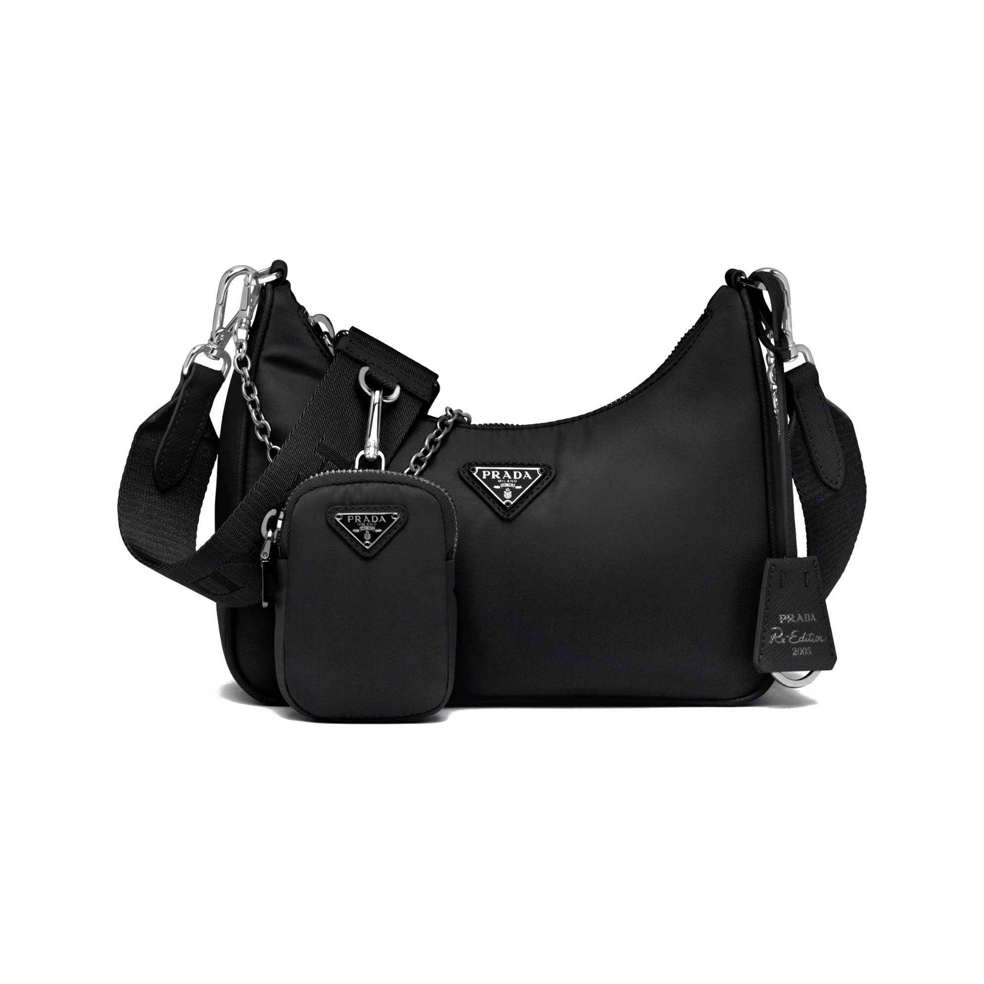 本篇笔记关联了Prada Re-Nylon 三角形徽标拉链开合可调节可拆卸珐琅织物三合一再生尼龙和Saffiano皮革斜挎单肩包 黑色等商品,为用户提供真实的使用体验和购买参考。