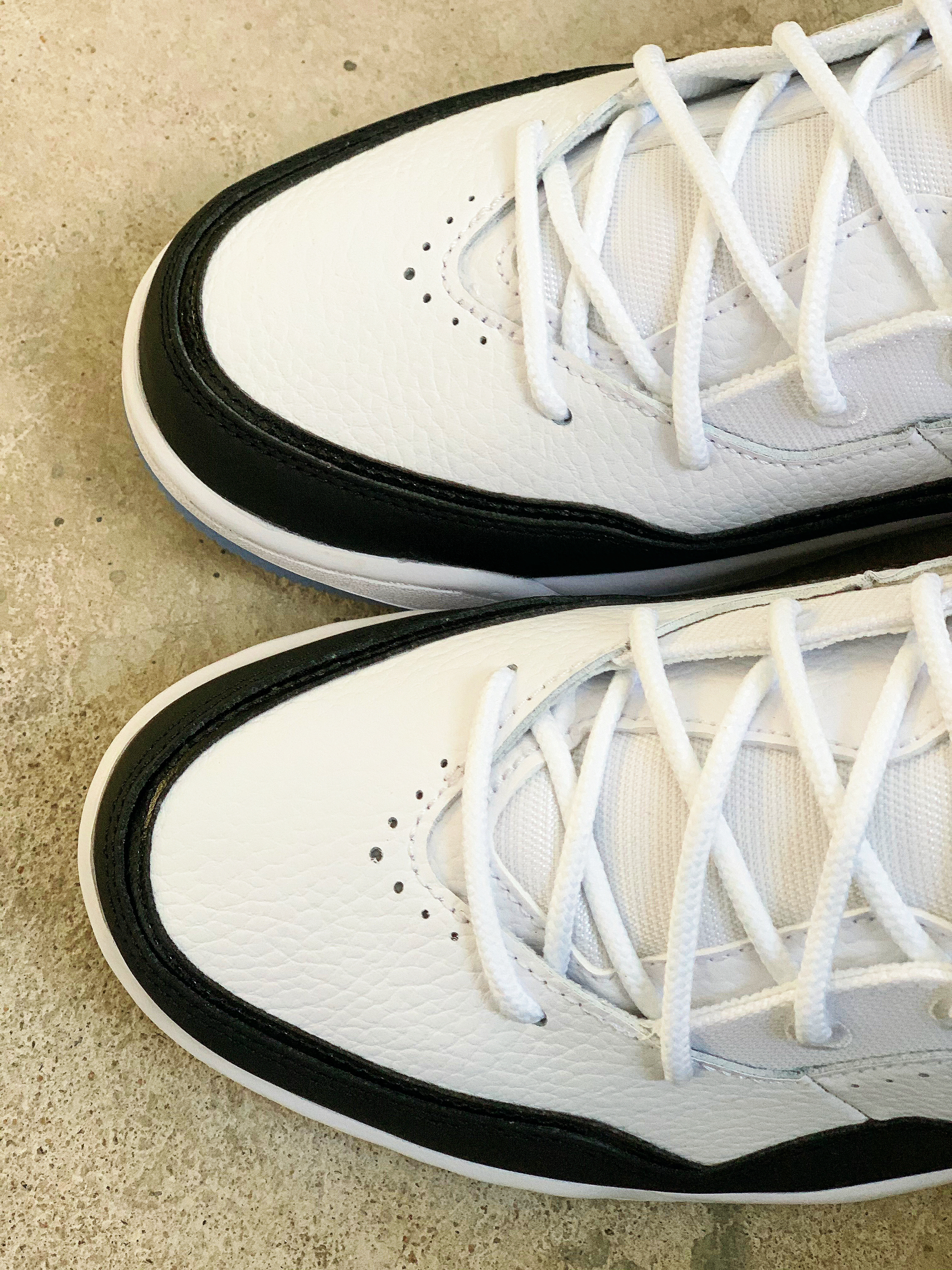 👟名称:Air Jordan Courtside 23 黑白 Concord ✅鞋子整体以白色为主色调,加入了黑色作为点缀,以及鞋舌位置的紫色乔丹标志也是相当的美观时尚,增添一丝妩媚。 ✅鞋子的鞋面材质采用了皮革材质,特别的柔软细腻。上脚超级百搭,黑白配色另外加入了一小处的紫色点缀特别的经典时尚。 ✅建议正码选择